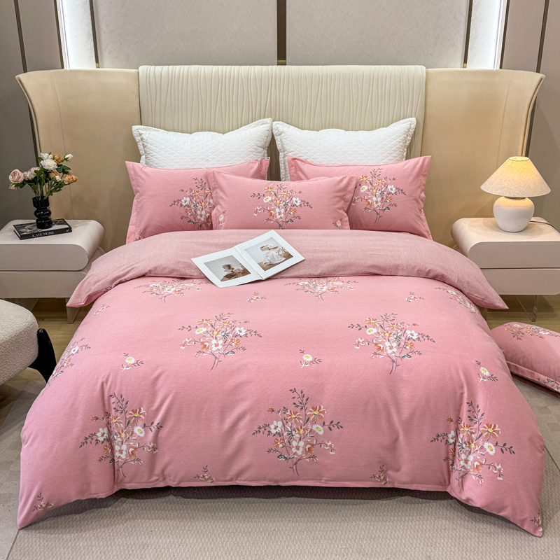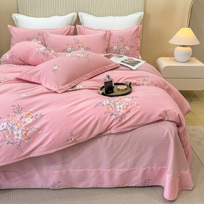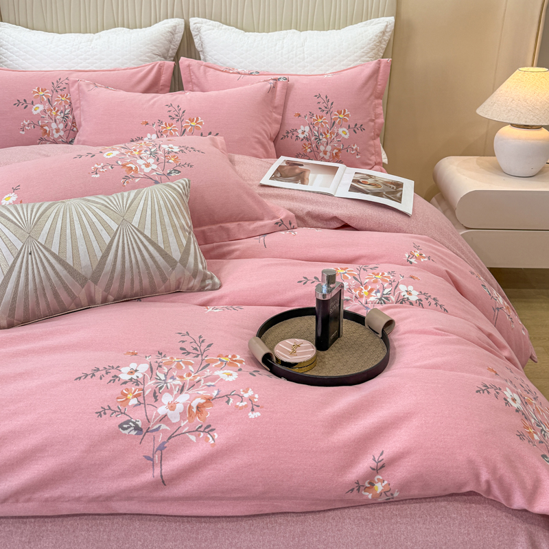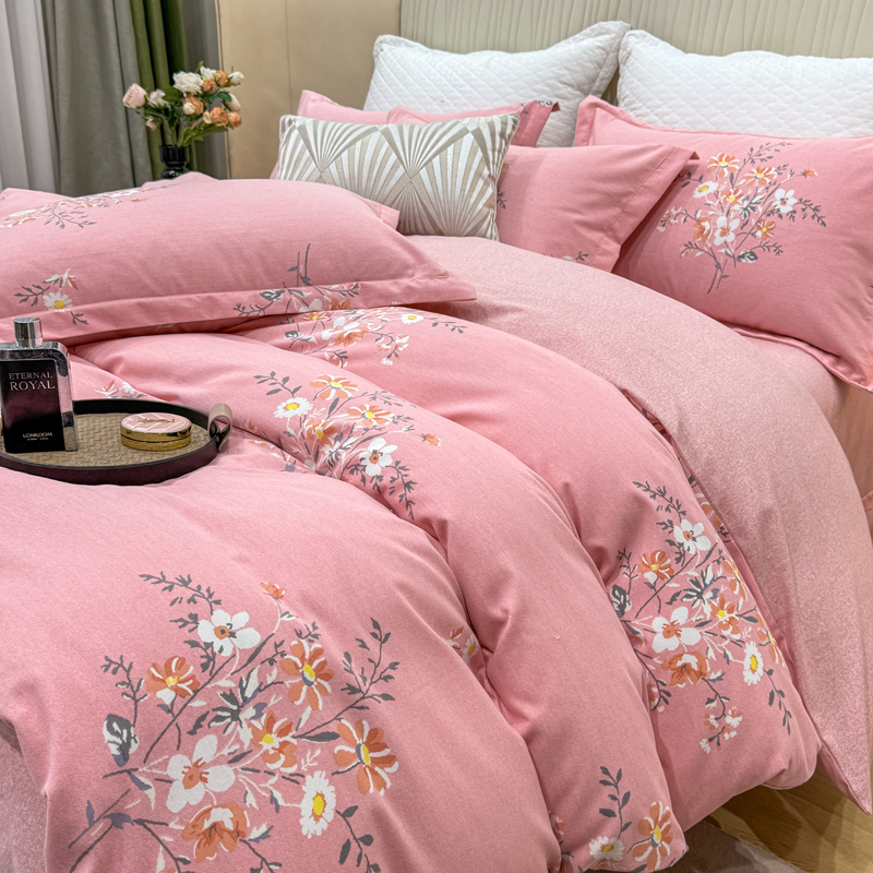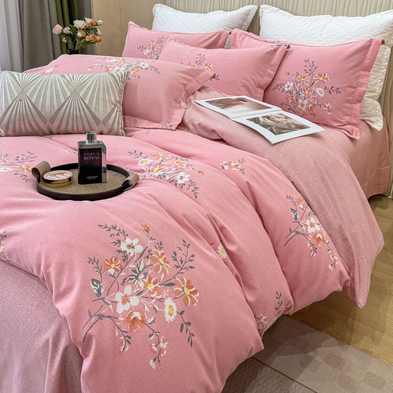 凌鼎 2025新款喷气加厚磨毛四件套系列1 望夏花艺粉