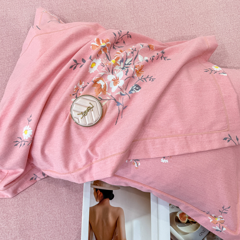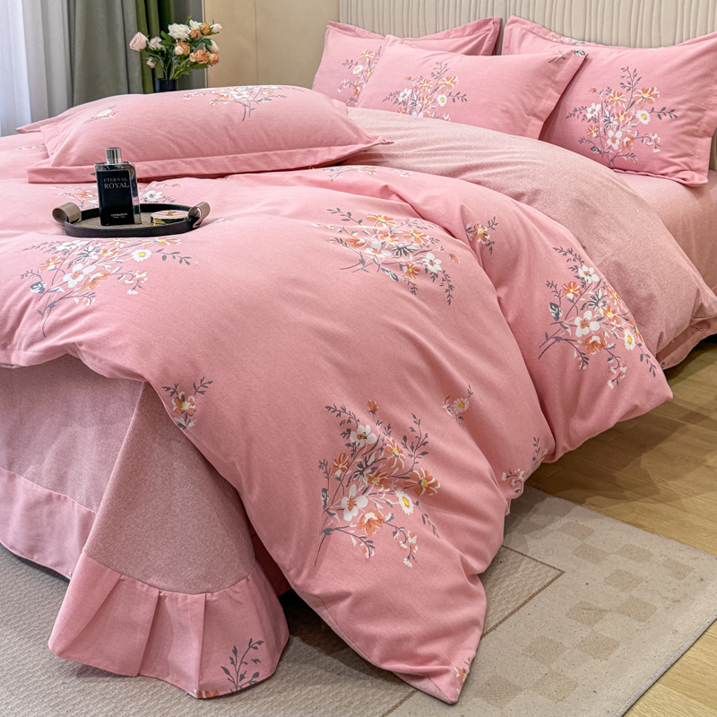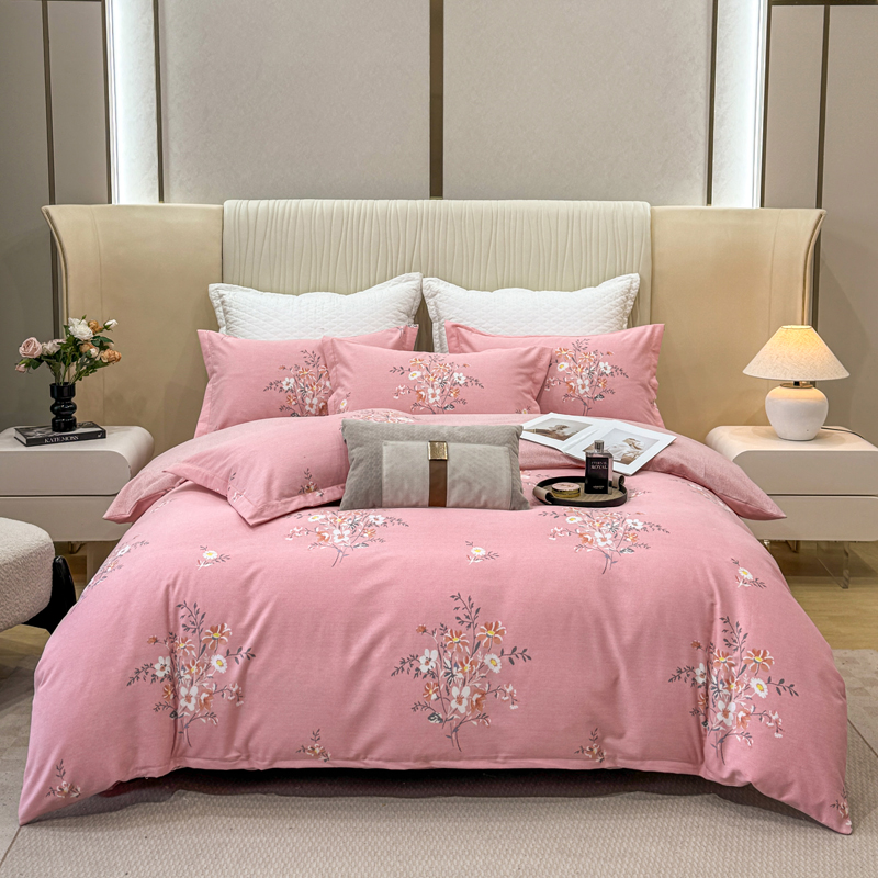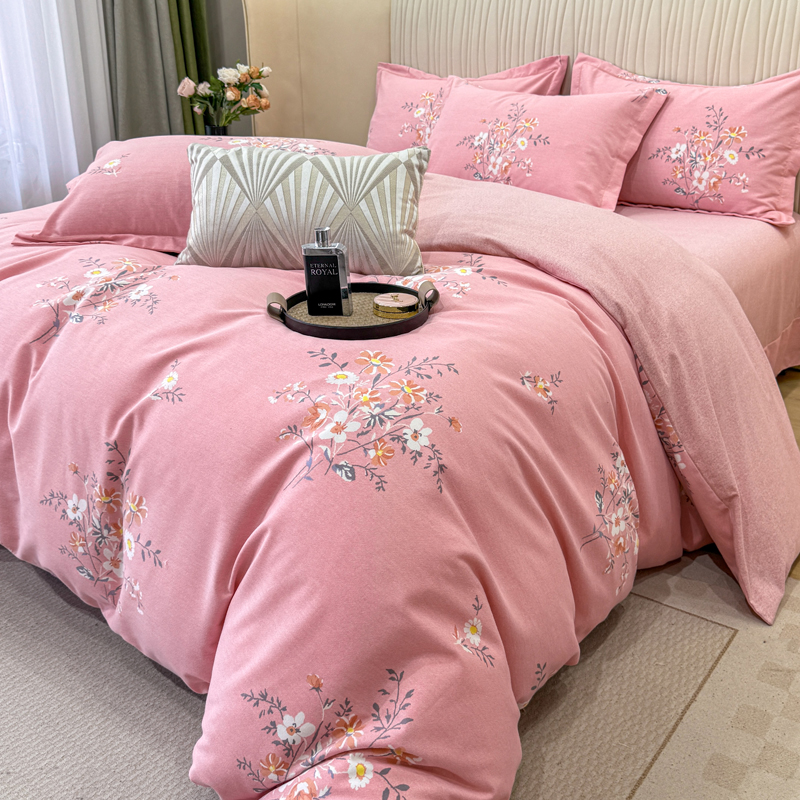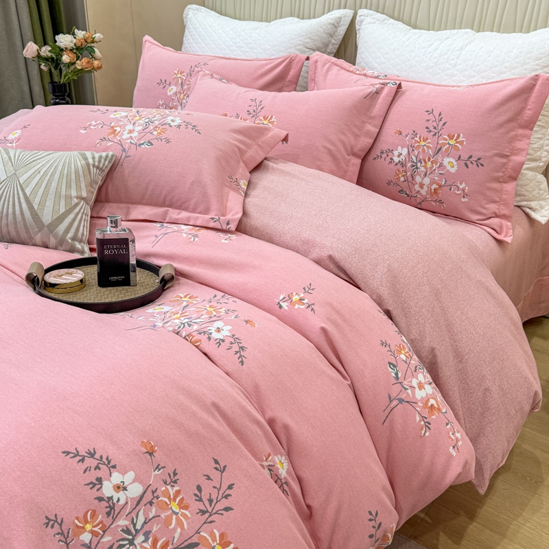 凌鼎 2025新款喷气加厚磨毛四件套系列1 望夏花艺粉