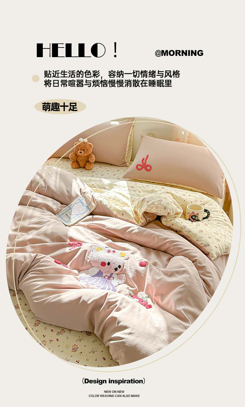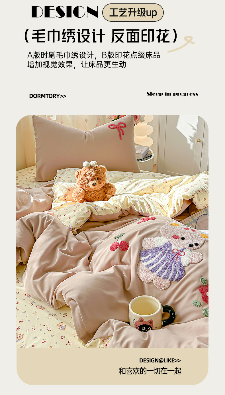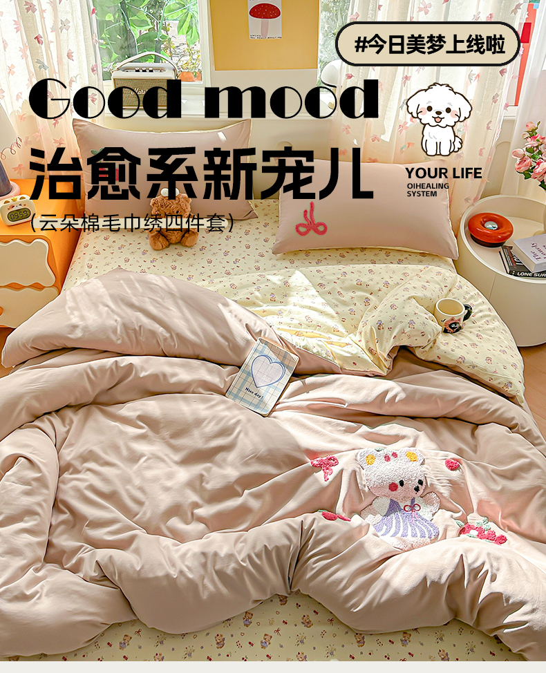 当前位置: 91家纺网 > 商品网购 > 床品套件 > 四件套 > 毛巾绣四件套 > 佳鸿家纺 2026新款彷棉云朵棉毛巾绣四件套学生宿舍三件套萌宠系列(提供买家秀) 小熊公主