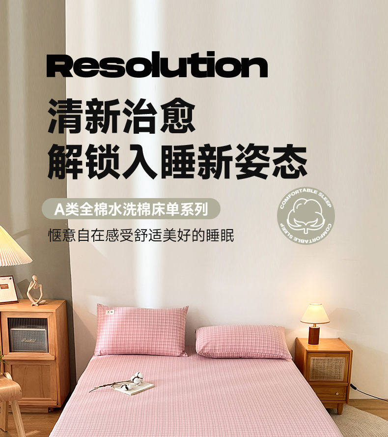 • 91家纺网 家纺一手货源 找家纺 21度C 2026新款A类全棉水洗棉母婴级床单 米娜粉