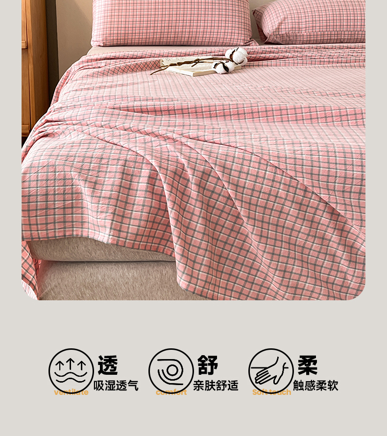 21度C 2026新款A类全棉水洗棉母婴级床单 米娜粉