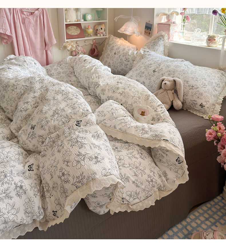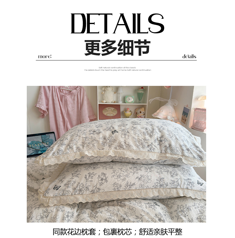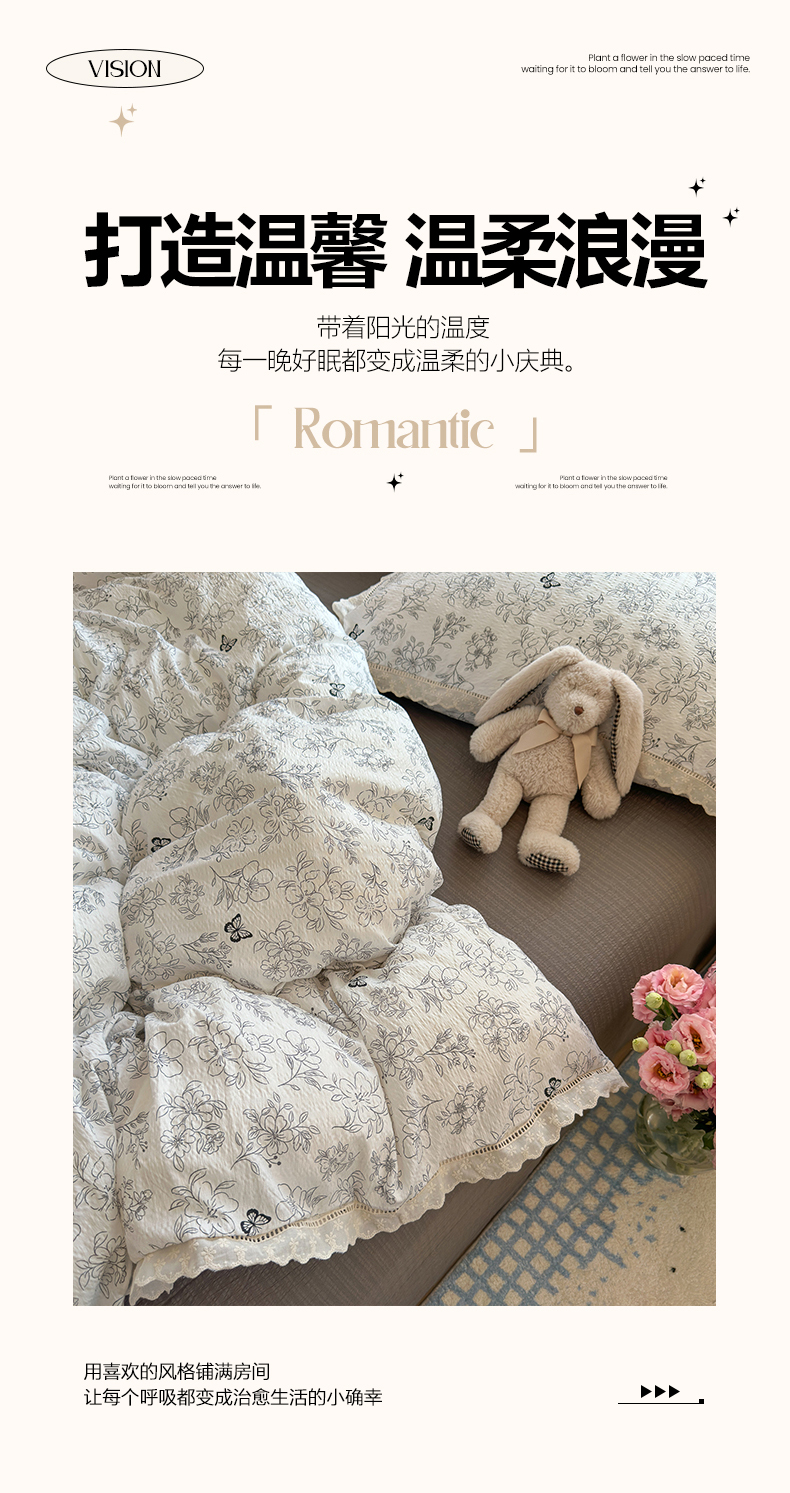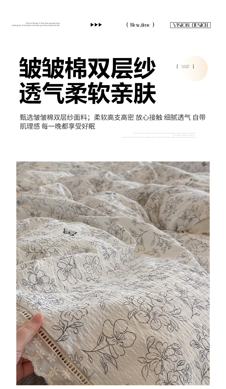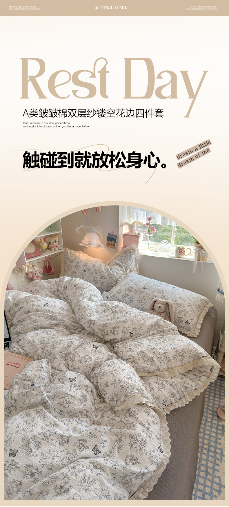 当前位置: 91家纺网 > 商品网购 > 床品套件 > 四件套 > 双层纱四件套 > 优卡迪家纺馆 2026新款全棉花边皱皱棉双层纱四件套下载文件包含买家秀 蝶舞
