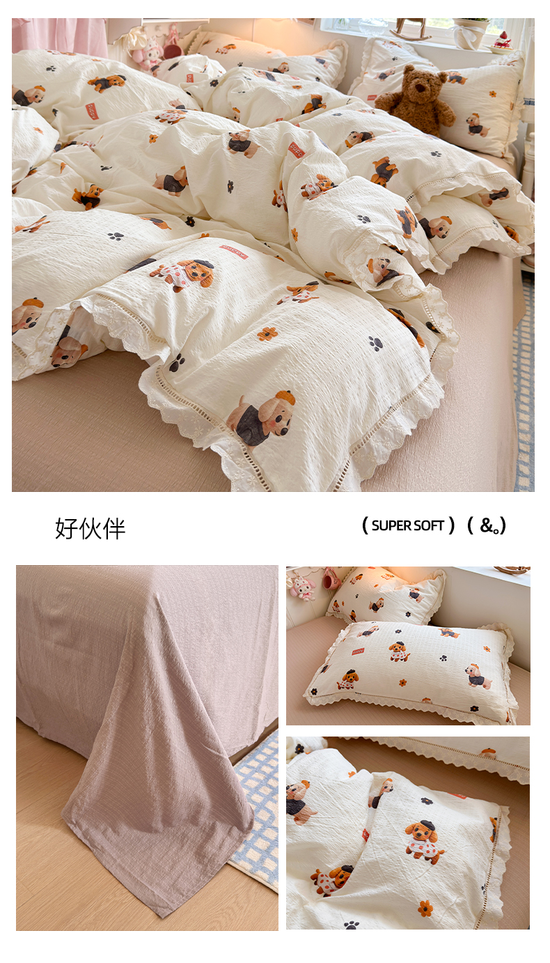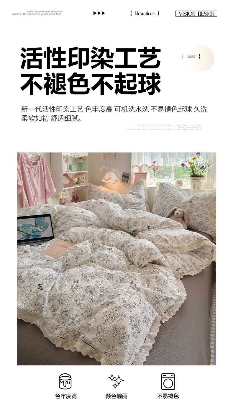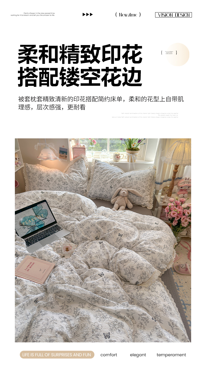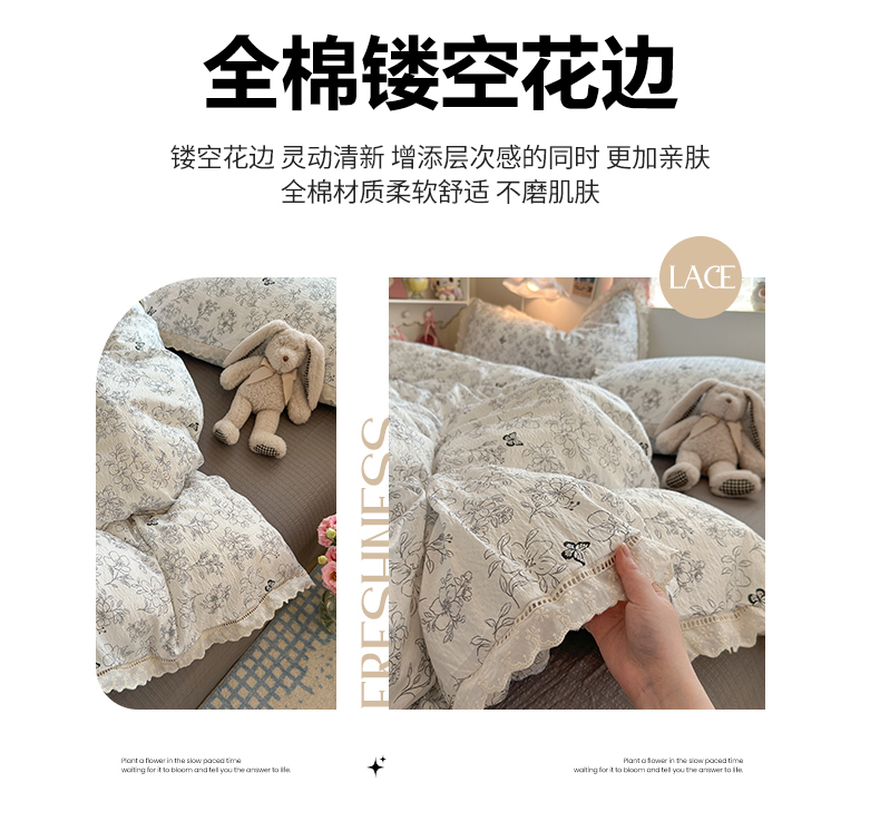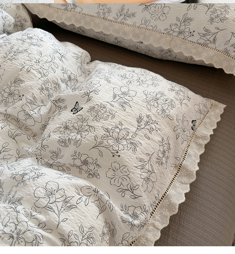 当前位置: 91家纺网 > 商品网购 > 床品套件 > 四件套 > 双层纱四件套 > 优卡迪家纺馆 2026新款全棉花边皱皱棉双层纱四件套下载文件包含买家秀 蝶舞