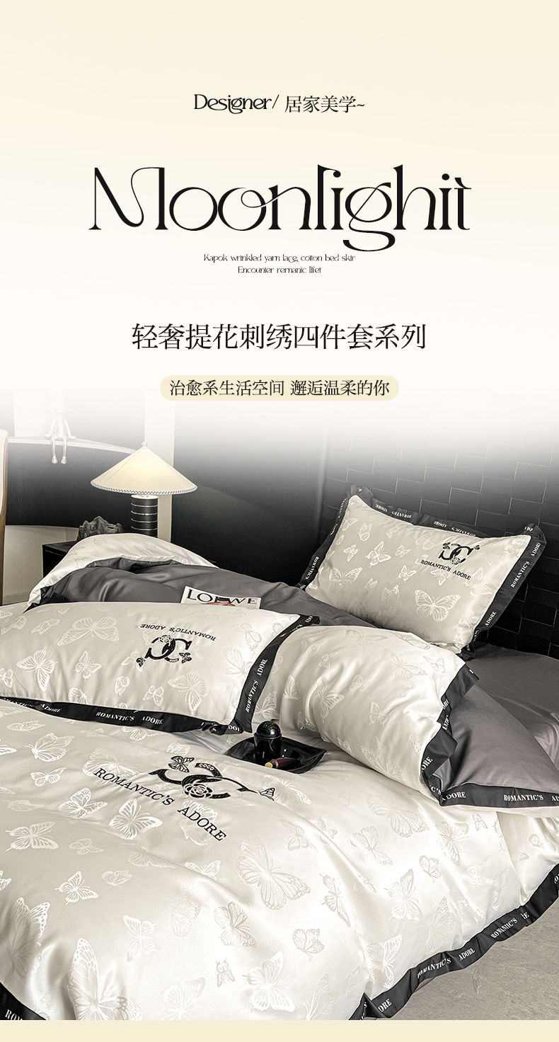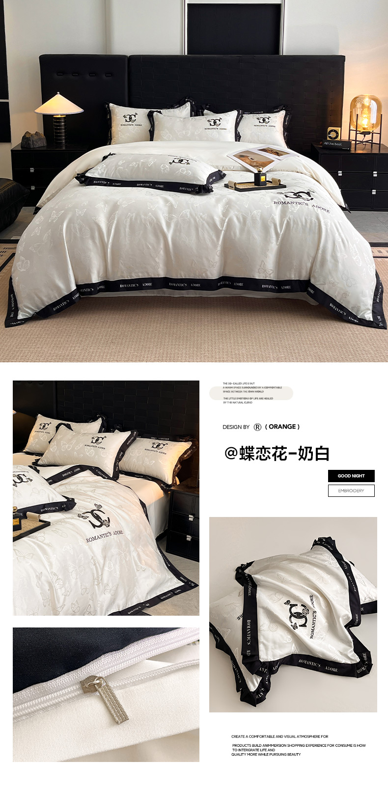 当前位置: 91家纺网 > 商品网购 > 床品套件 > 四件套 > 其它四件套 > 宇航家纺 2026新款专版厚织亮丝提花水洗真丝四件套梦蝶系列 梦蝶奶白