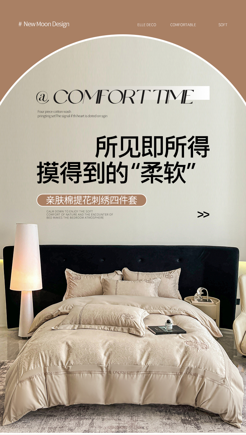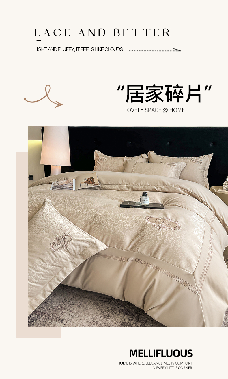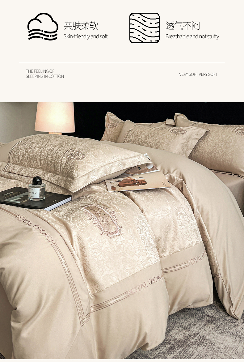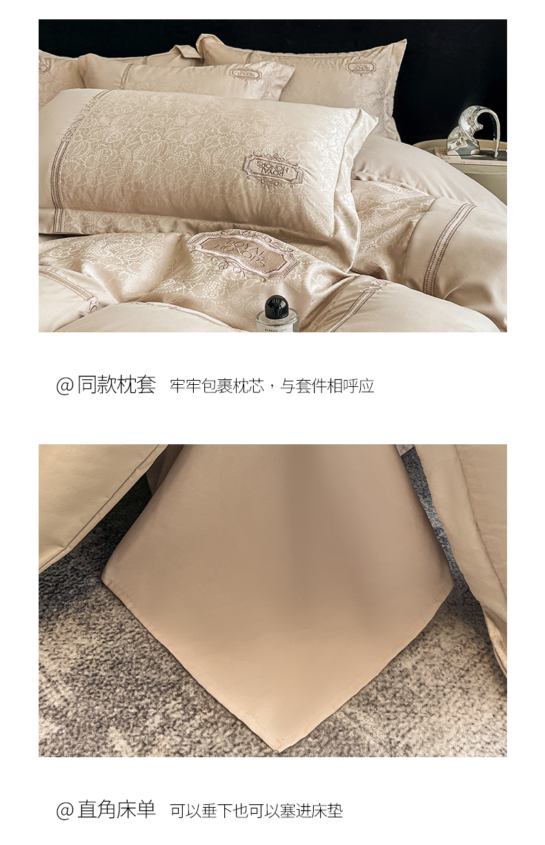 当前位置: 91家纺网 > 商品网购 > 床品套件 > 四件套 > 其它四件套 > 金牛座家纺 2026新款贡缎提花亲肤棉大拼角刺绣四件套-欧诺 欧诺-香槟