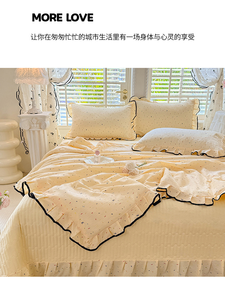 韩约家纺 2026春夏新款皱皱纱床盖款夏被夏凉被空调被四件套 星辰