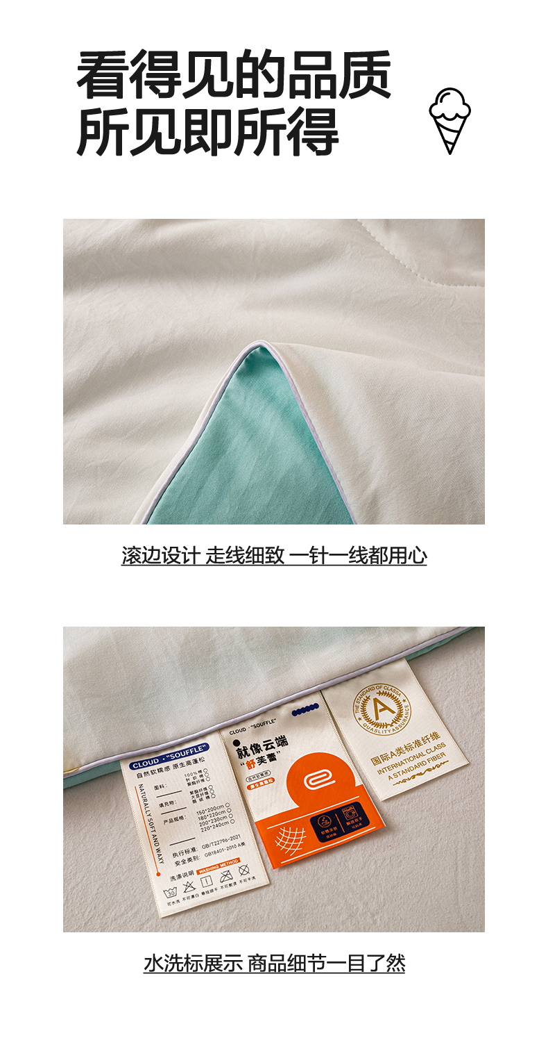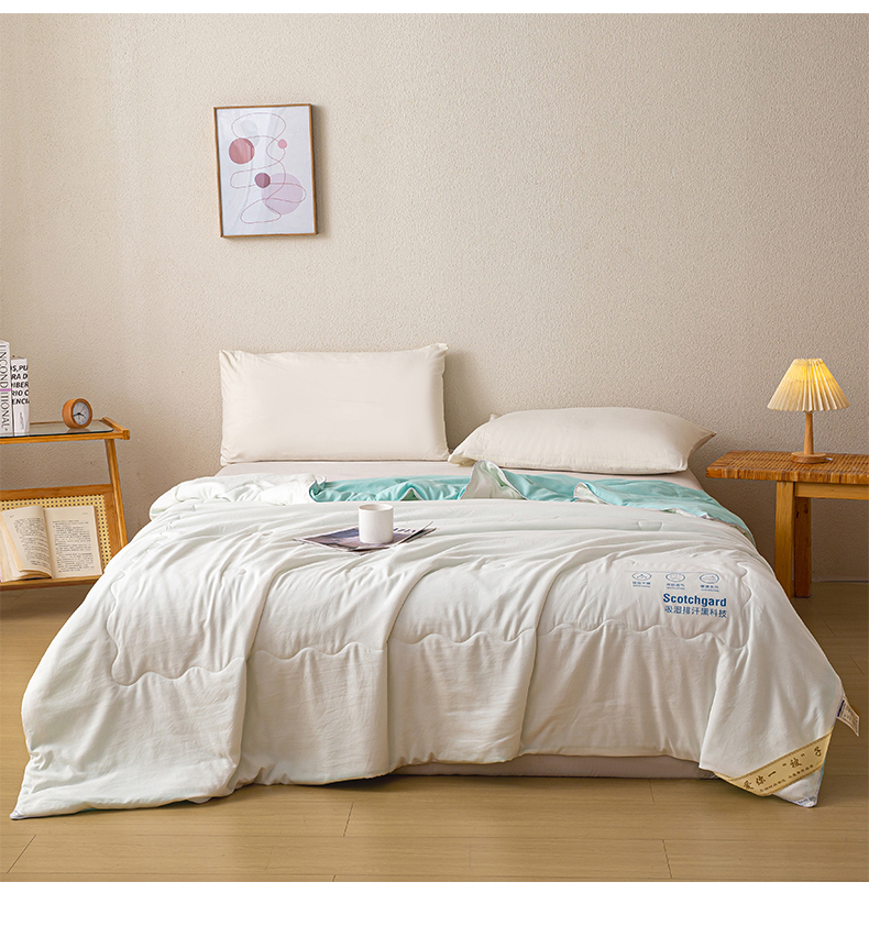 (总)红日子纺织品 2026新款A类水洗棉冰淇淋夏被空调被,白配灰,果绿白,卡其白,卡其灰,蓝白,绿拼灰,浅粉白,紫拼白
