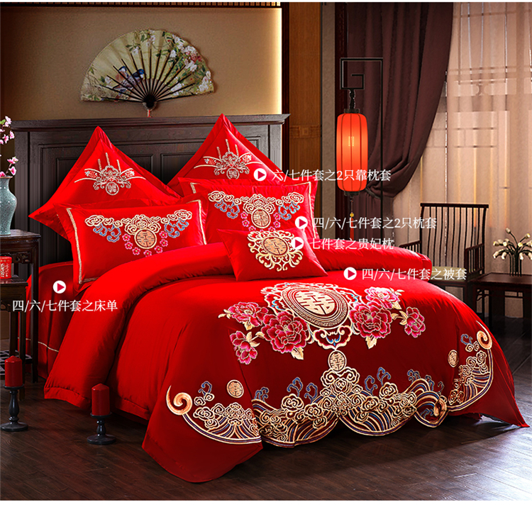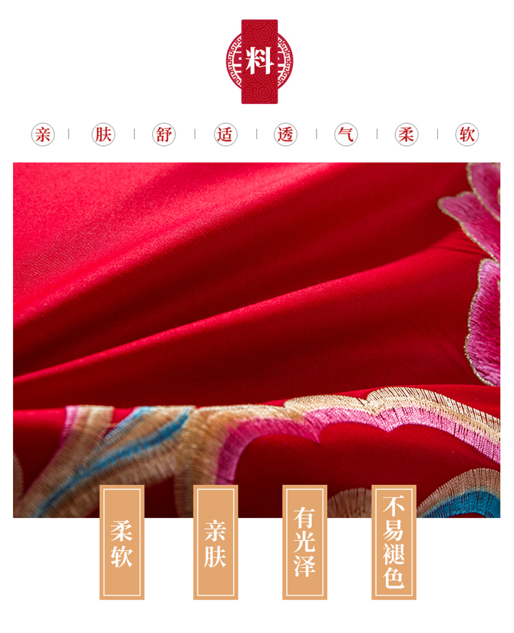 千禧 2024新款贡缎磨毛婚庆绣花多件套 盛世华庭(彩色绣),盛世华庭(彩色绣)