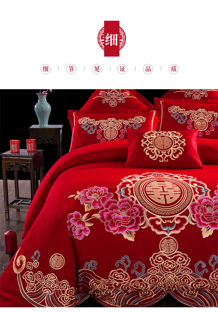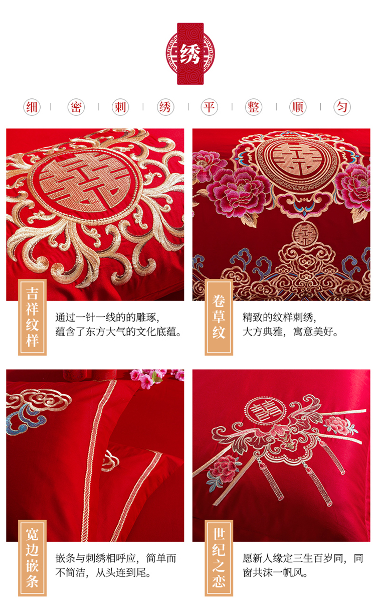(总)千禧家纺 2024新款双面长绒棉磨毛加厚保暖绣花婚庆套件,大喜大吉,鸿运贺禧,欢乐喜事,欢喜,美满爱情,喜上眉梢,喜约,相伴一生,挚爱