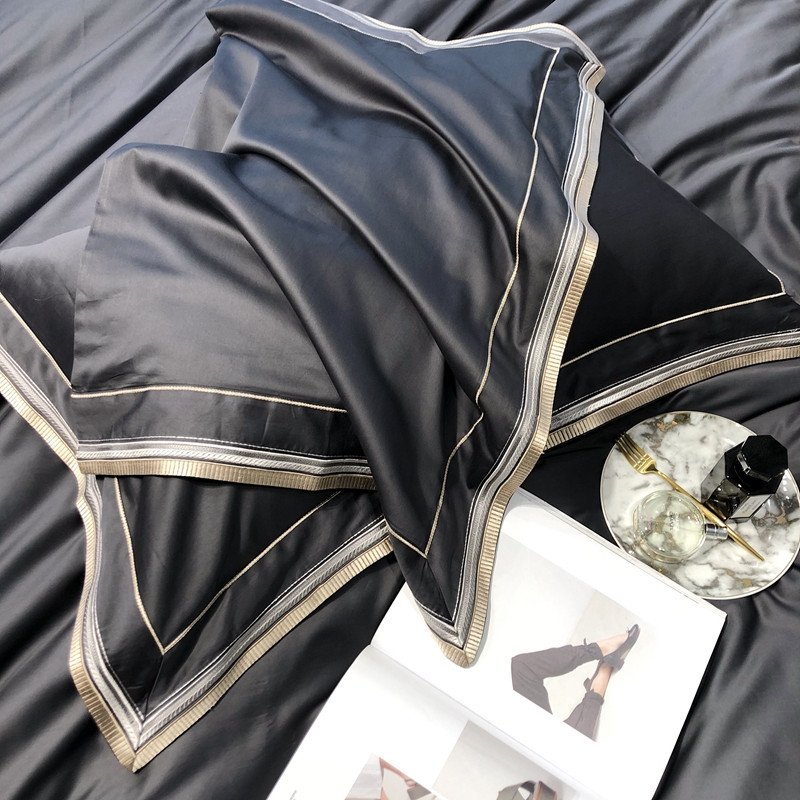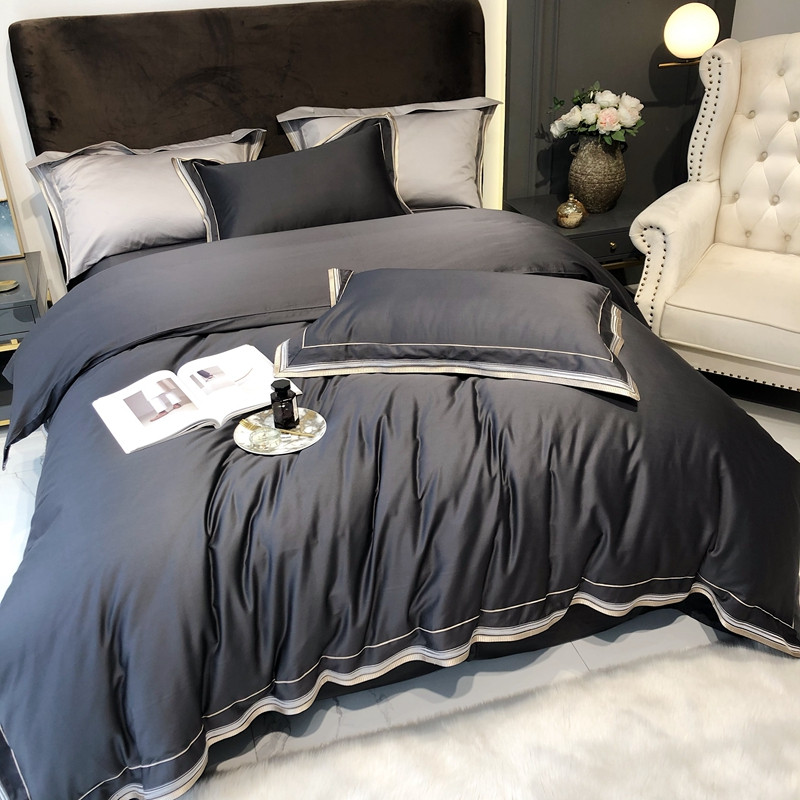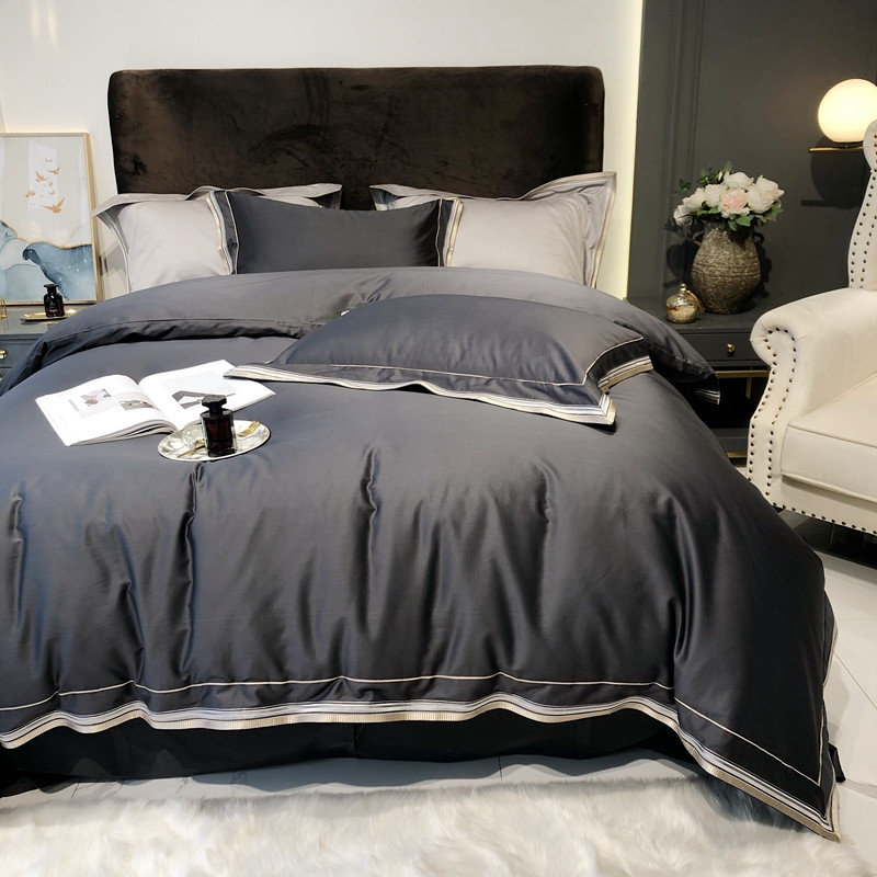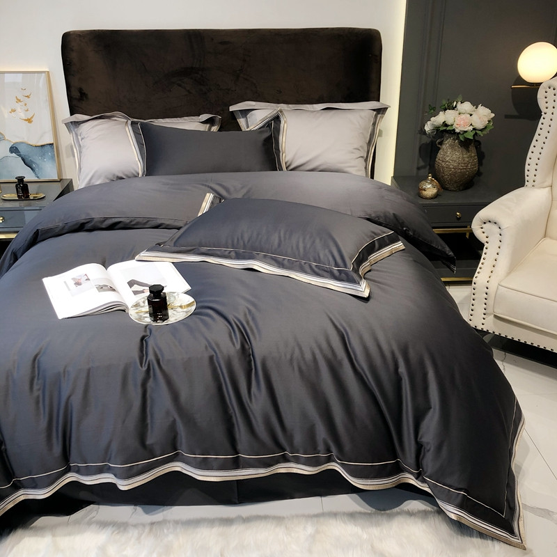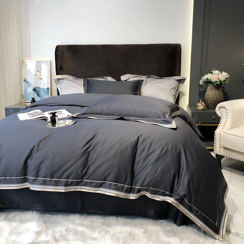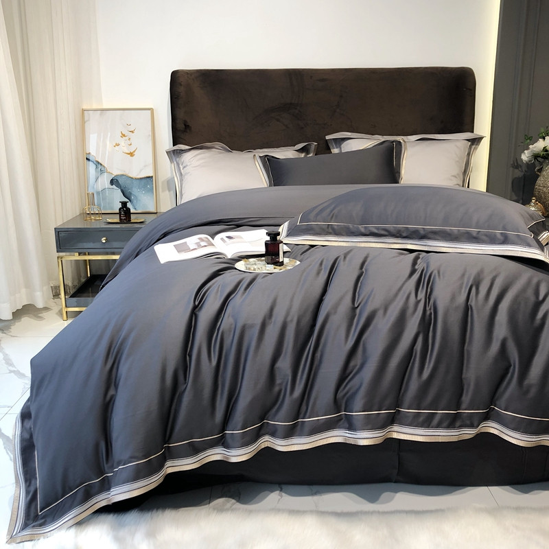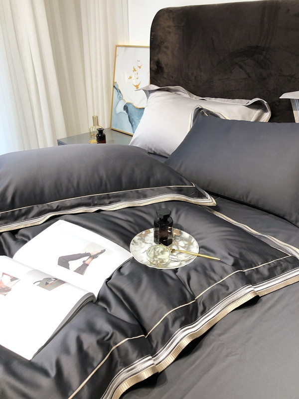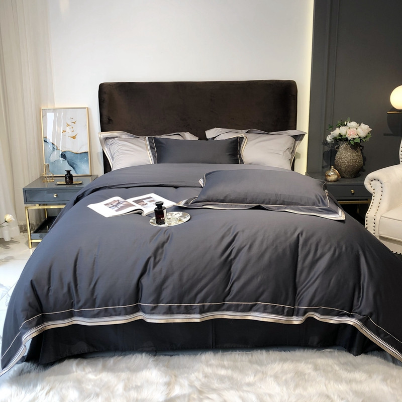 太古汇 2020新款60支长绒棉高定绣花赫本系列四件套 深灰