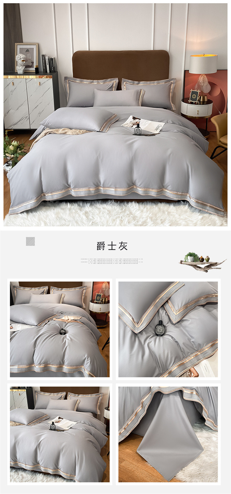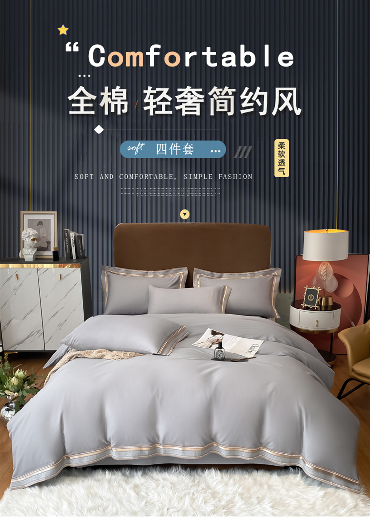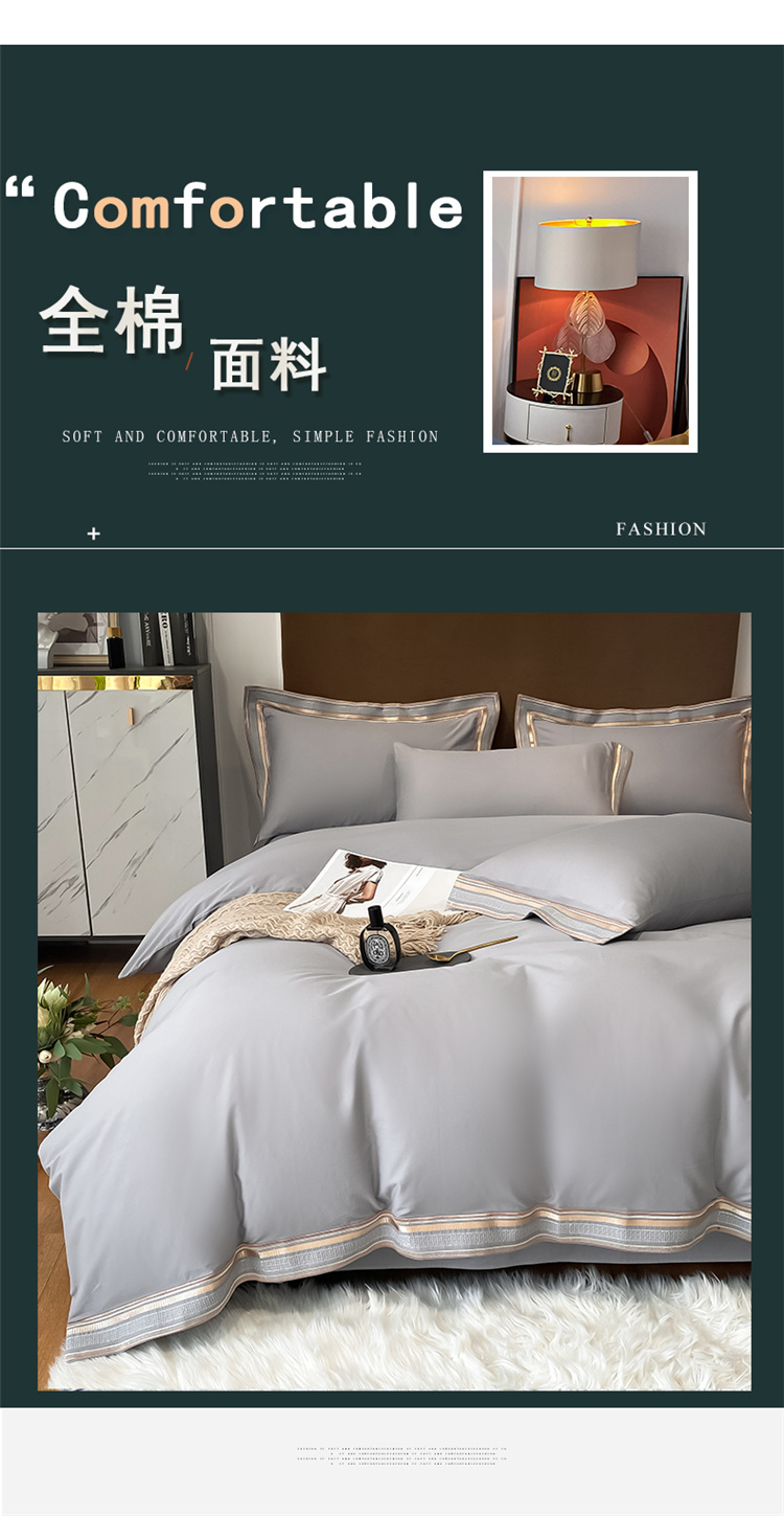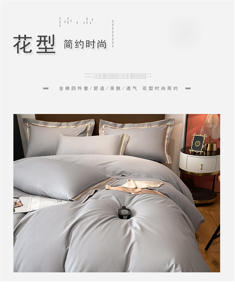 商品名称:安妮家居 2021新款全棉轻奢刺绣简约风四件套-米兰 爵士灰