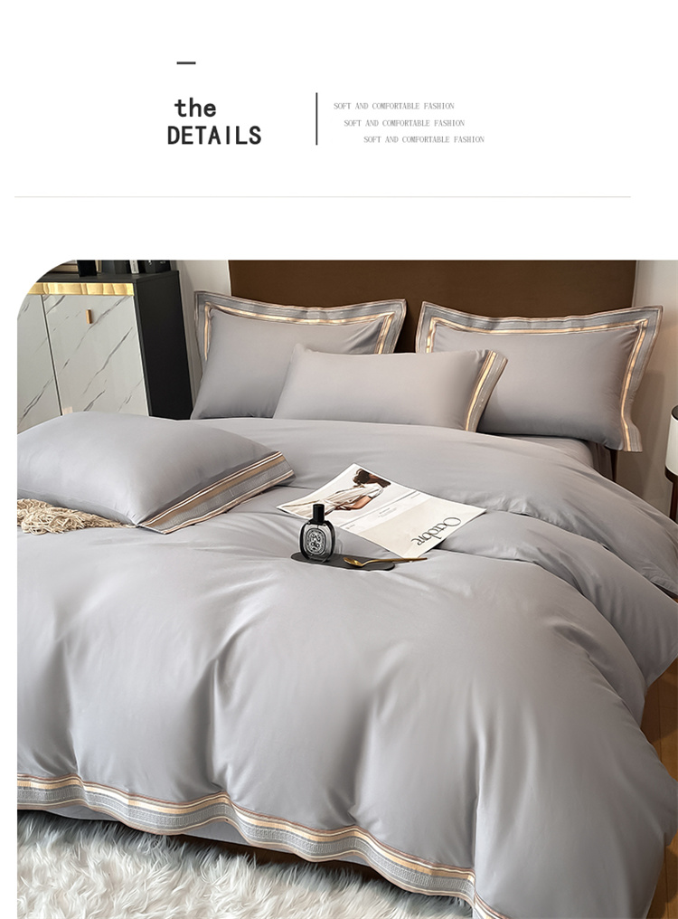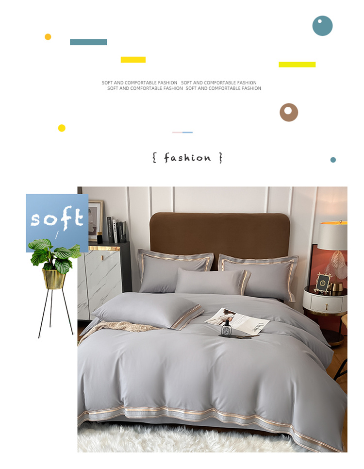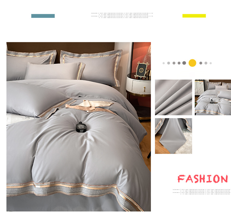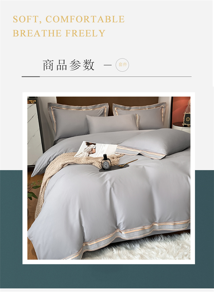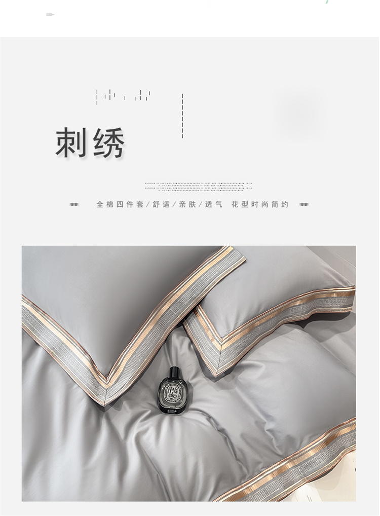 商品名称:安妮家居 2021新款全棉轻奢刺绣简约风四件套-米兰 爵士灰