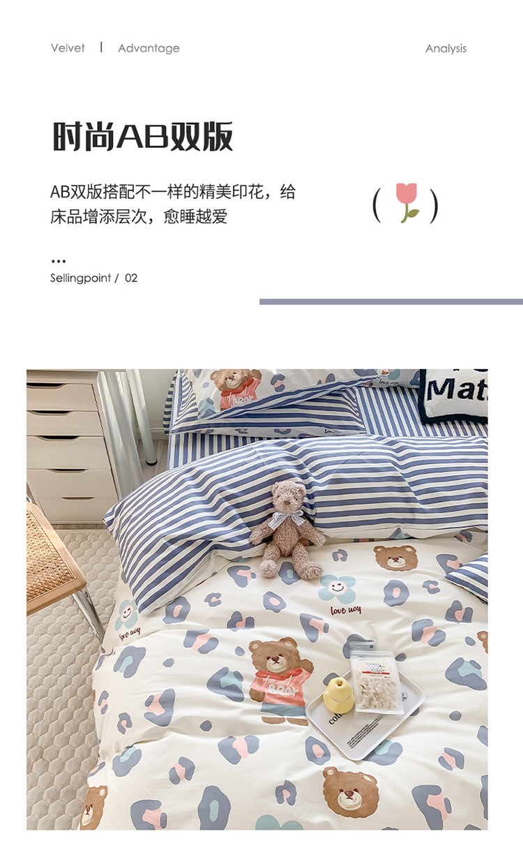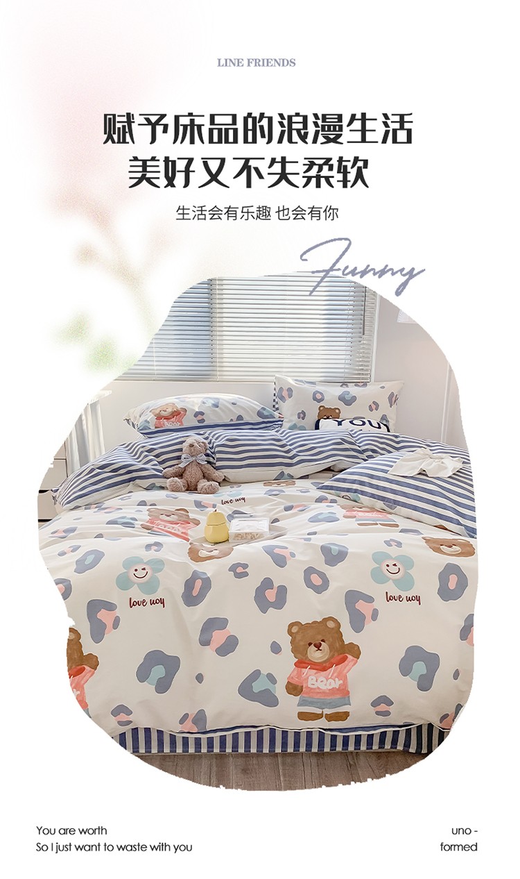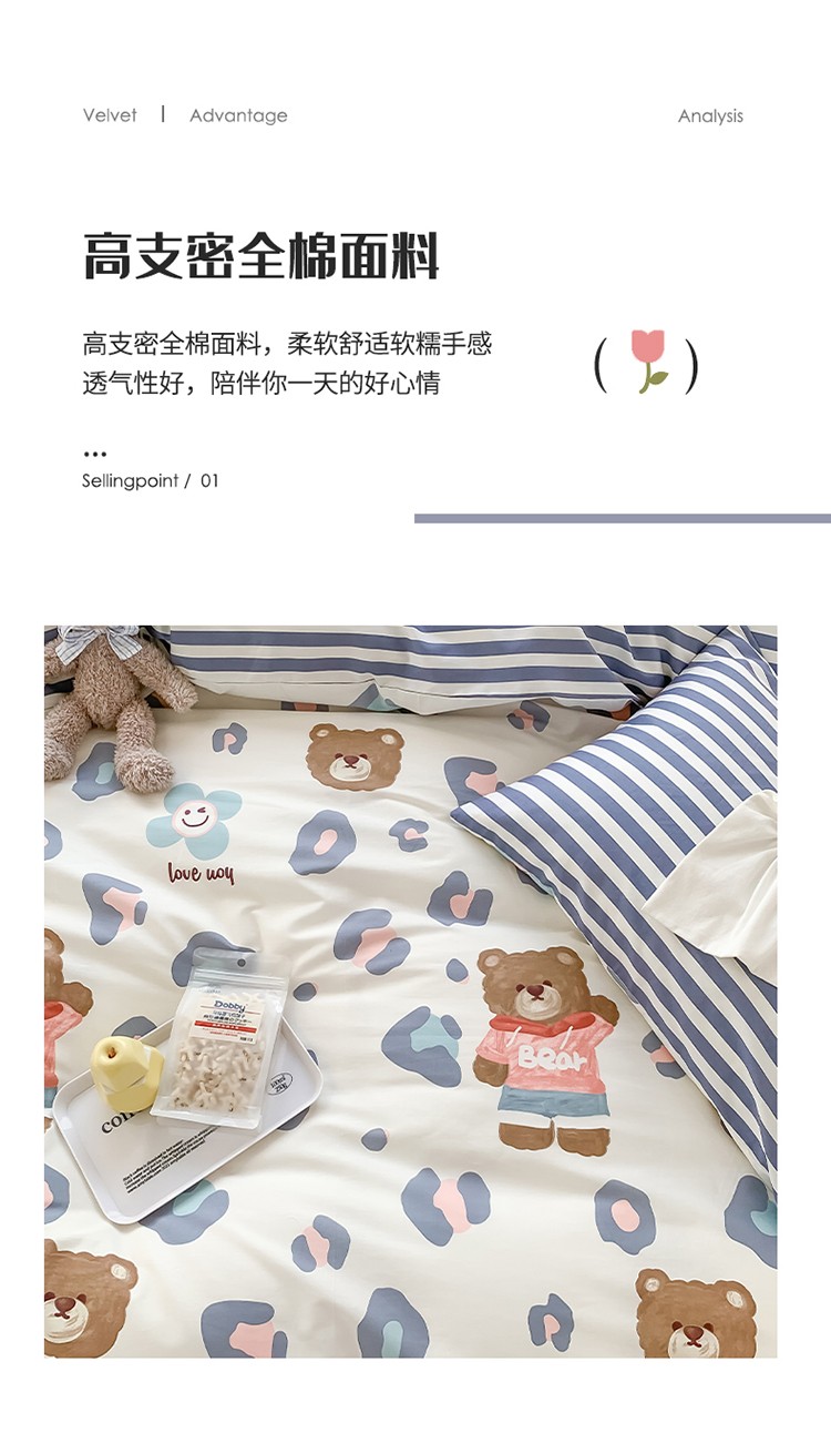 澳萝拉 2023新款全棉印花四件套会员减5元 豹纹棕熊
