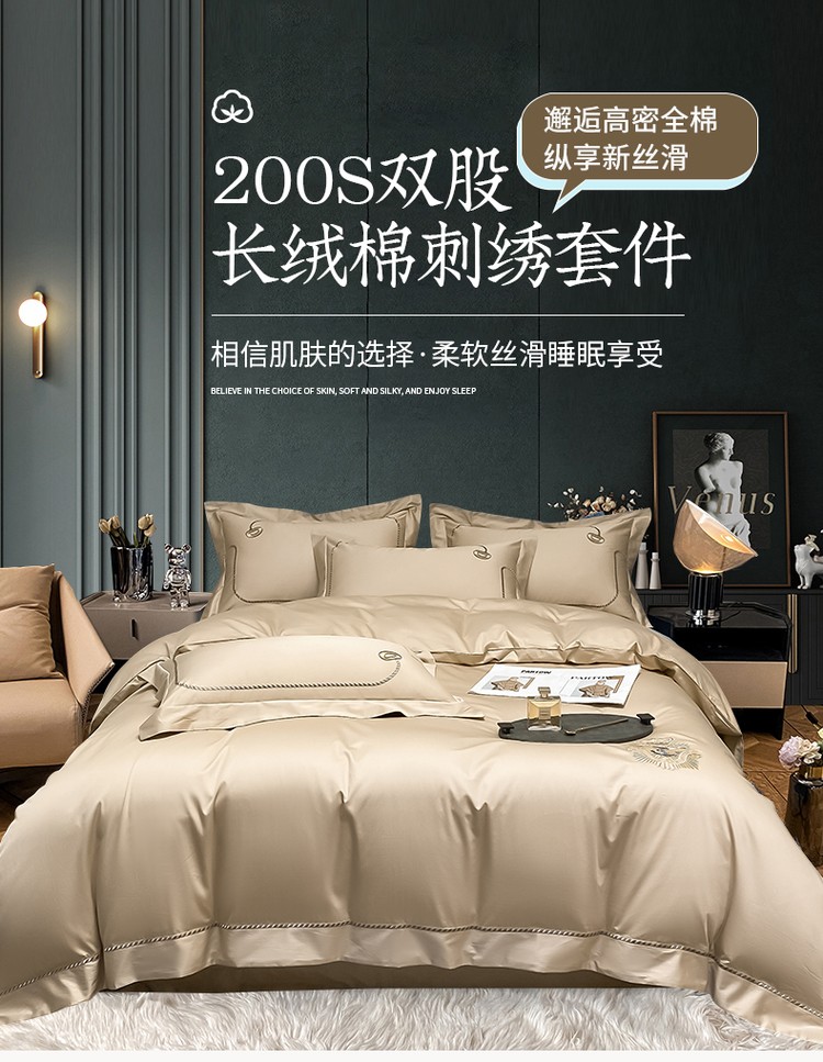 商品名称:200支新款长绒棉宽边刺绣四件套