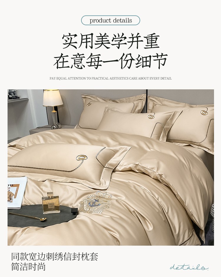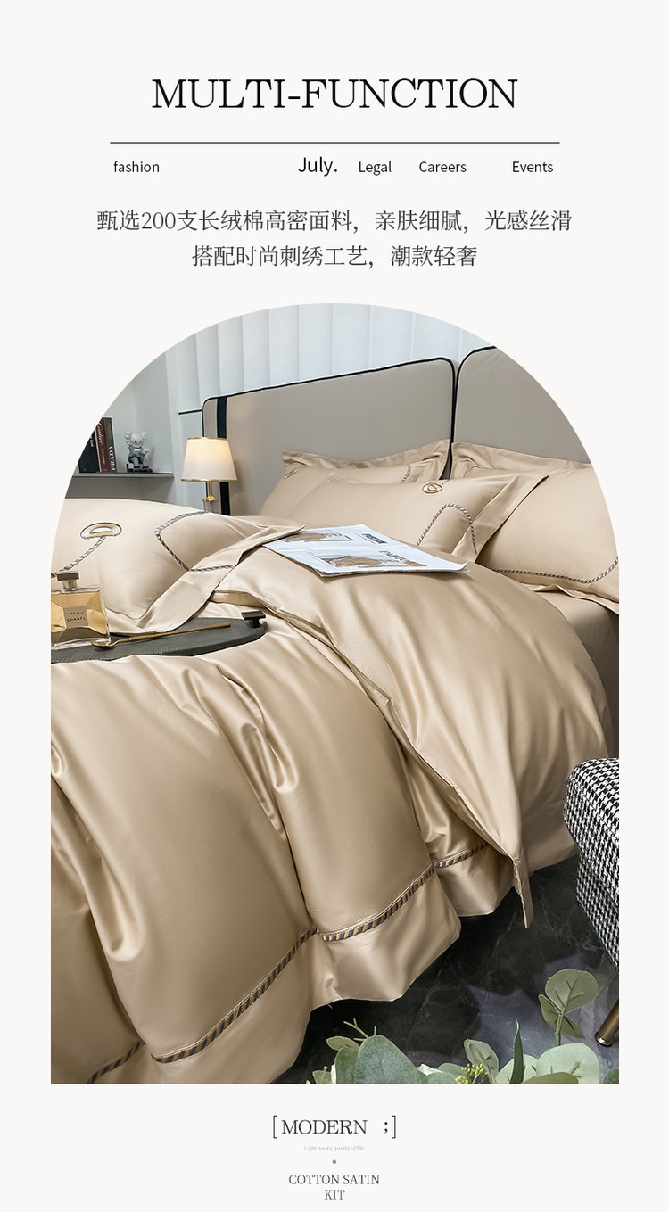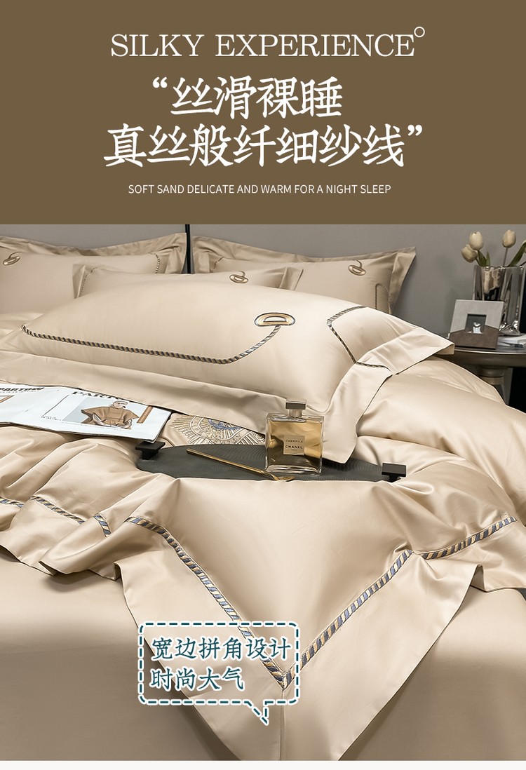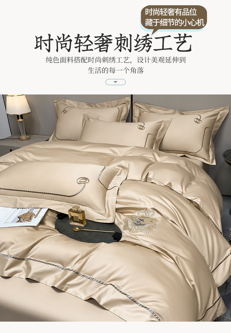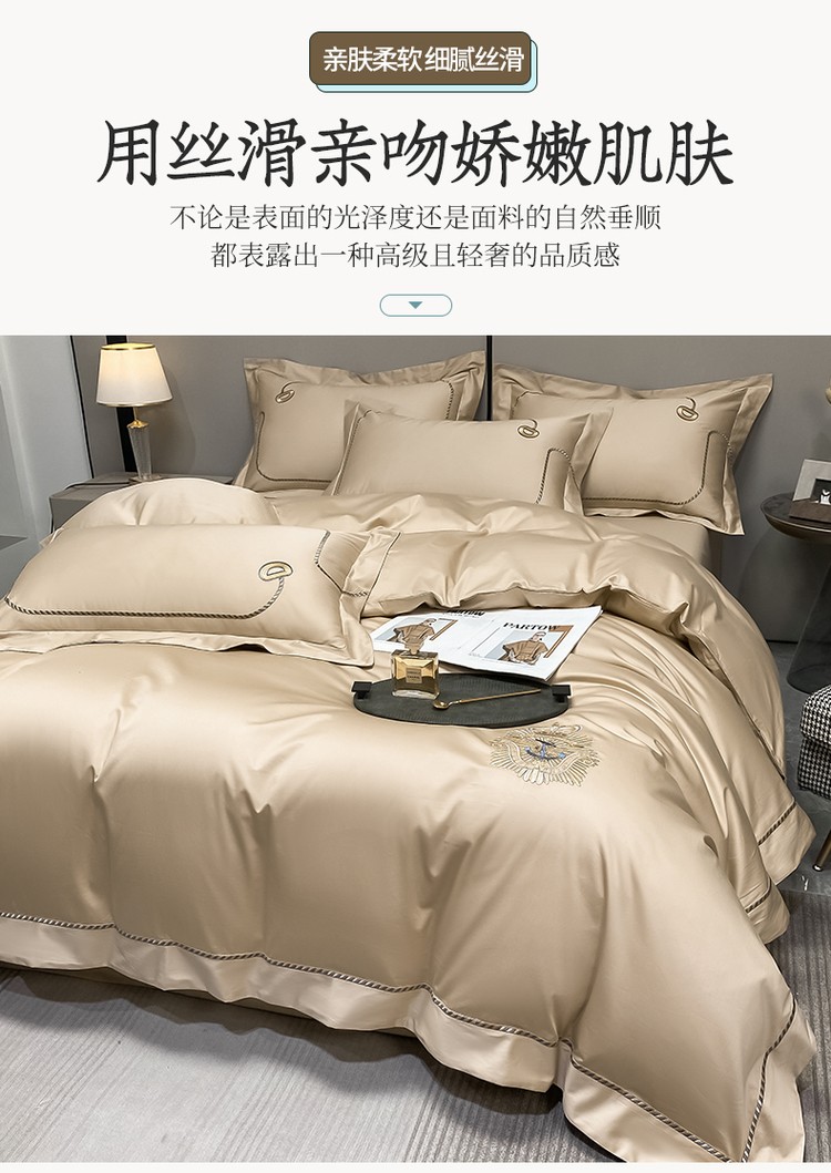柔觉家纺 天丝刺绣贡缎提花全棉四件套,科西利亚-金色