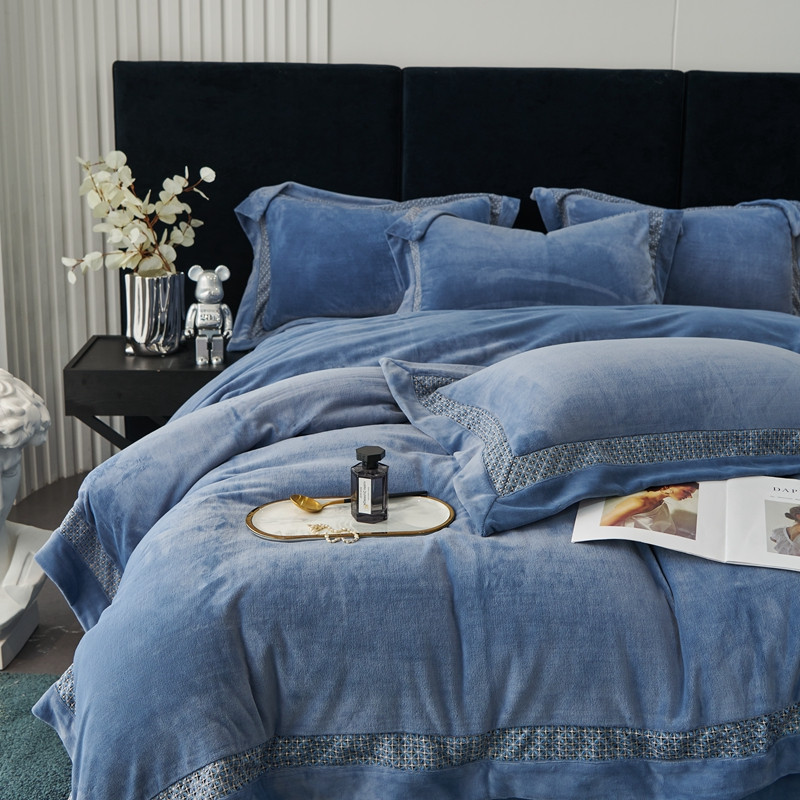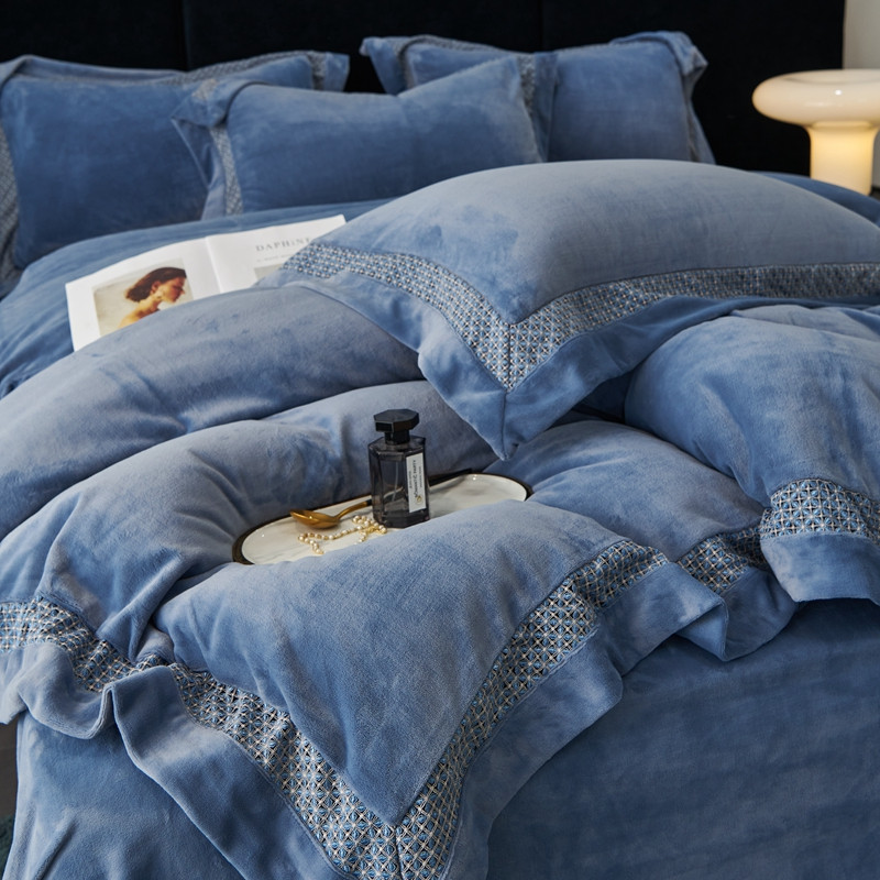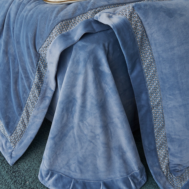 榻尚家居 2023新款公主绒刺绣贴边四件套 宝石蓝