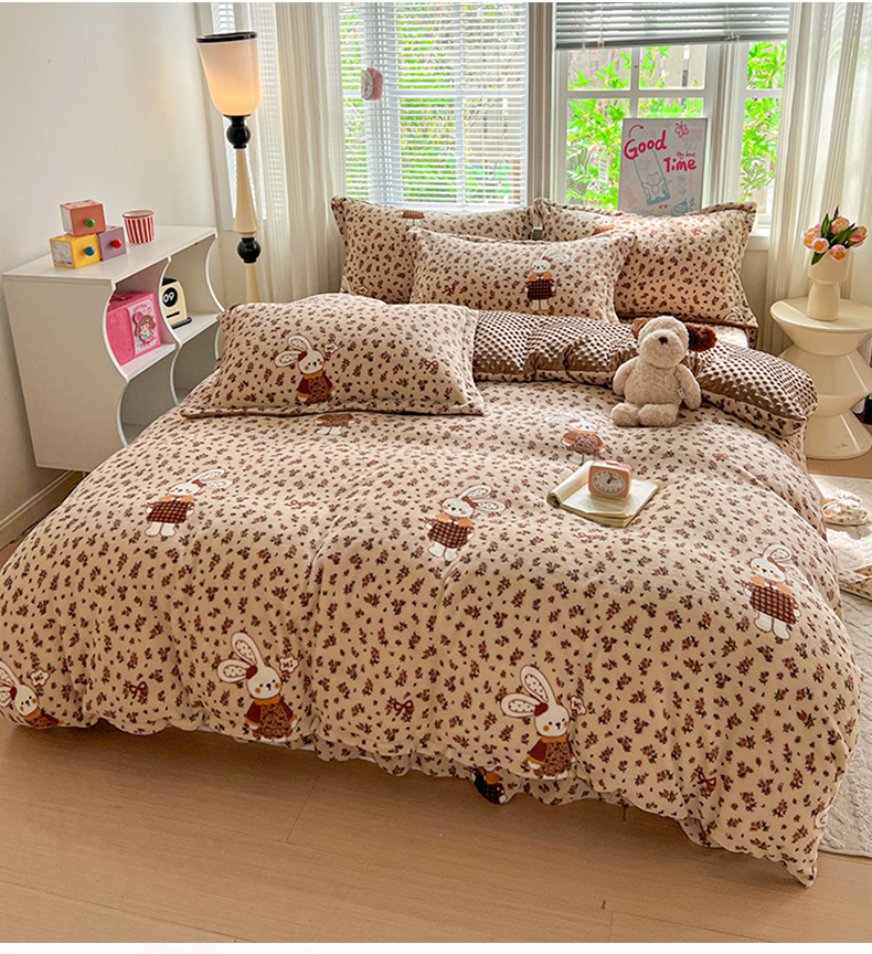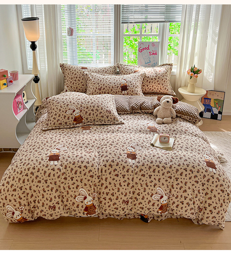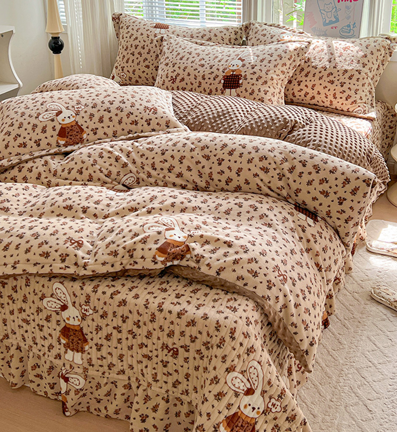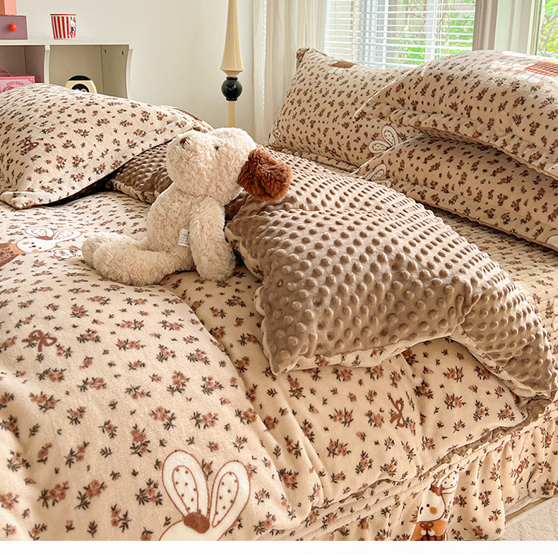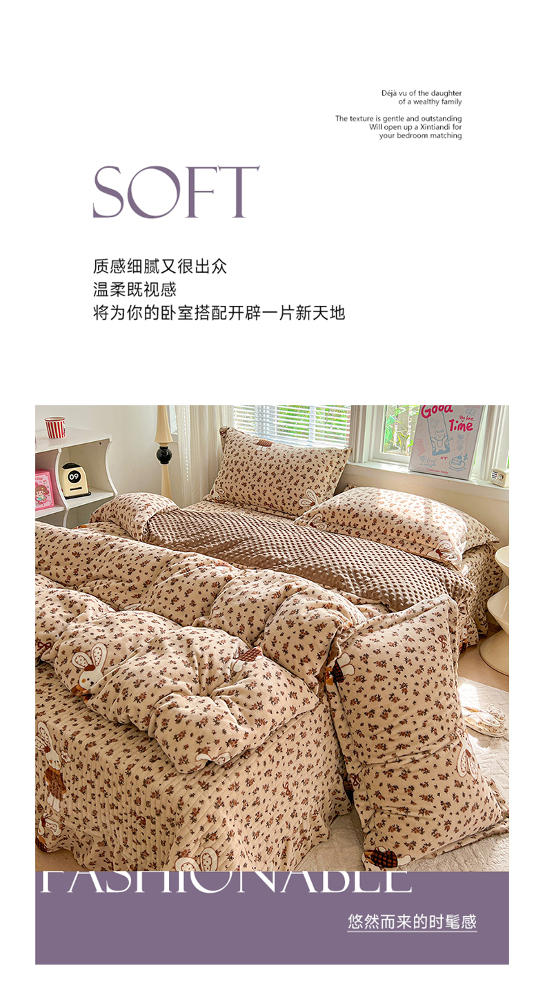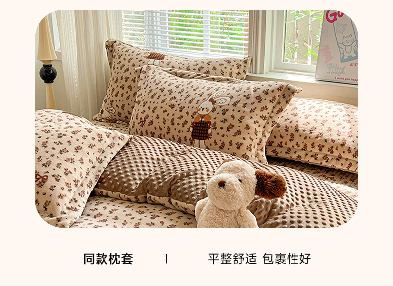 (总)一比一家纺 2025新款亲肤舒适兔毛绒兔兔绒牛奶绒四件套,爱心,豹纹-咖,波点-咖,波点-奶白,碟梦,蝴蝶结点点-粉,蝴蝶结点点-咖,花满园,花语,花园兔,花园熊,花枝-咖,花枝-绿,摩卡,怦然心动,山茶花-灰,紫色花语