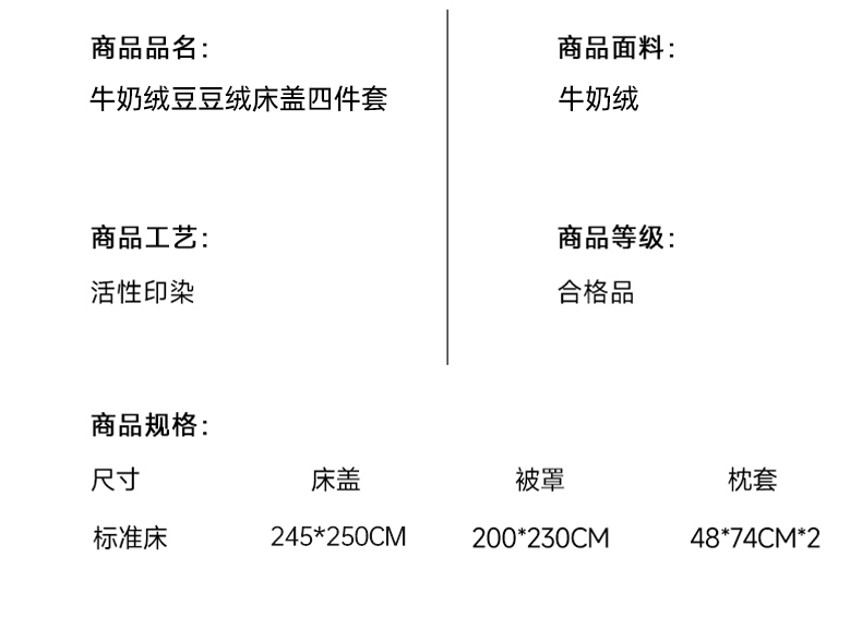 商品名称:(总)一比一 2025新款加厚保暖豆豆牛奶绒床盖款四件套