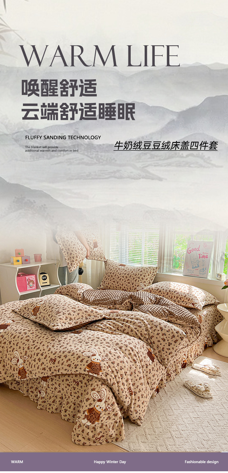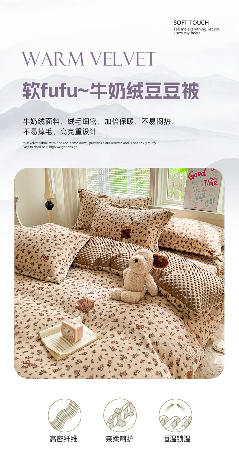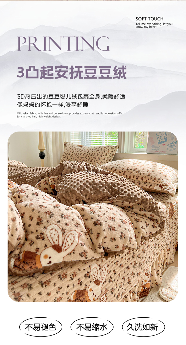 (总)一比一 2025新款加厚保暖豆豆牛奶绒床盖款四件套