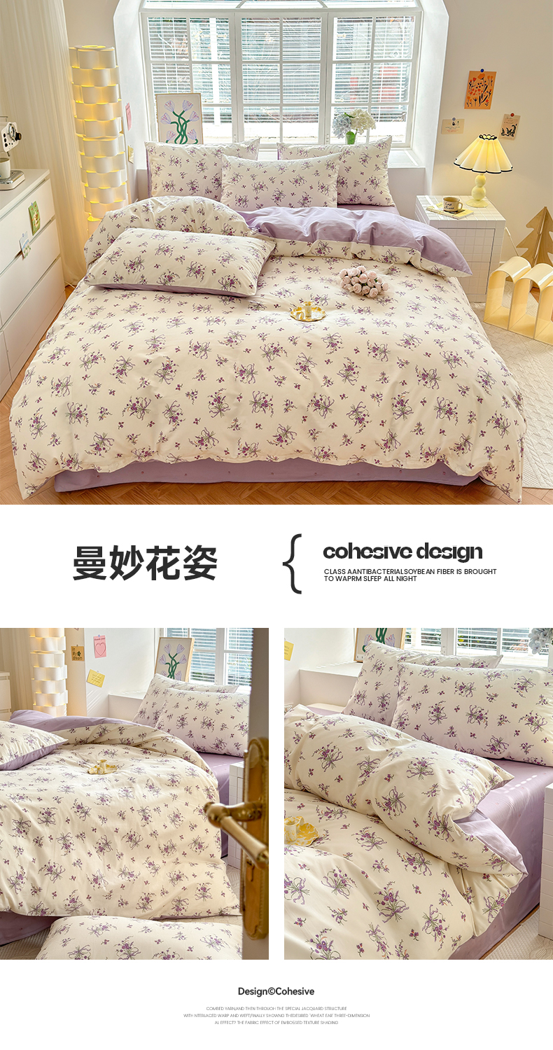 沐棉家居 2024新款小清新全棉13372印花四件套 曼妙花姿