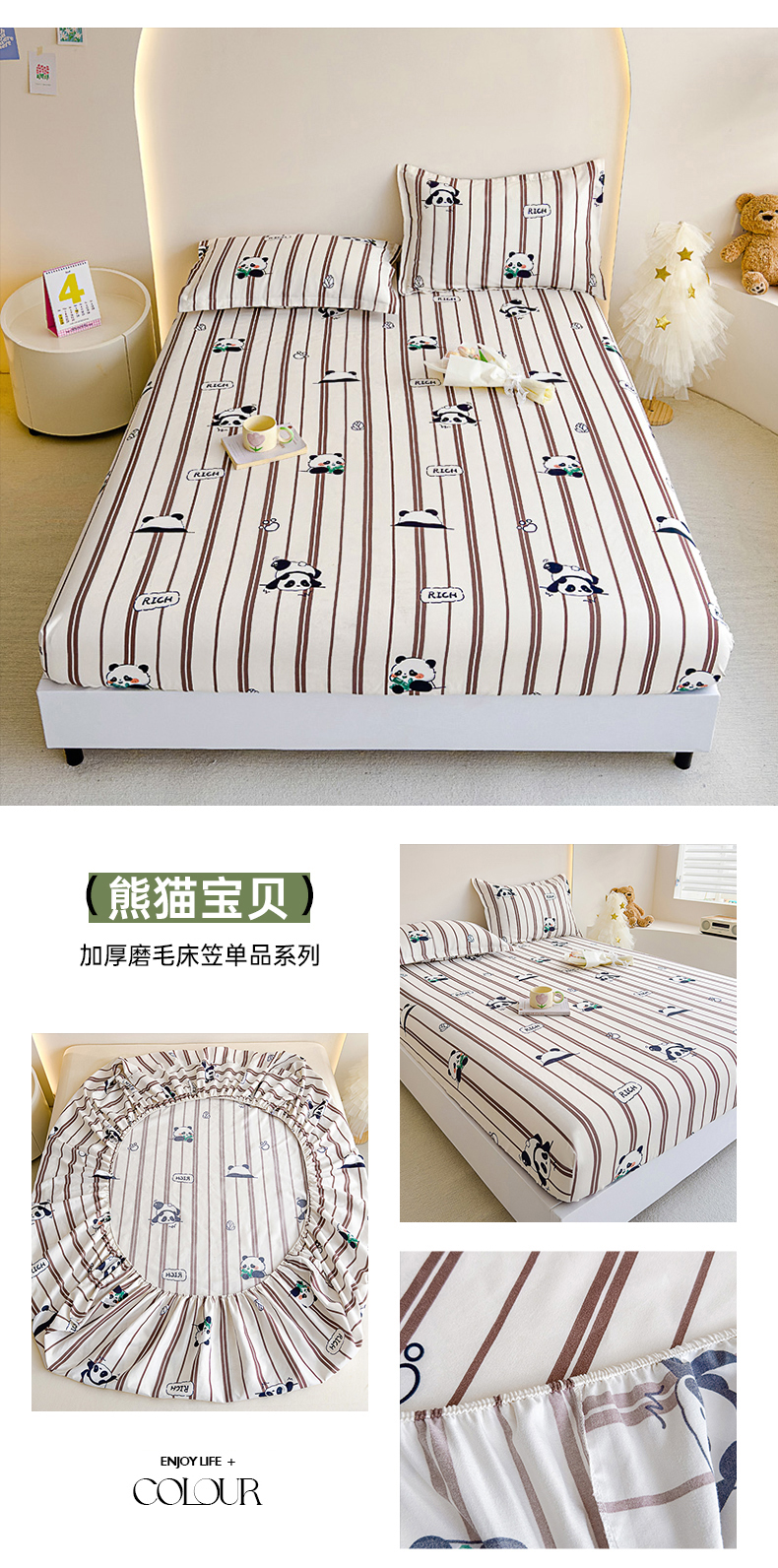 商品名称:靓生活 2024新款加厚磨毛生态棉单品床笠 熊猫宝贝