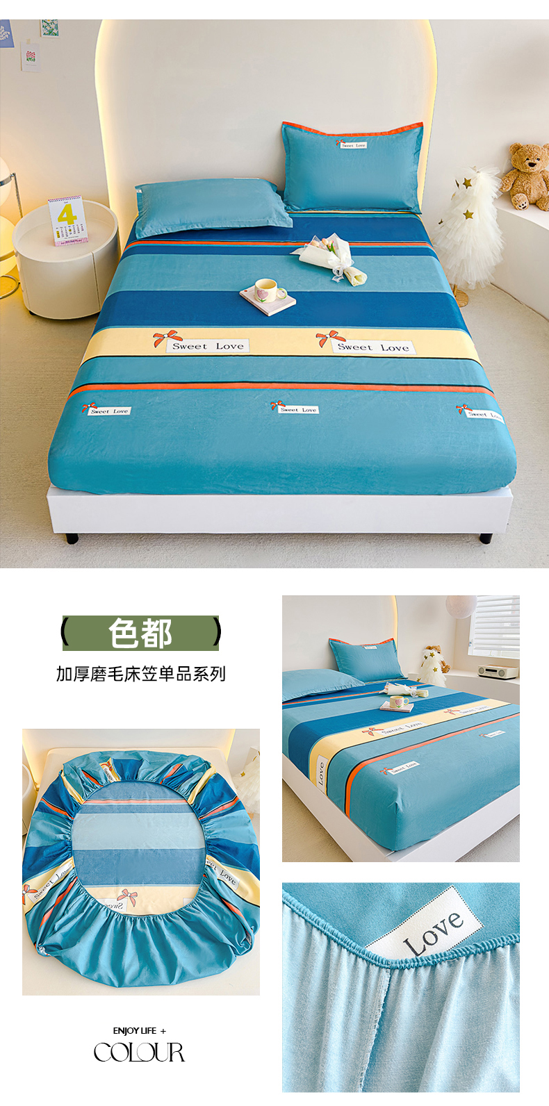靓生活 2024新款加厚磨毛生态棉单品床笠 色都
