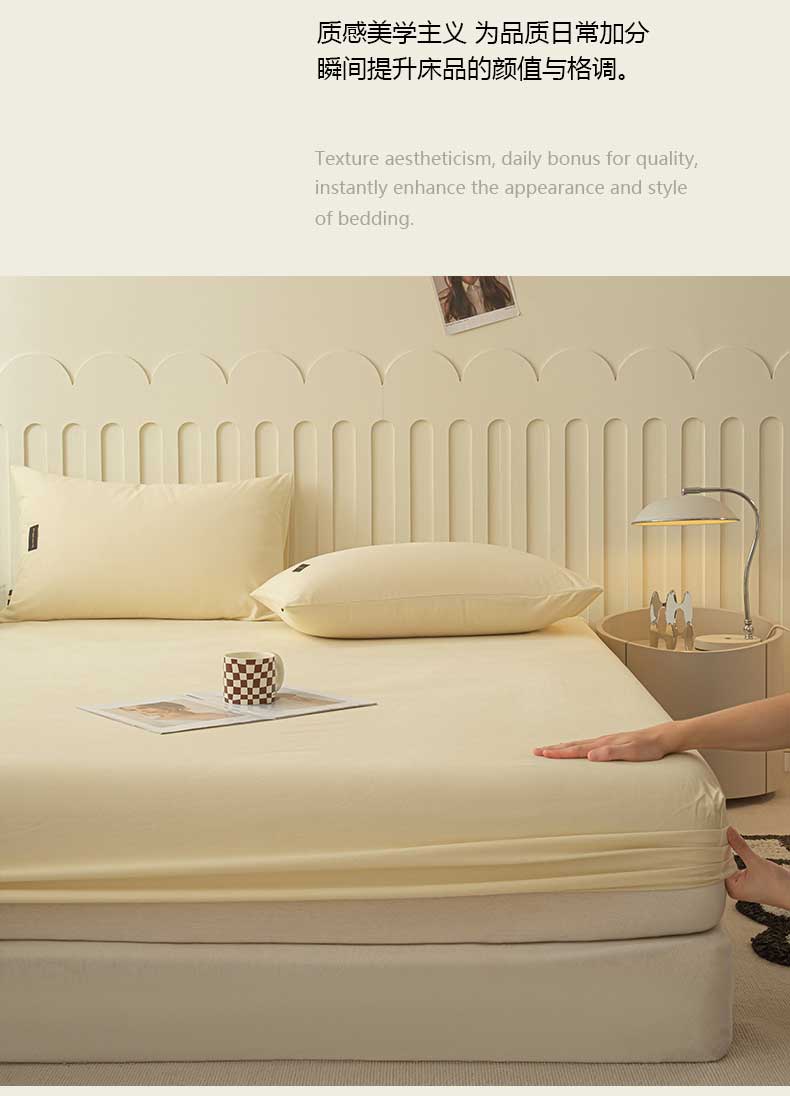 • 91家纺网 家纺一手货源 找家纺 涵宸家纺 2024新款原棉纯色织标磨毛单品及套件--床笠 单床笠-奶昔白