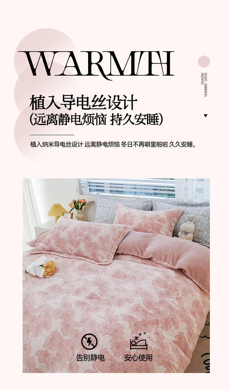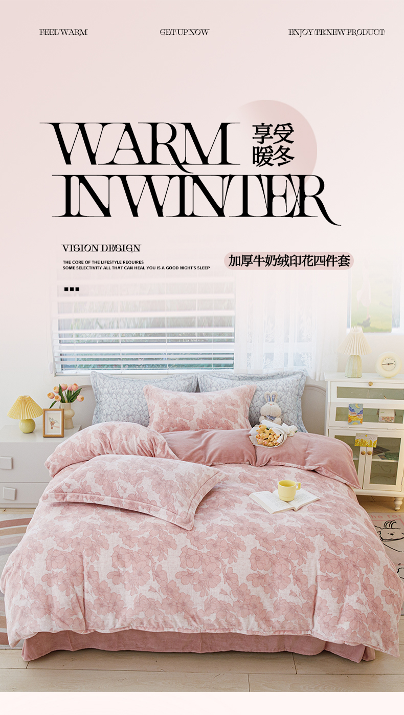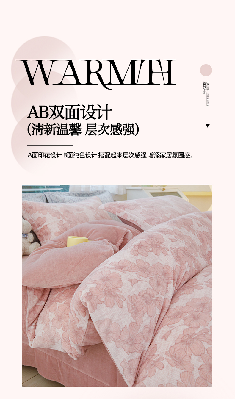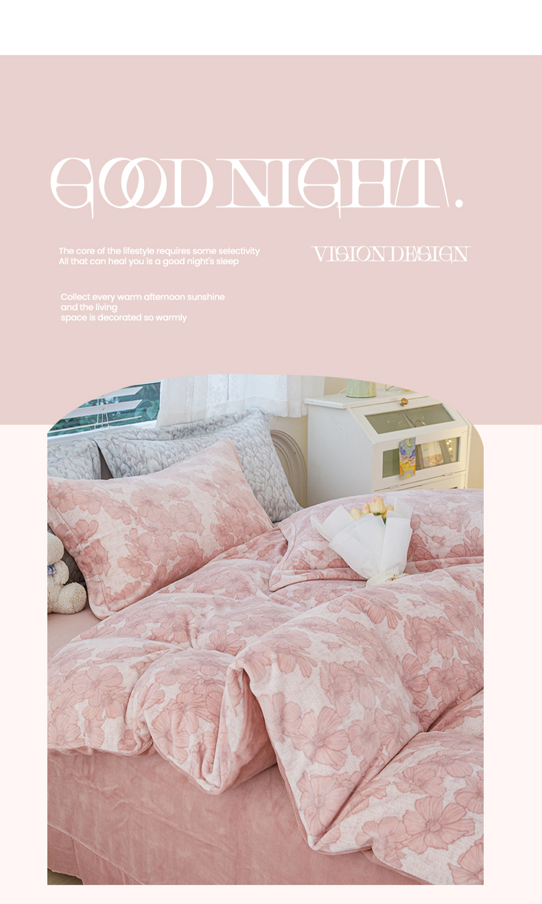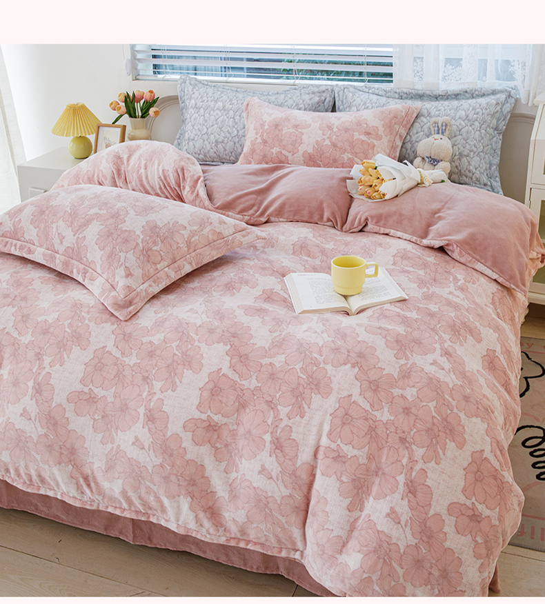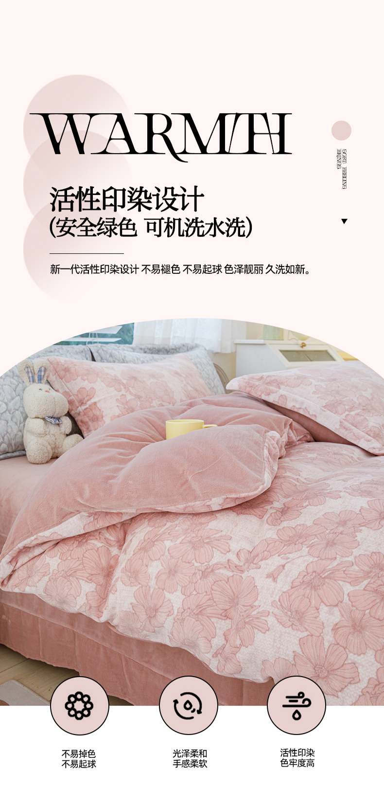 商品名称:锦罗绣 2024新款加厚牛奶绒四件套印花四件套单被套 佳期如梦-胭粉