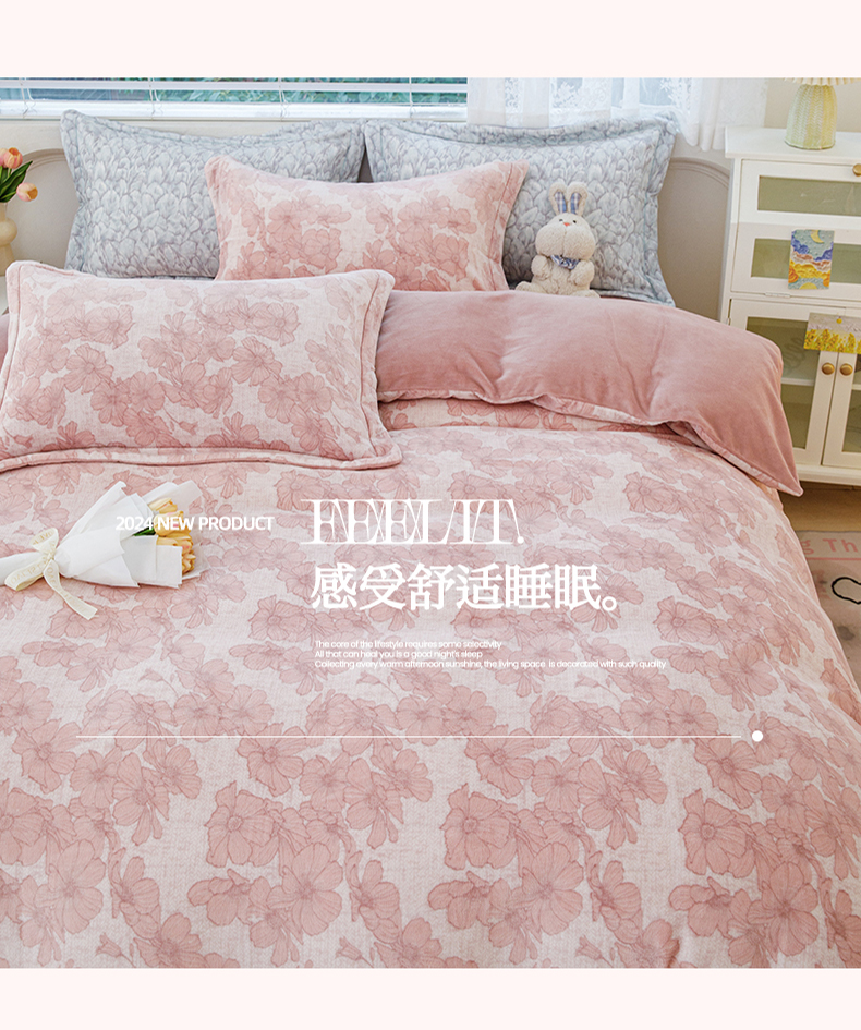 锦罗绣 2024新款加厚牛奶绒四件套印花四件套单被套 佳期如梦-胭粉
