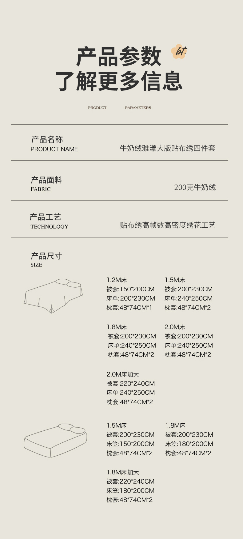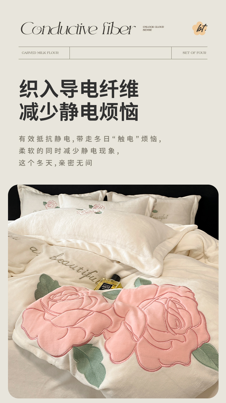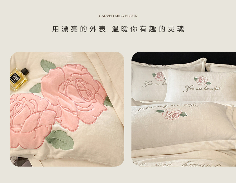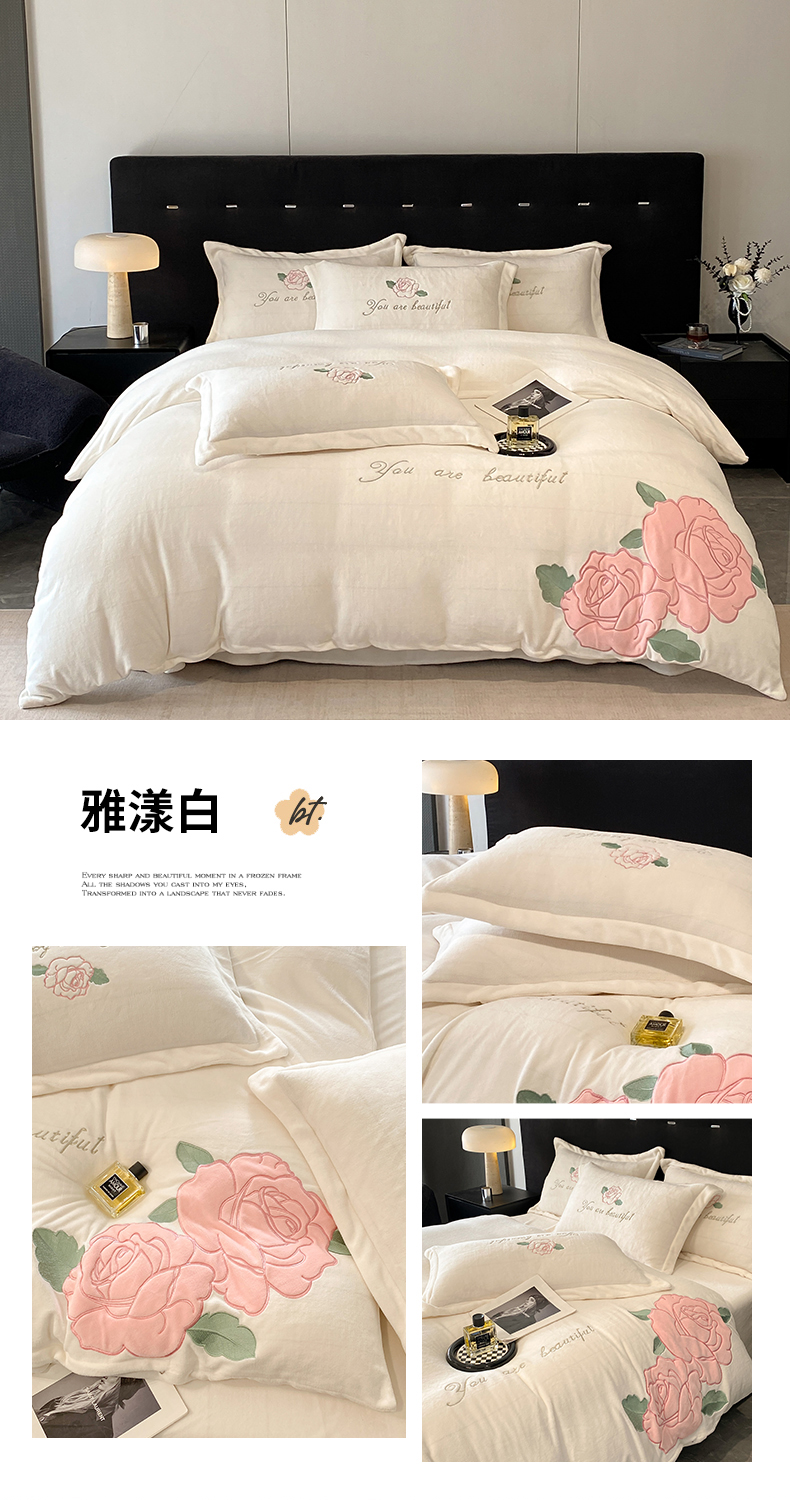 当前位置: 91家纺网 > 商品网购 > 床品套件 > 四件套 > 牛奶绒四件套 > 你好美丽 2025新款200克A类牛奶绒贴布绣大阪四件套雅漾-芬芳 雅漾白