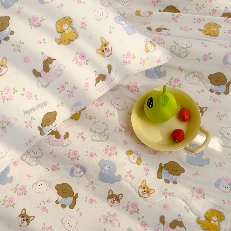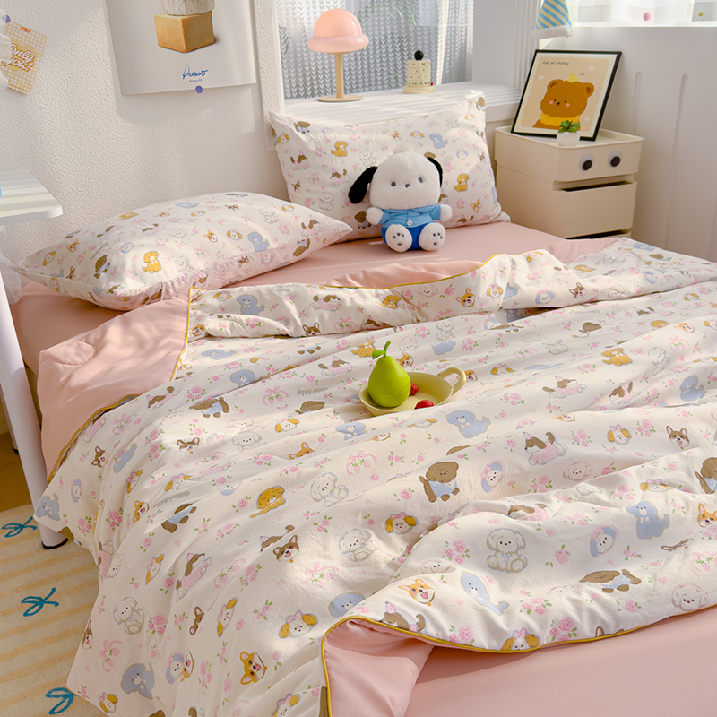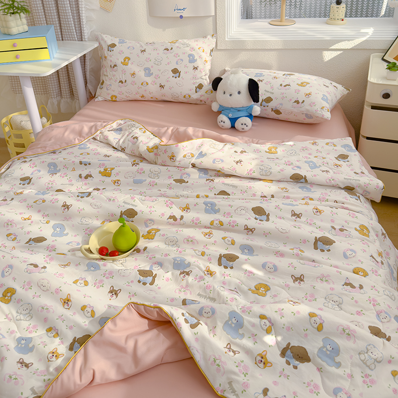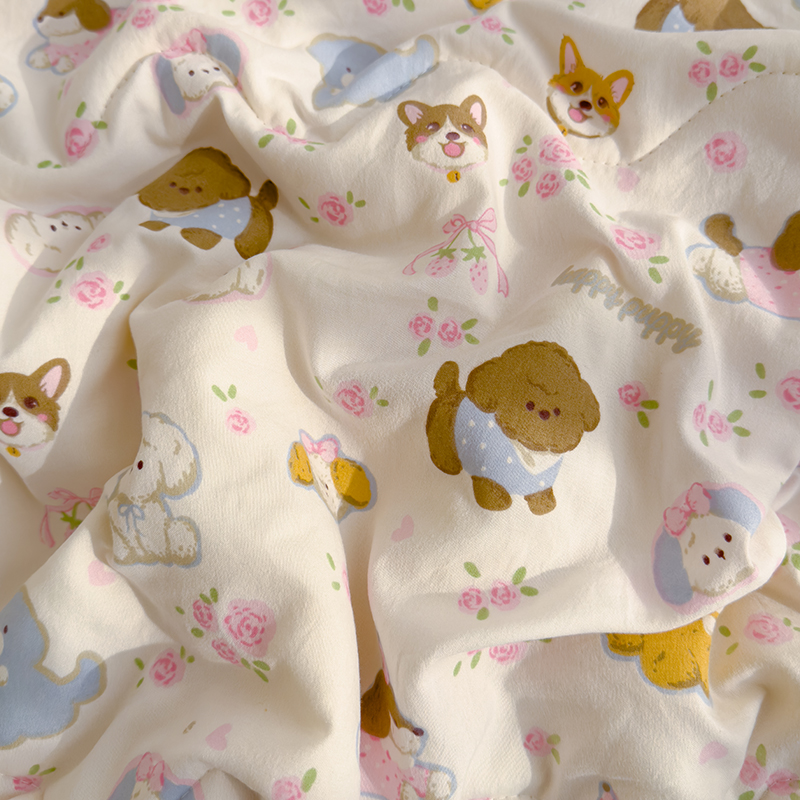 商品名称:太阳树家纺 2025新款A类母婴级双层纱大豆被大豆纤维夏被 奶芙汪汪
