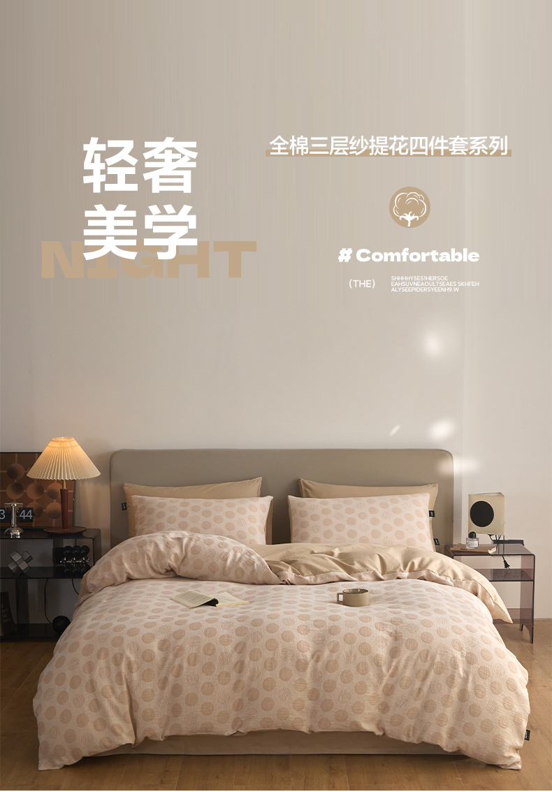 商品名称:乐美家纺 2025秋冬新款三层纱大提花系列四件套 波妞-卡其