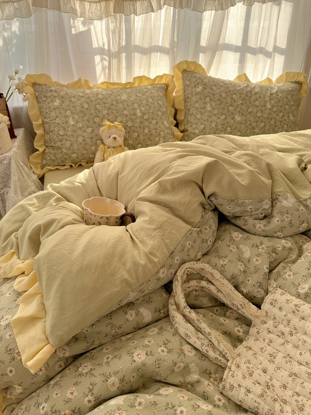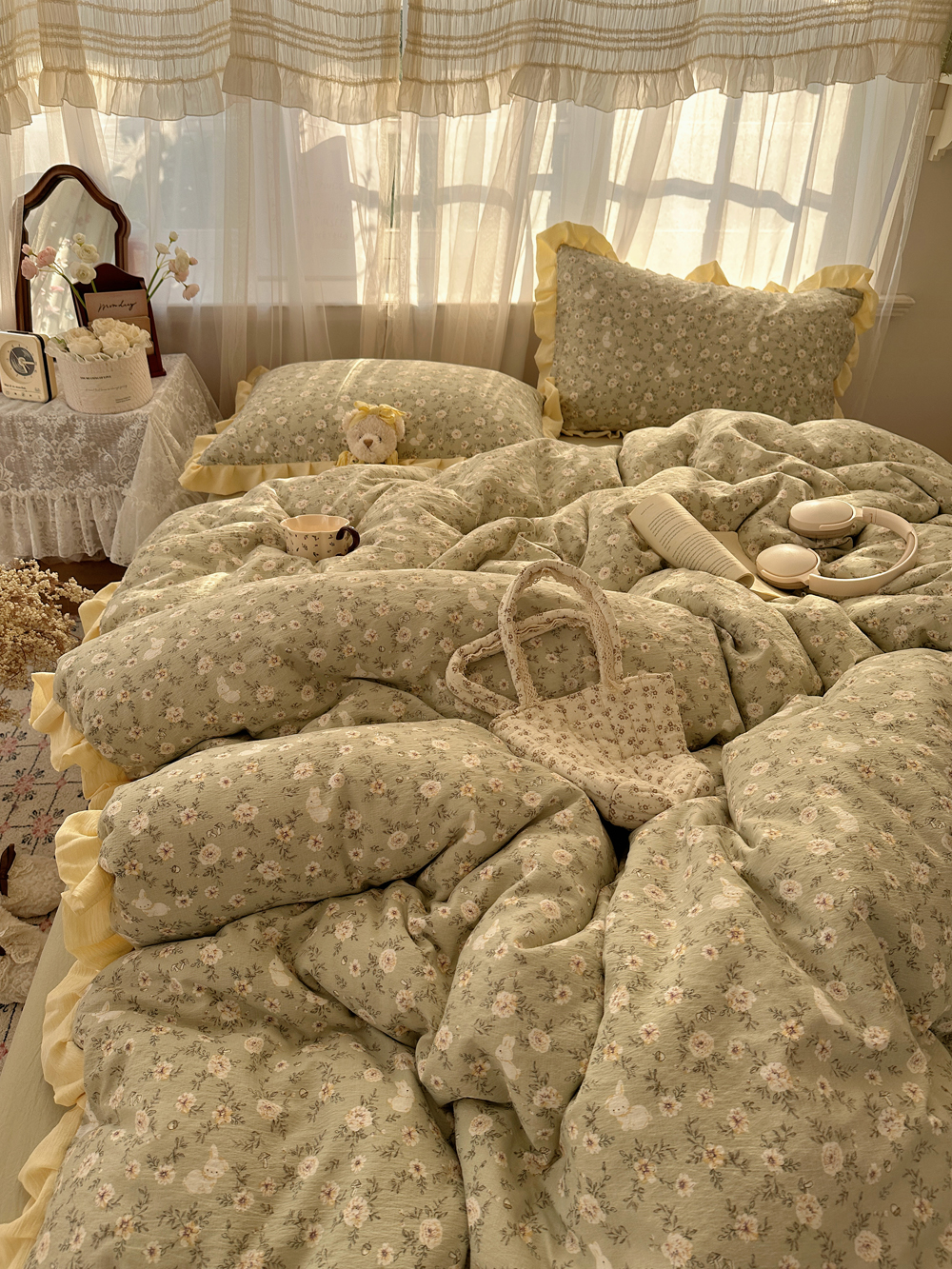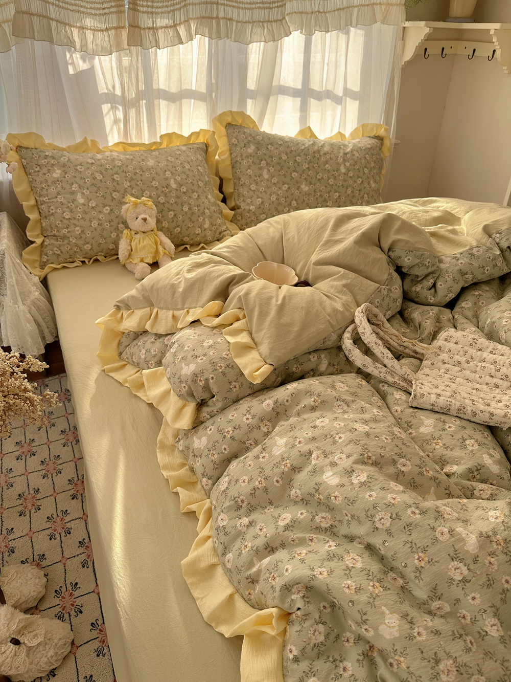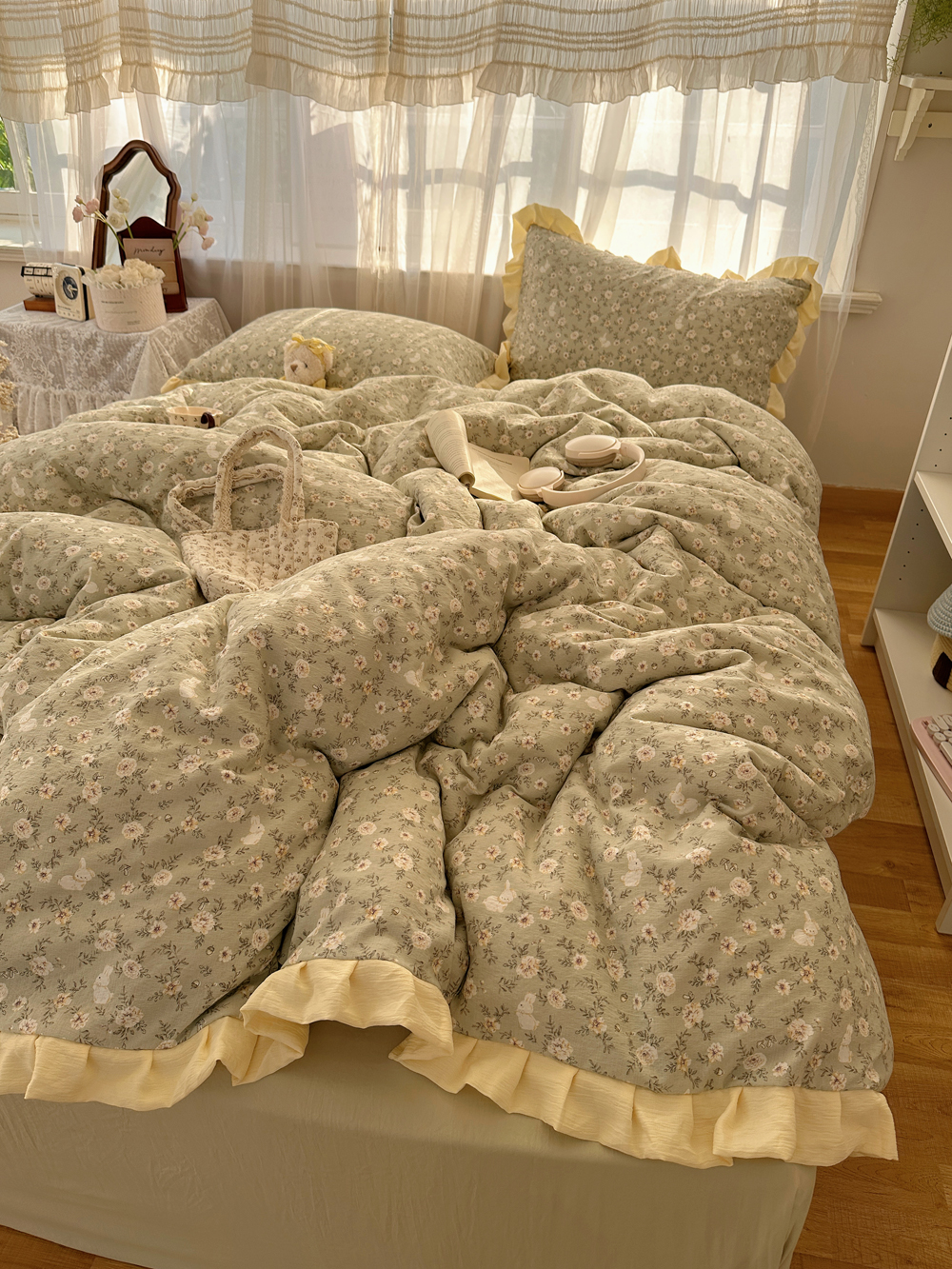 当前位置: 91家纺网 > 商品网购 > 床品套件 > 四件套 > 双层纱四件套 > 顾里家纺 2025新款韩系花边皱皱纱四件套 桔梗小屿