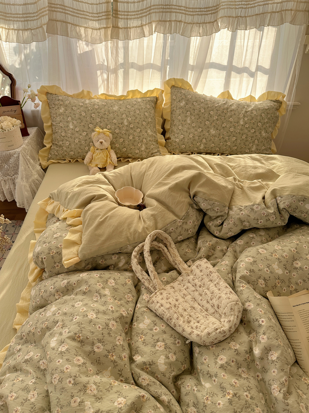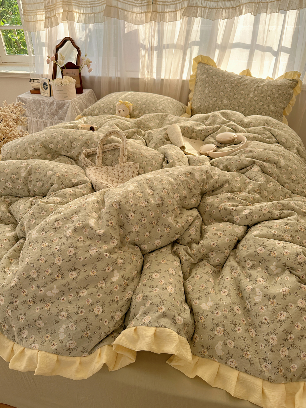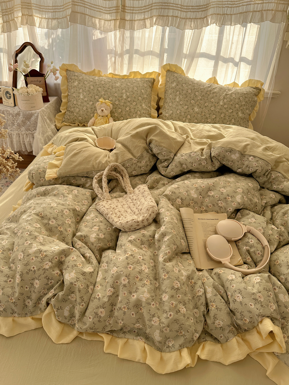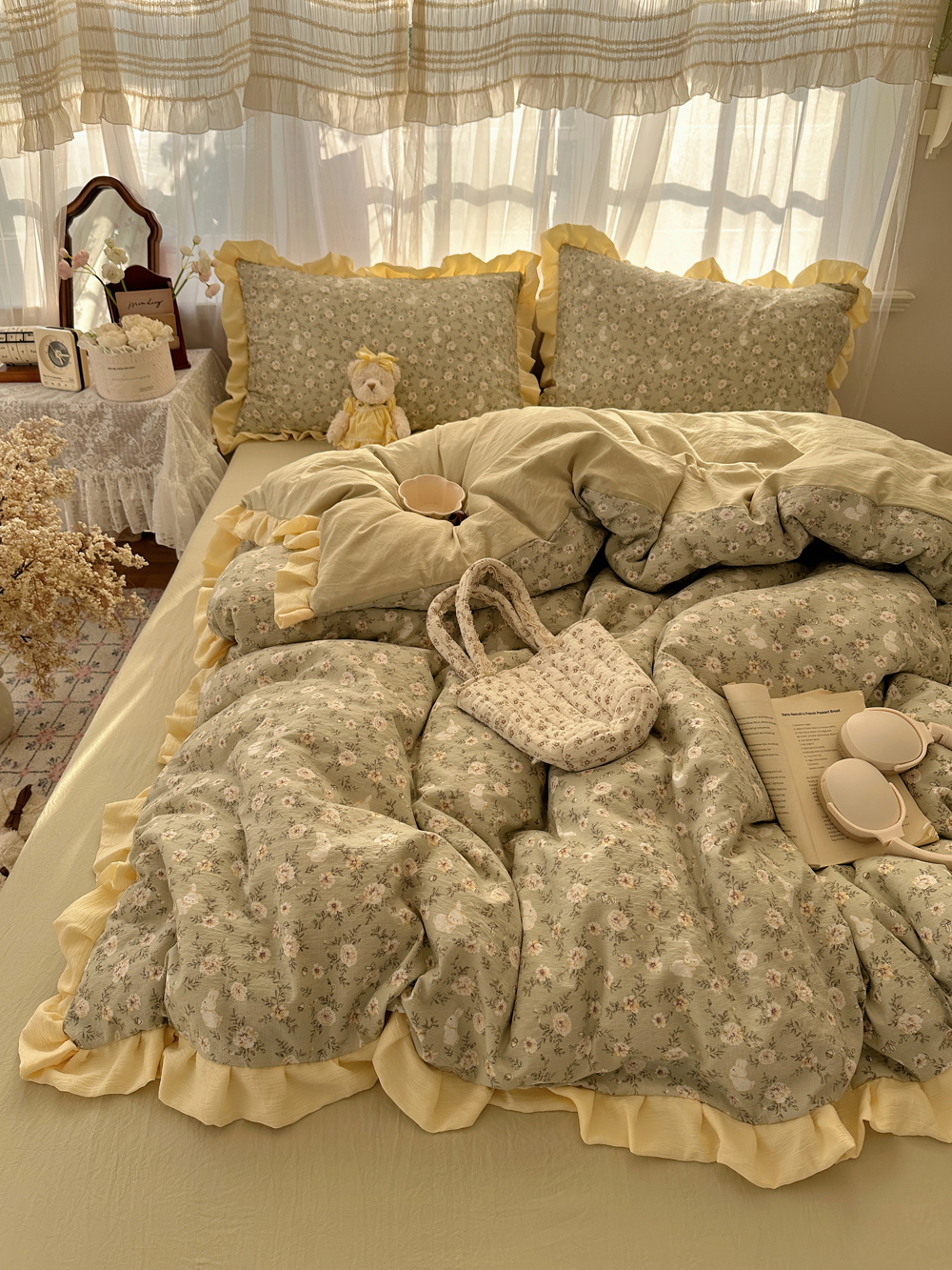当前位置: 91家纺网 > 商品网购 > 床品套件 > 四件套 > 双层纱四件套 > 顾里家纺 2025新款韩系花边皱皱纱四件套 桔梗小屿