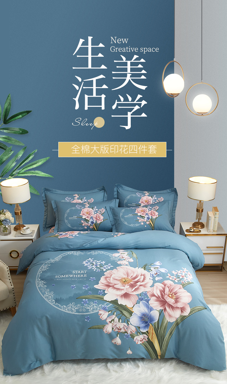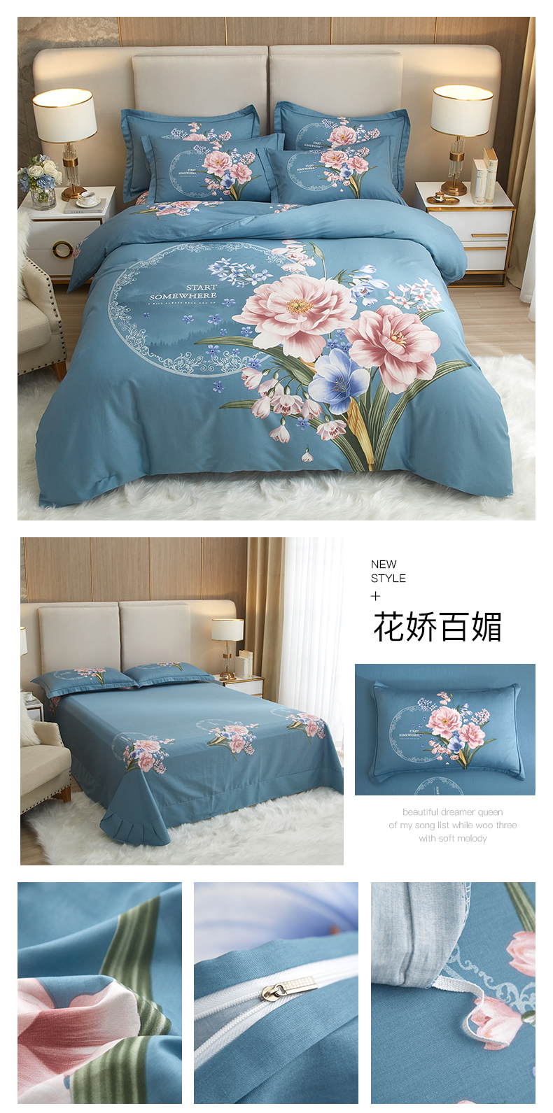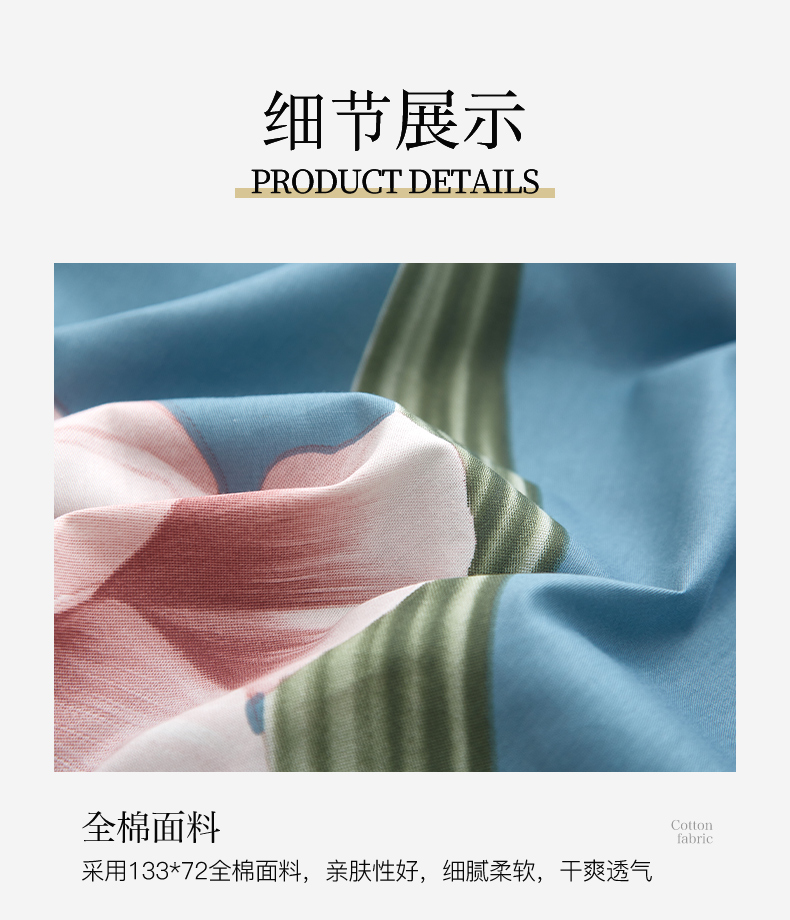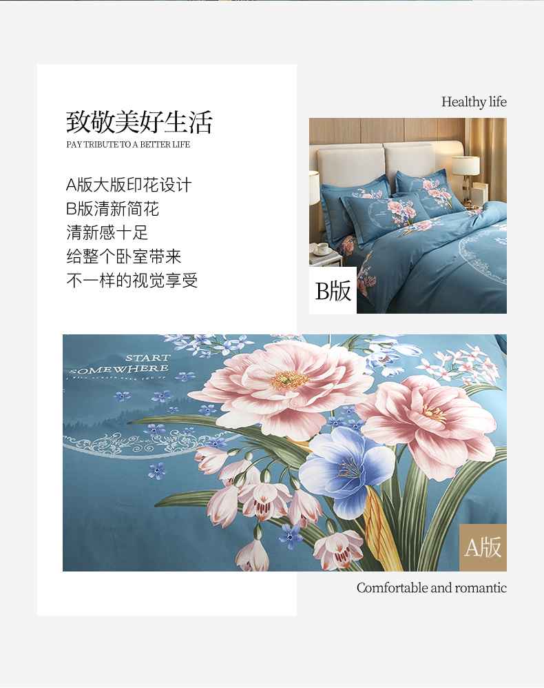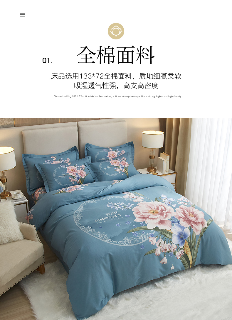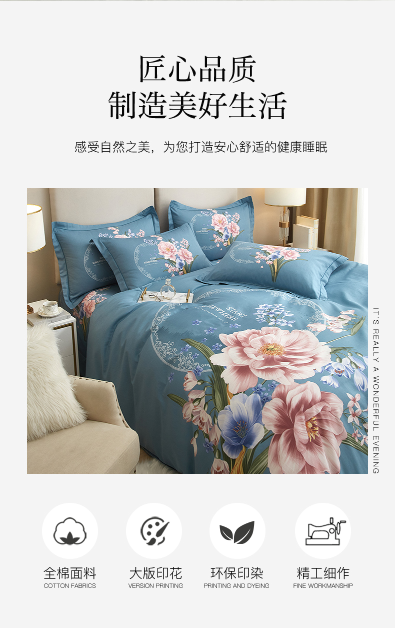 商品名称:格里芬家纺2025全棉大版花13372印花四件套 花娇百媚