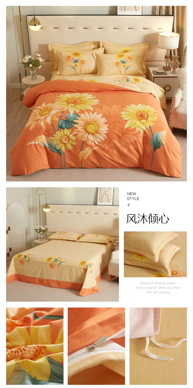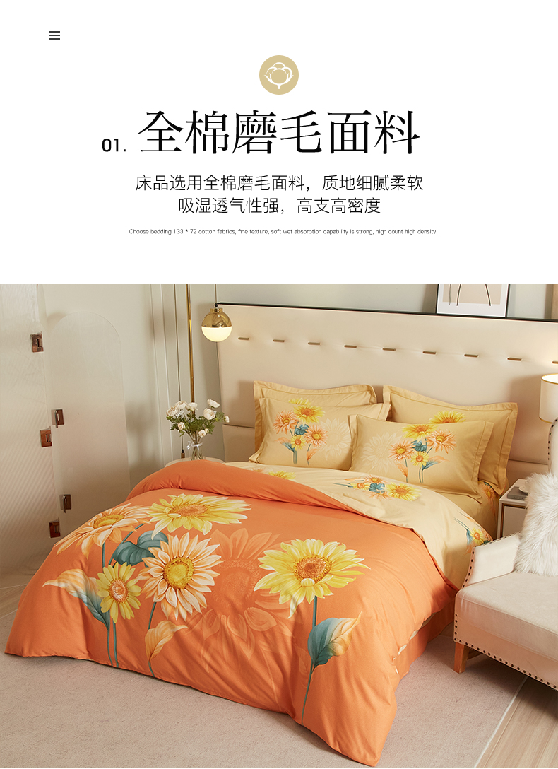 商品名称:格里芬家纺2025新款全棉大版磨毛生态磨毛四件套 风沐倾心