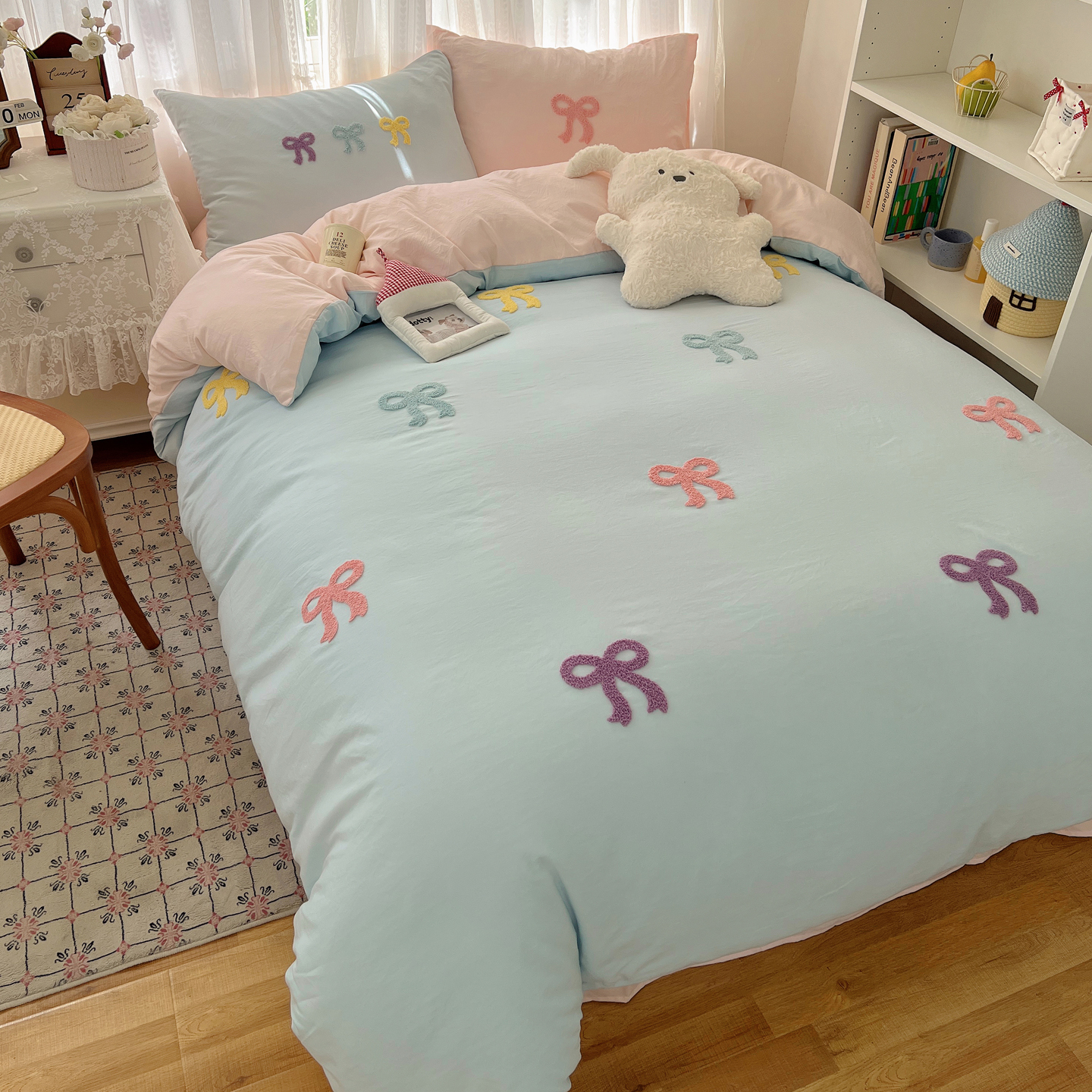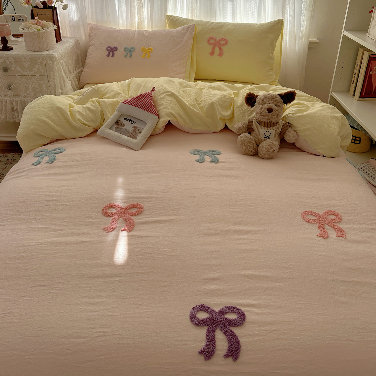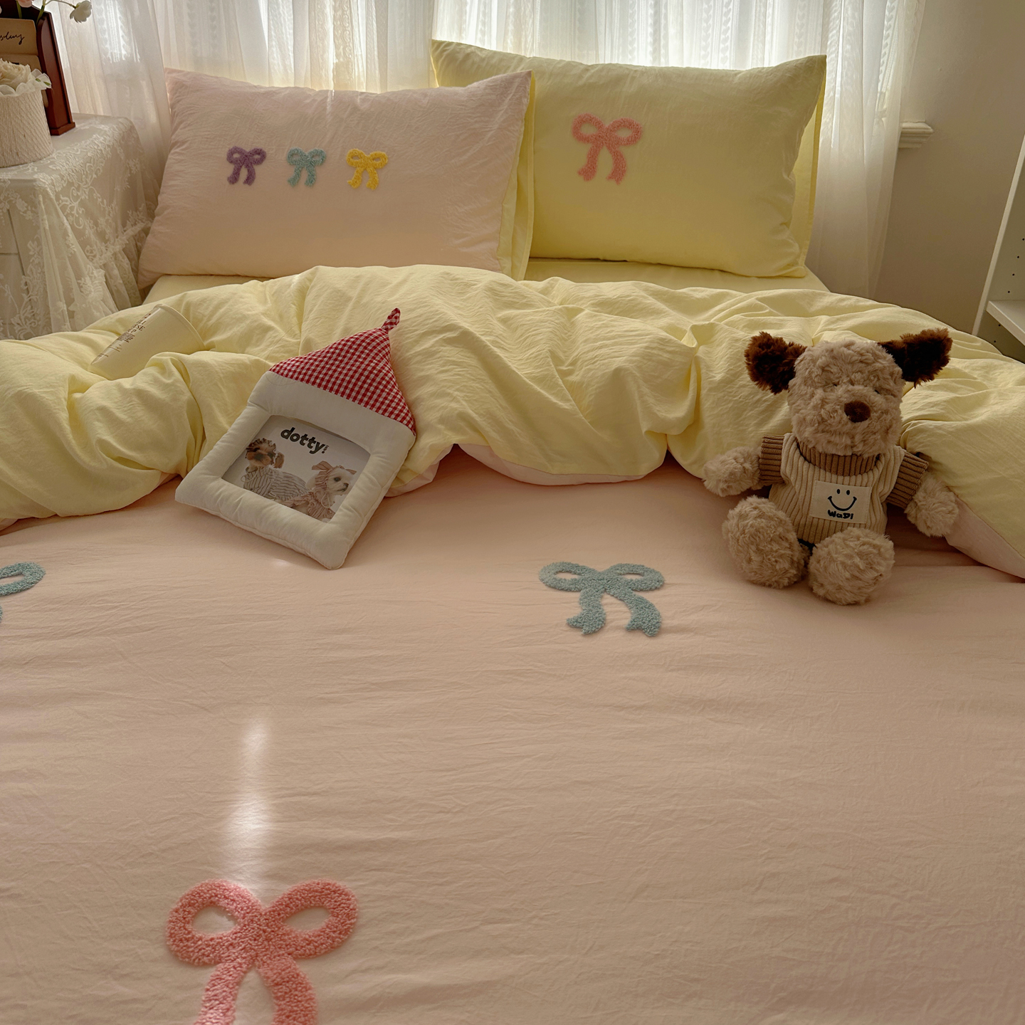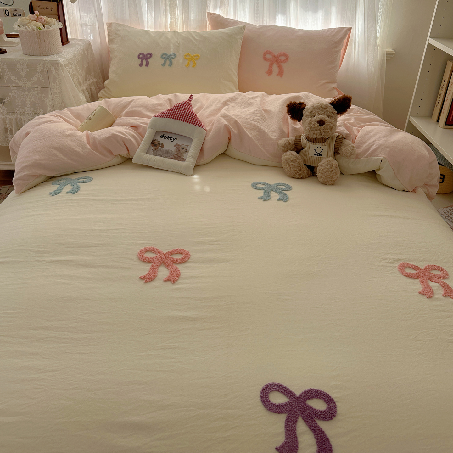 当前位置: 91家纺网 > 商品网购 > 床品套件 > 四件套 > 毛巾绣四件套 > 顾里家纺 2025新款韩系蝴蝶结云朵棉毛巾绣套件四件套-少女梦想 少女梦想(米)