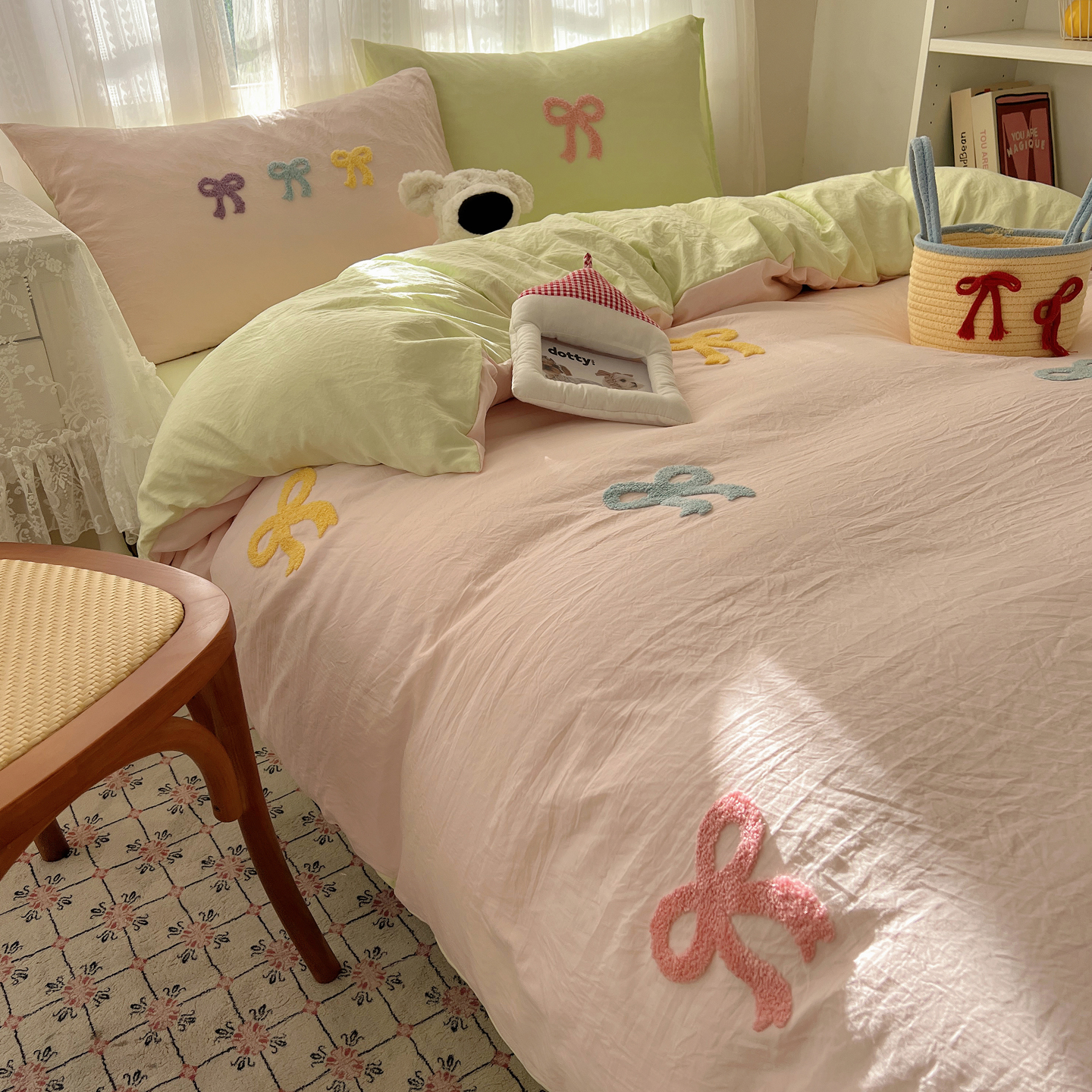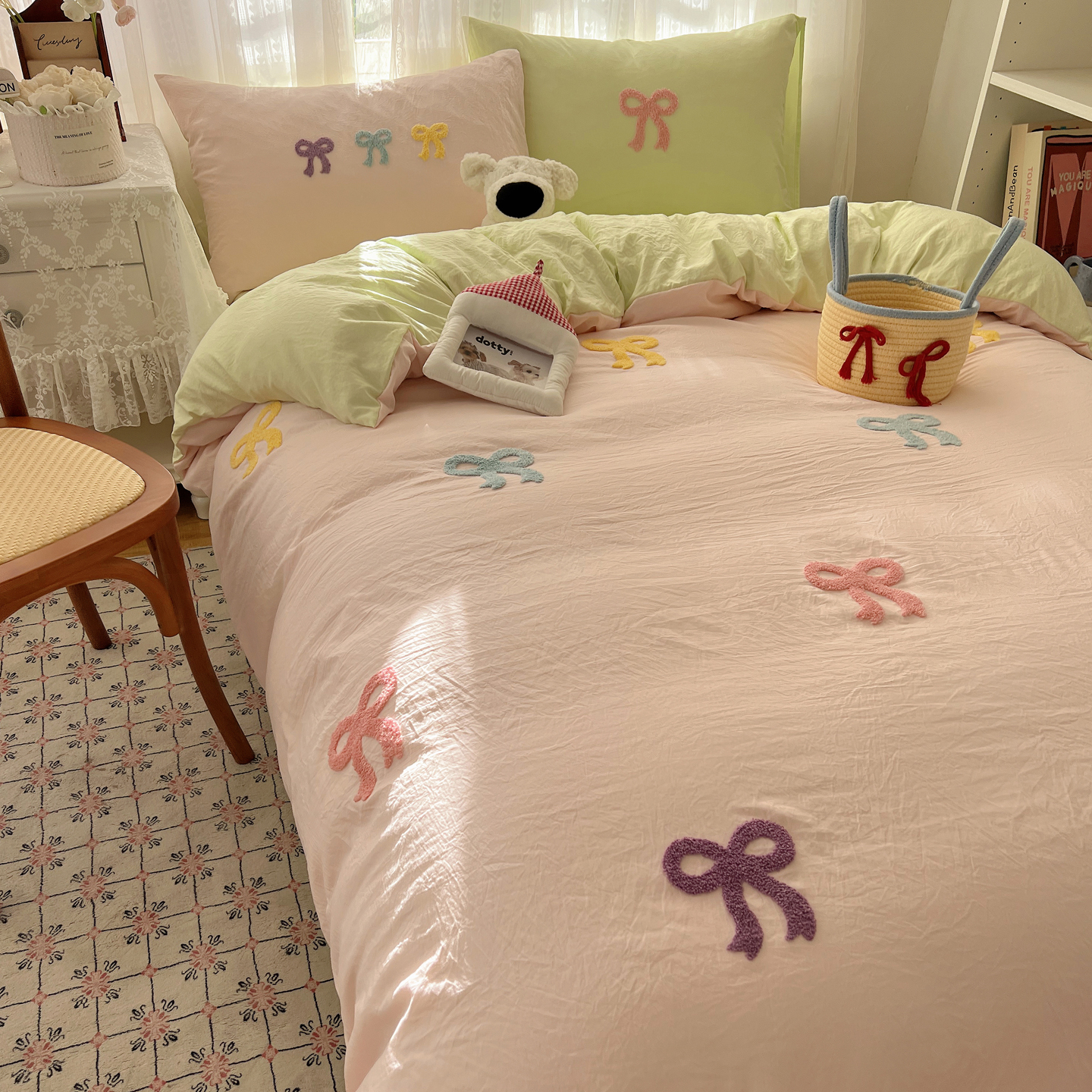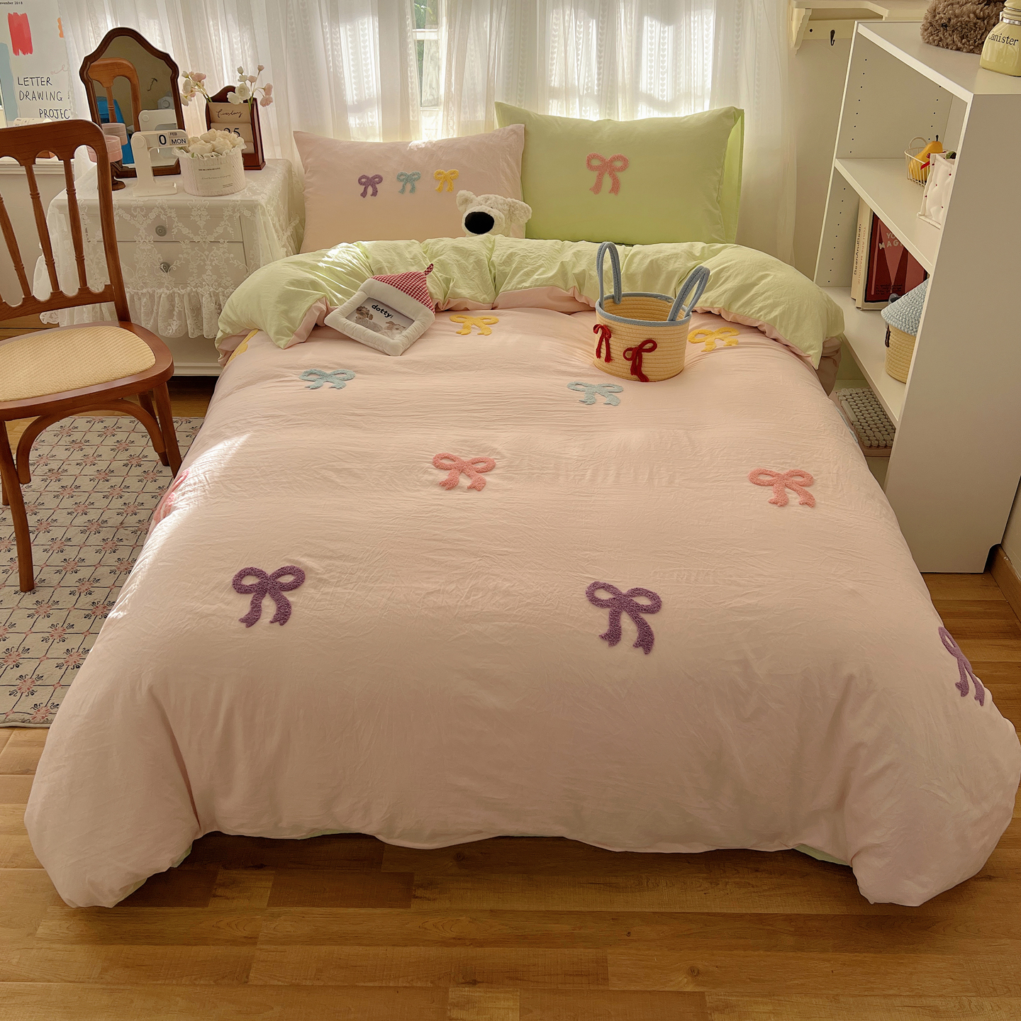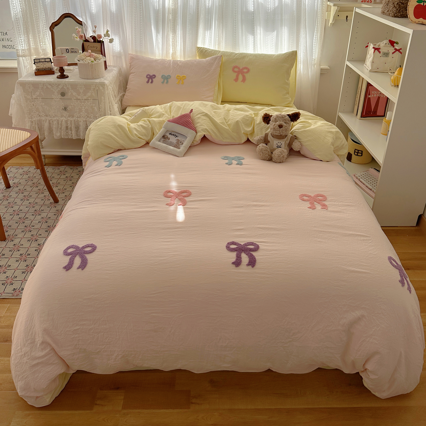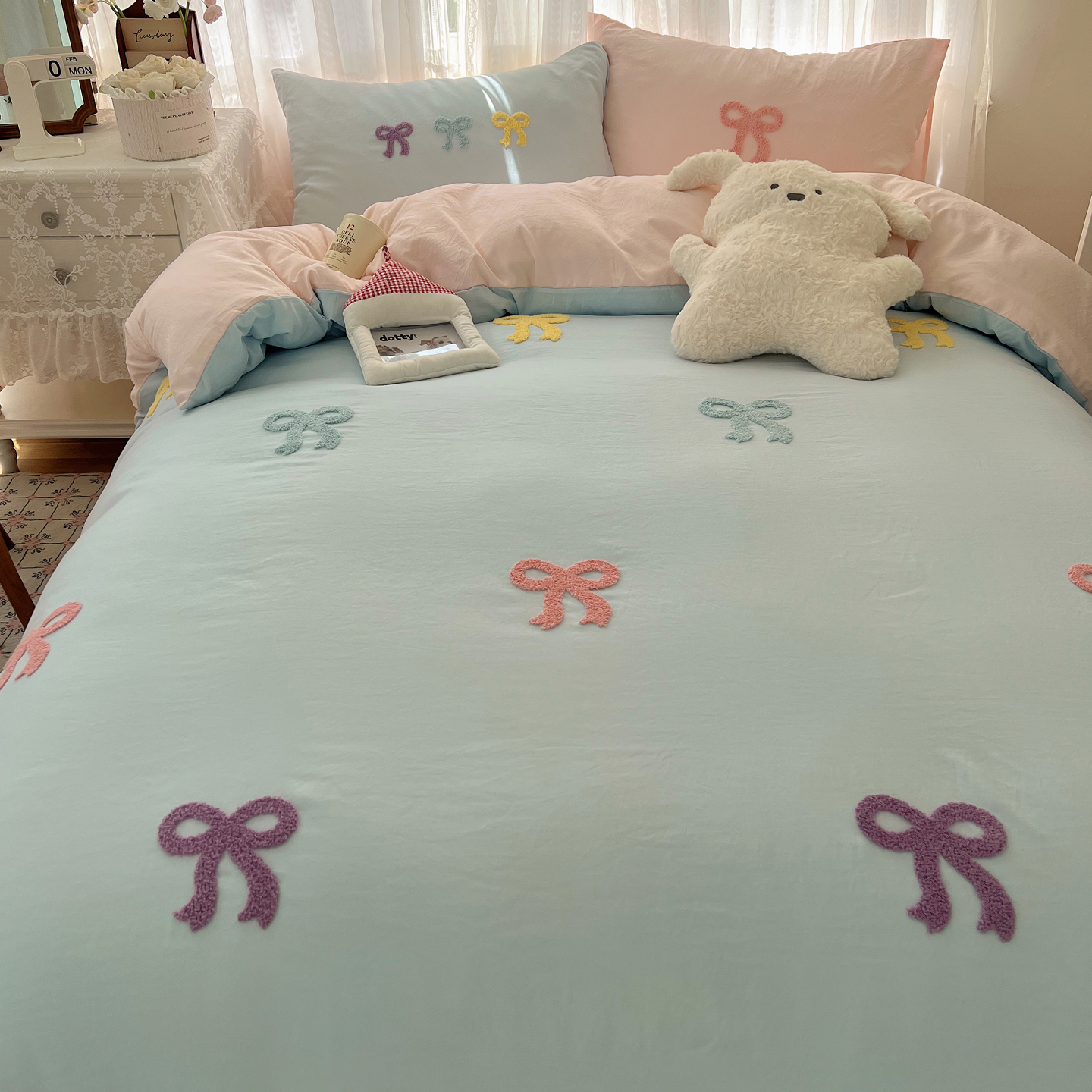 当前位置: 91家纺网 > 商品网购 > 床品套件 > 四件套 > 毛巾绣四件套 > 顾里家纺 2025新款韩系蝴蝶结云朵棉毛巾绣套件四件套-少女梦想 少女梦想(米)