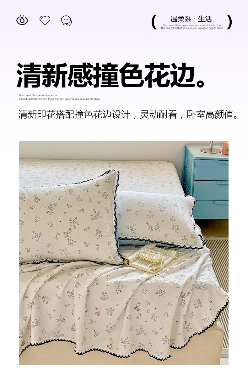 • 91家纺网 家纺一手货源 找家纺 逸林家纺《原希尔顿逸林》 2025新款云感皱皱纱镂空花边床单单品床单单件单床单 花间兔