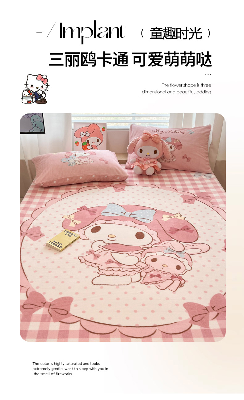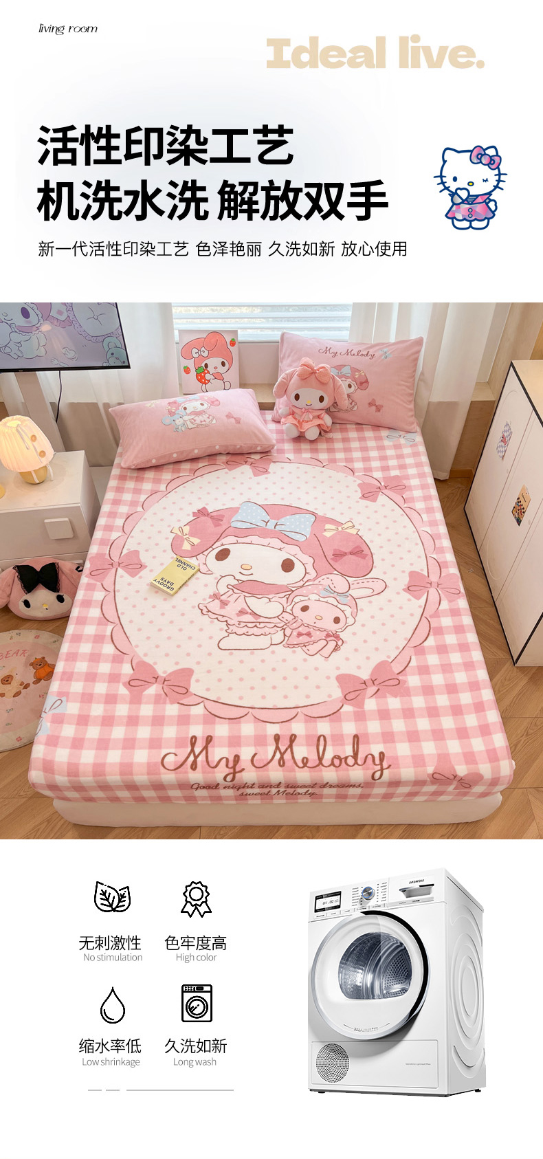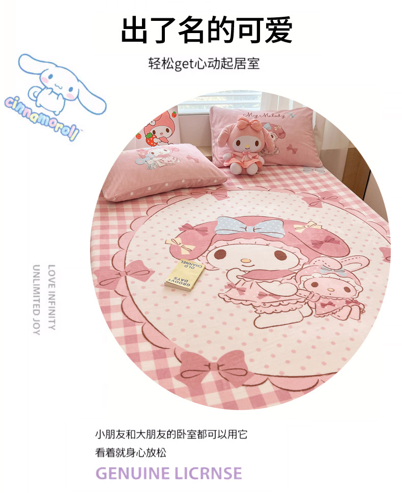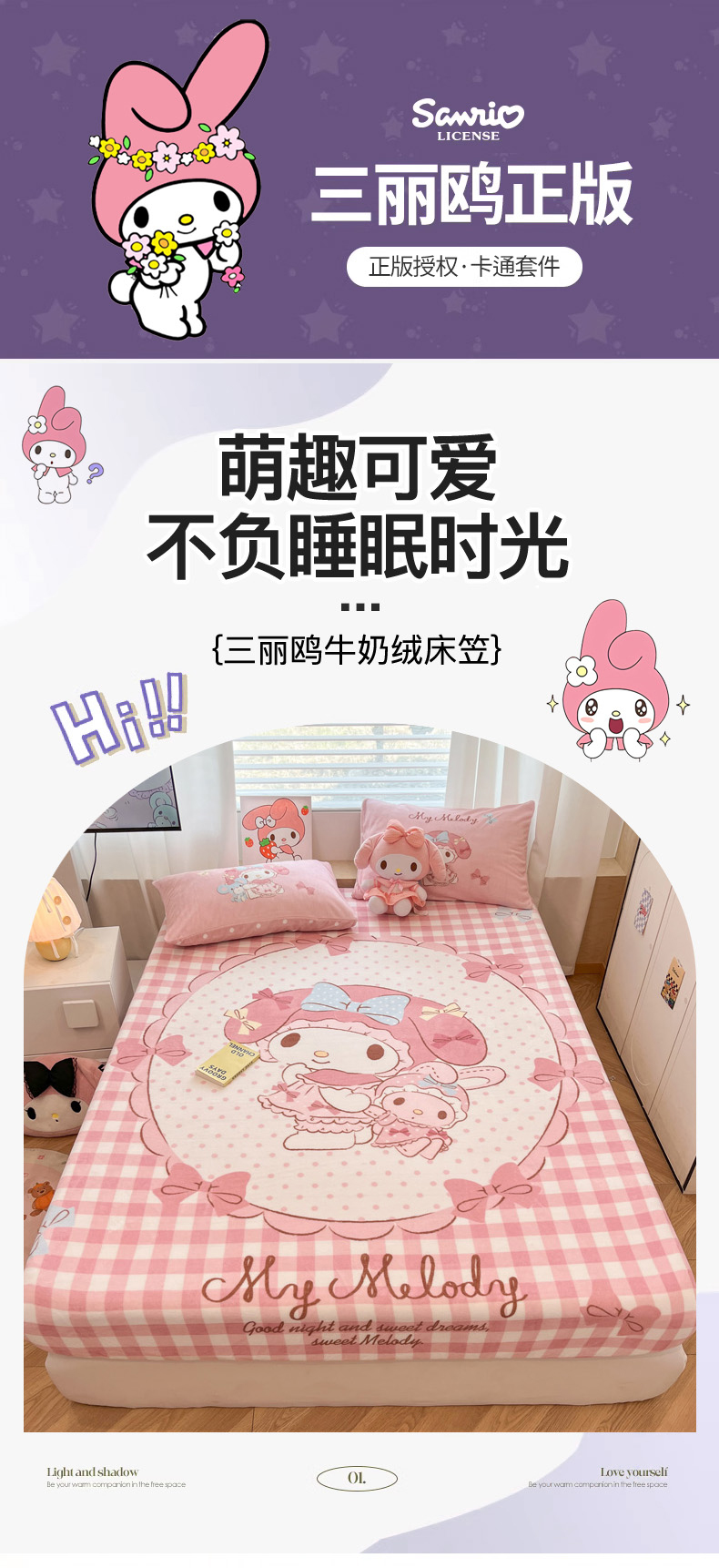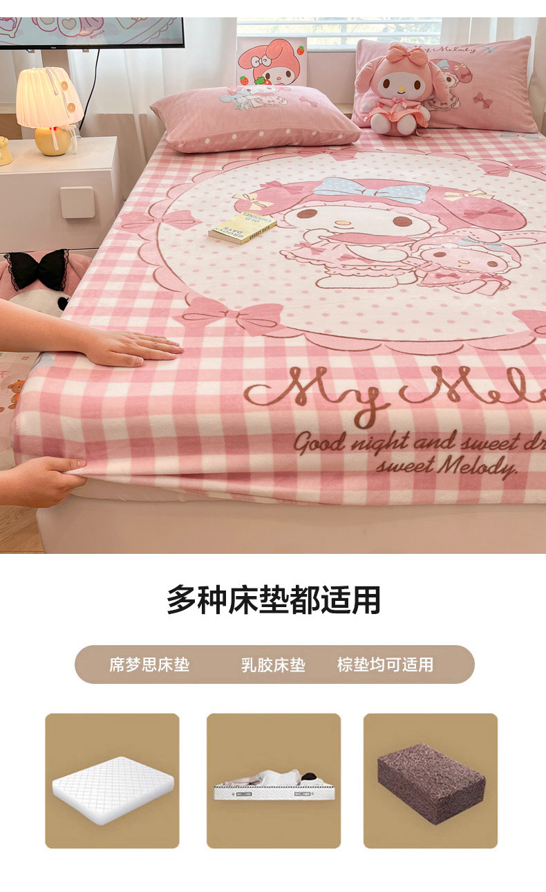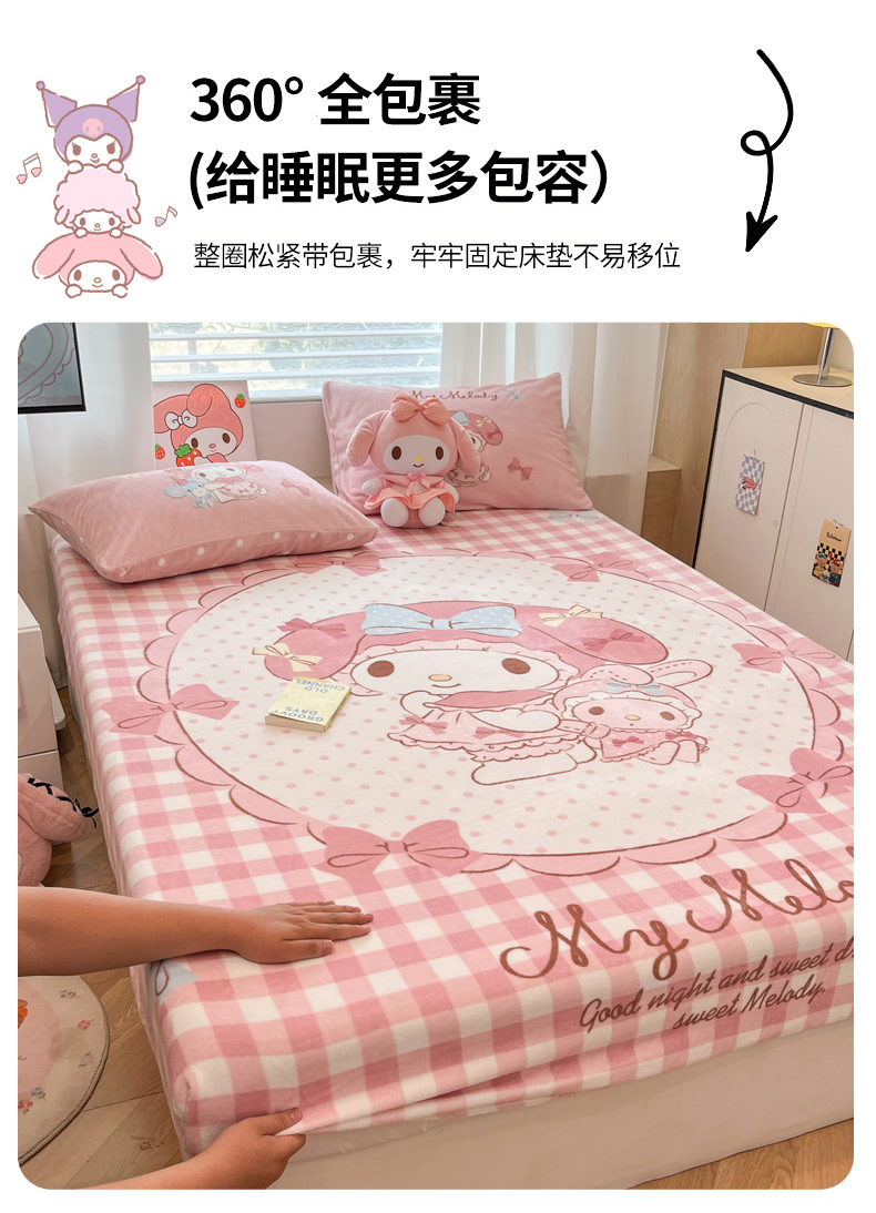 暮思家居 2025新款正版授权三丽鸥大版牛奶绒数码印花单品床笠单件床笠(带标价格) 绒A版-相框美乐蒂
