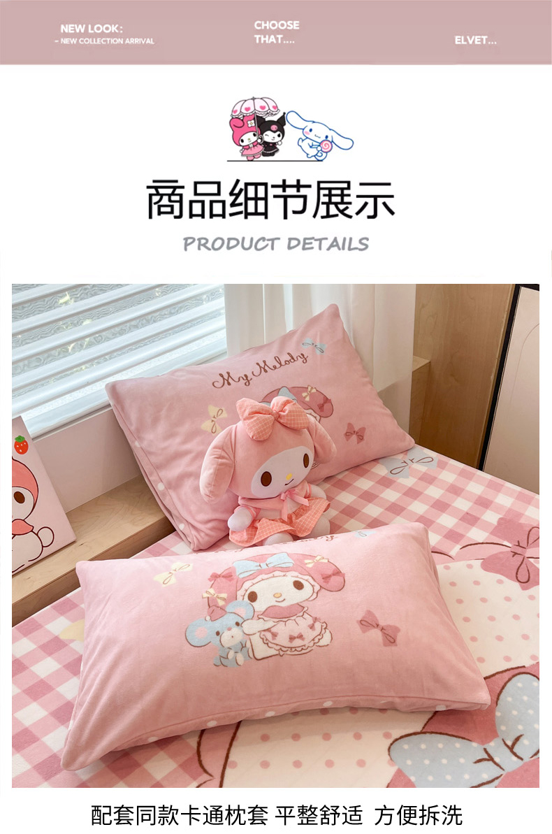 商品名称:暮思家居 2025新款正版授权三丽鸥大版牛奶绒数码印花单品床笠单件床笠(带标价格) 绒A版-相框美乐蒂