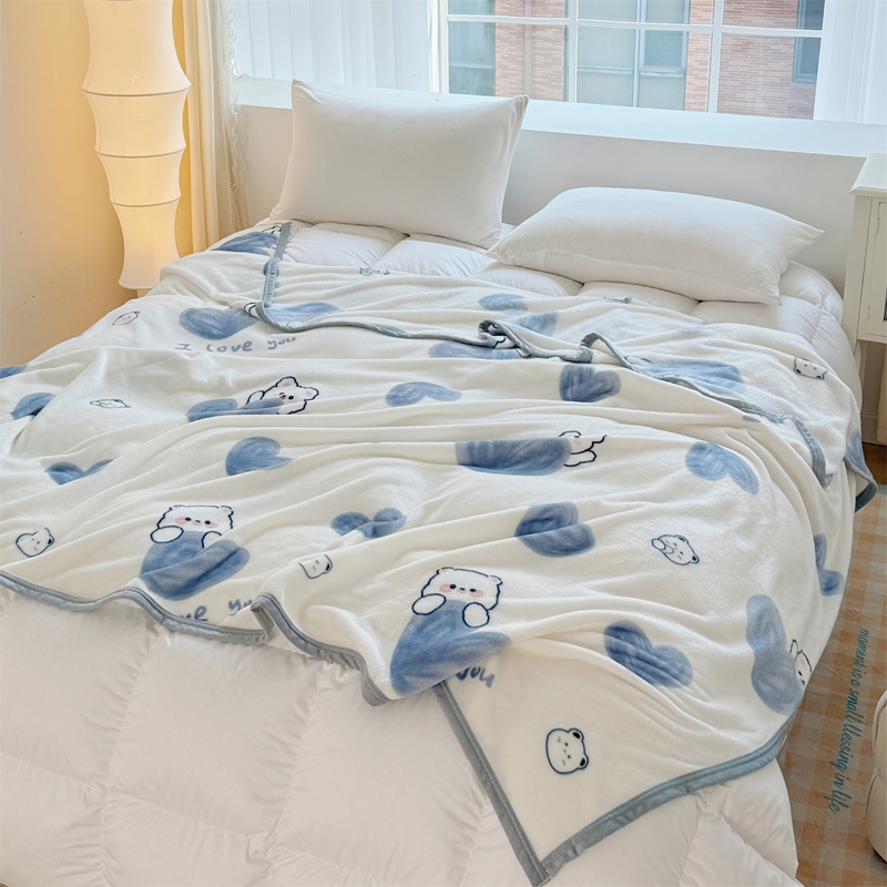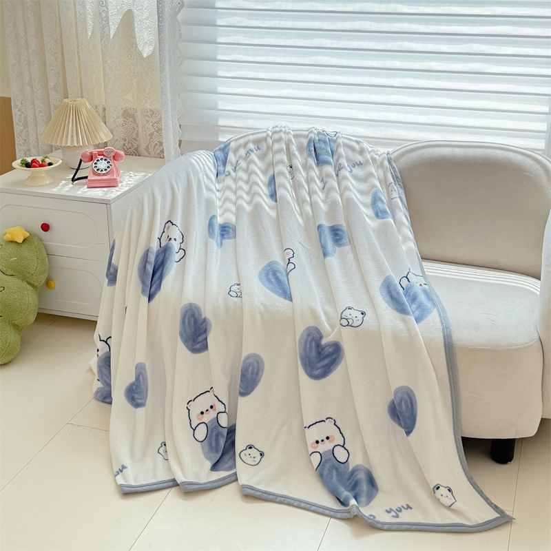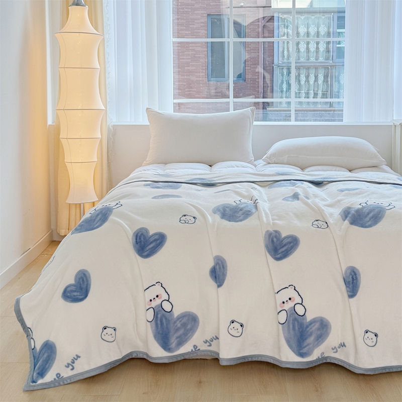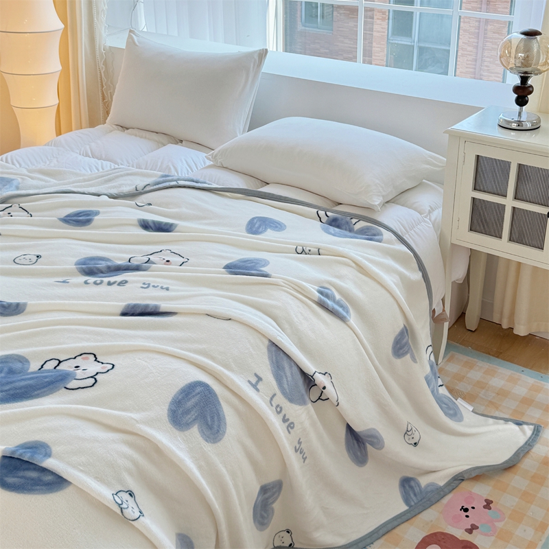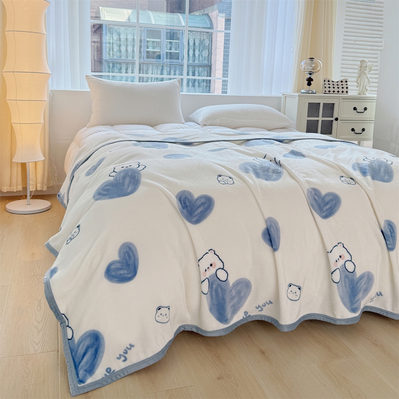 梵心 2025新款云貂绒毛毯法兰绒毛毯牛奶绒毛毯爆款盖毯直播跨境专供-可定制克重 爱心熊