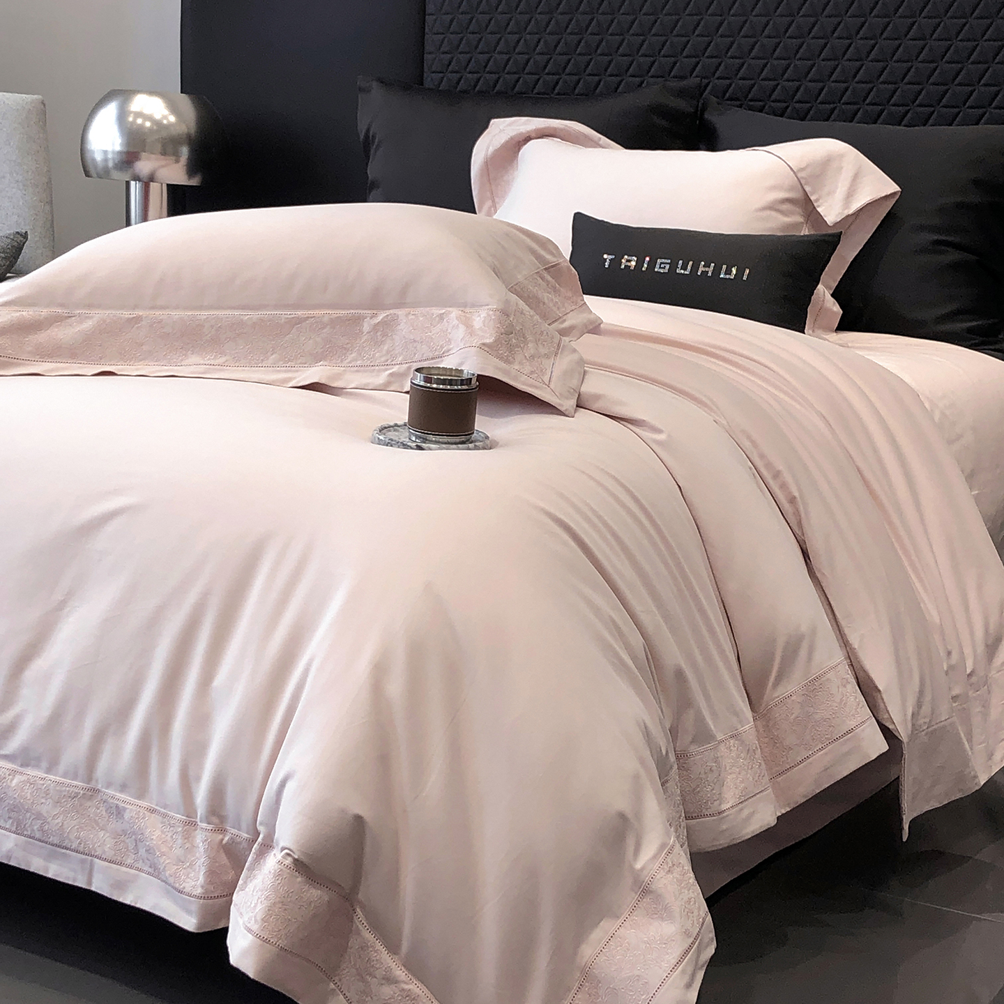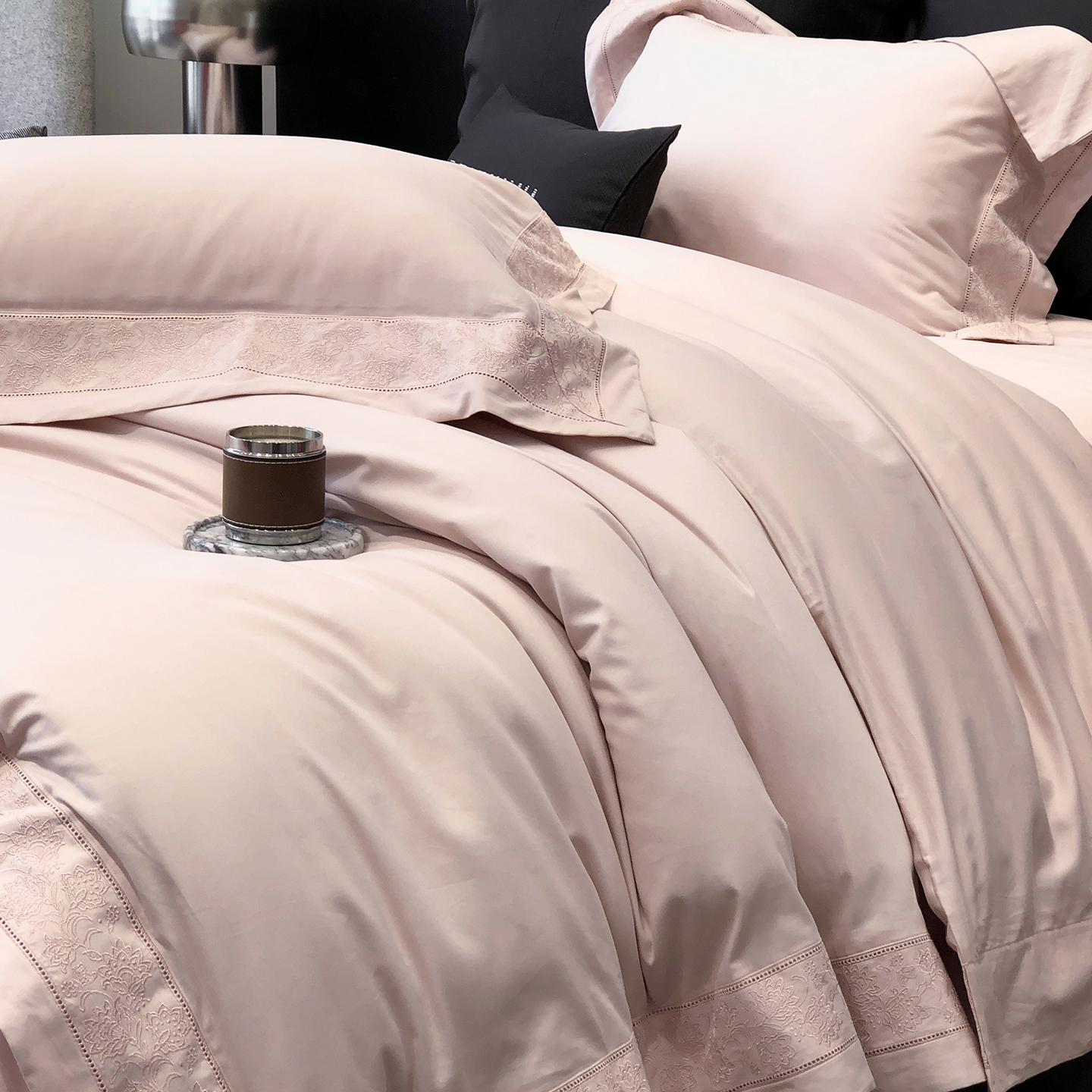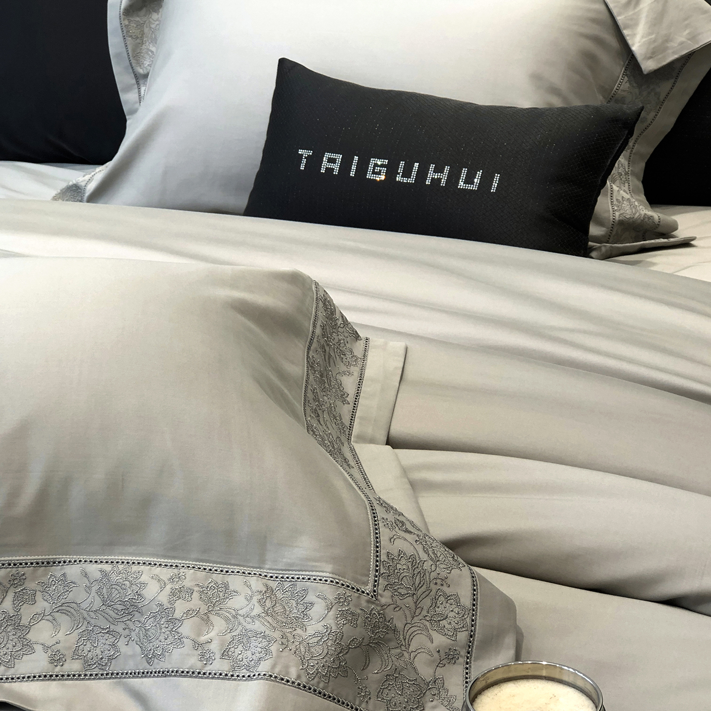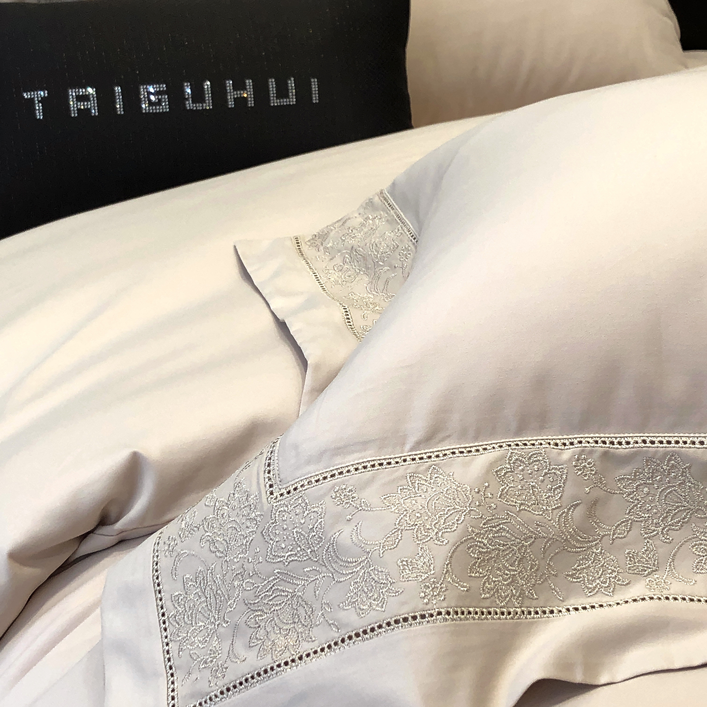 太古汇家居 2025新款全棉“磨毛芙蕾特”镂空系列四件套 磨毛芙蕾特-雅灰粉