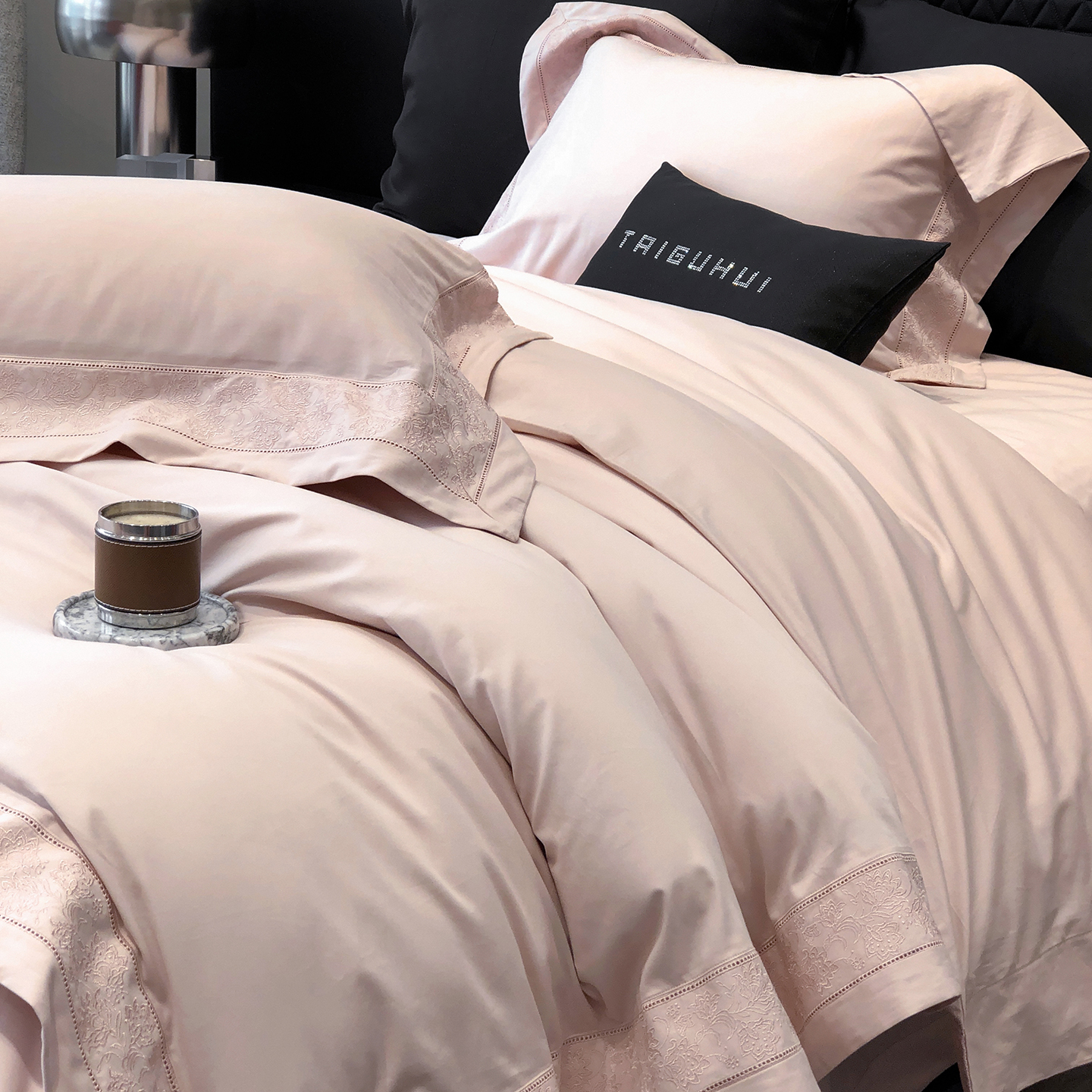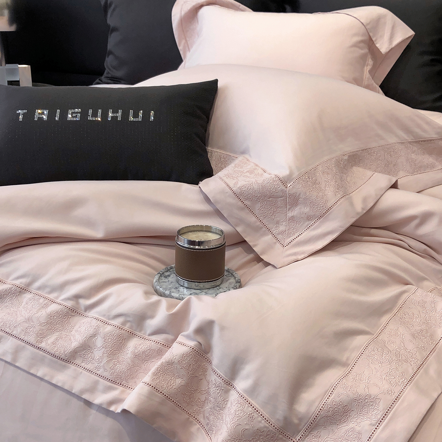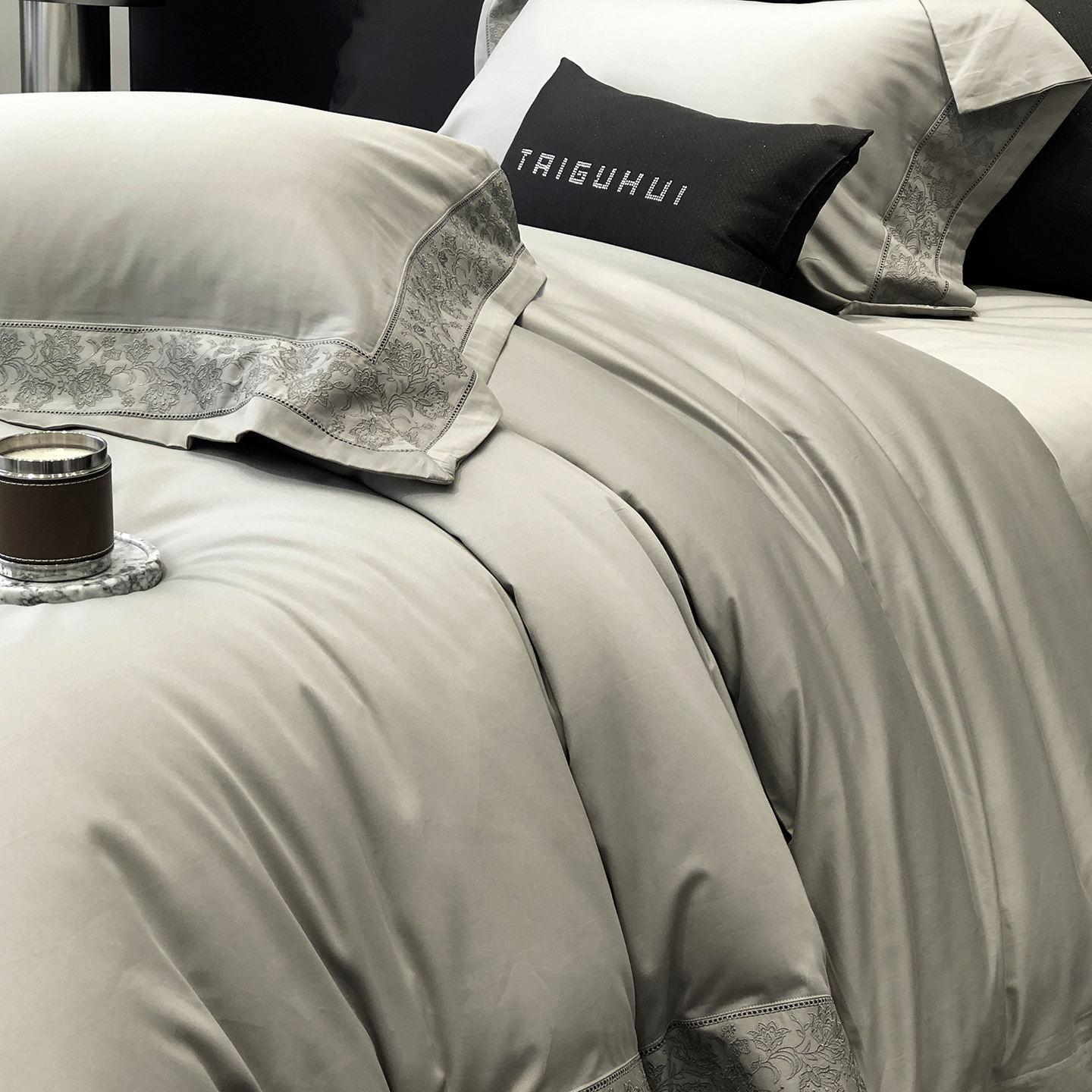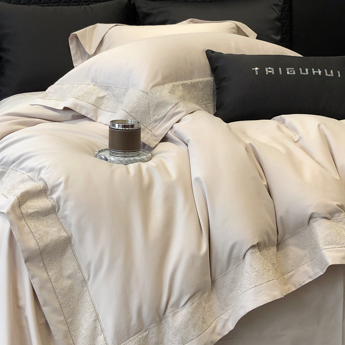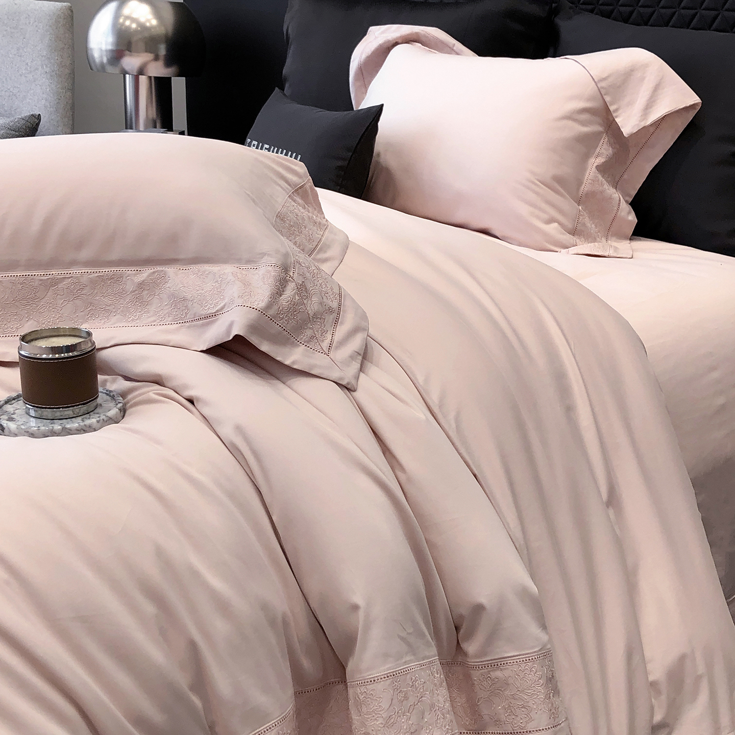 太古汇家居 2025新款全棉“磨毛芙蕾特”镂空系列四件套 磨毛芙蕾特-雅灰粉
