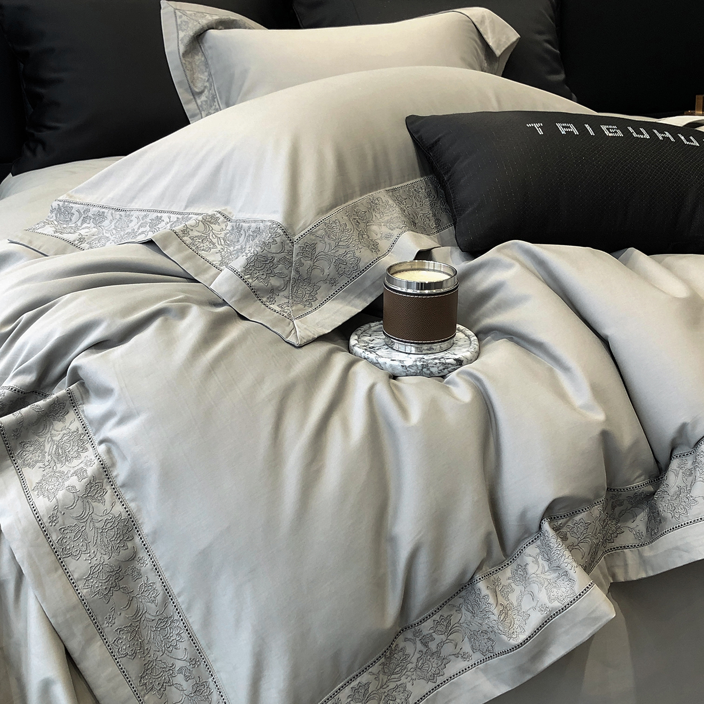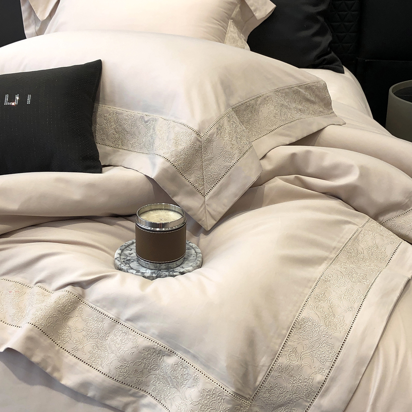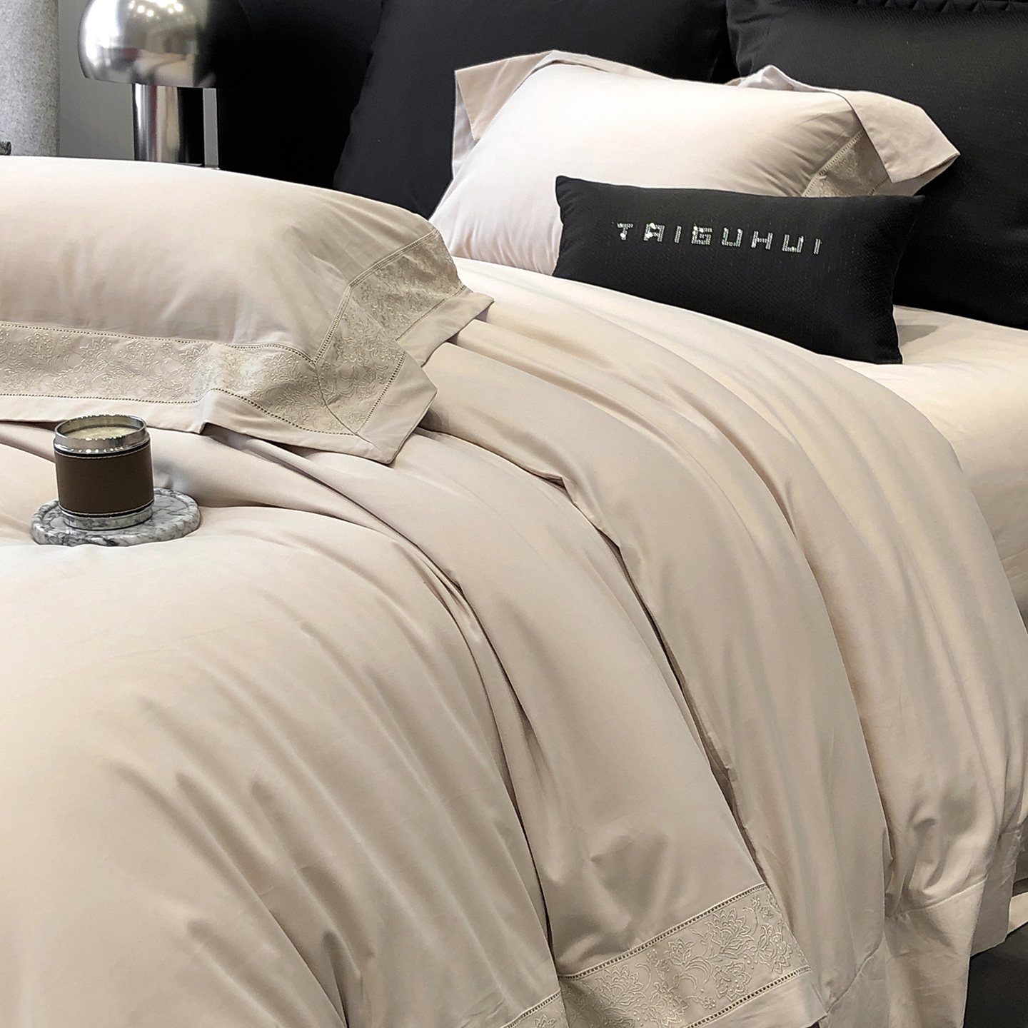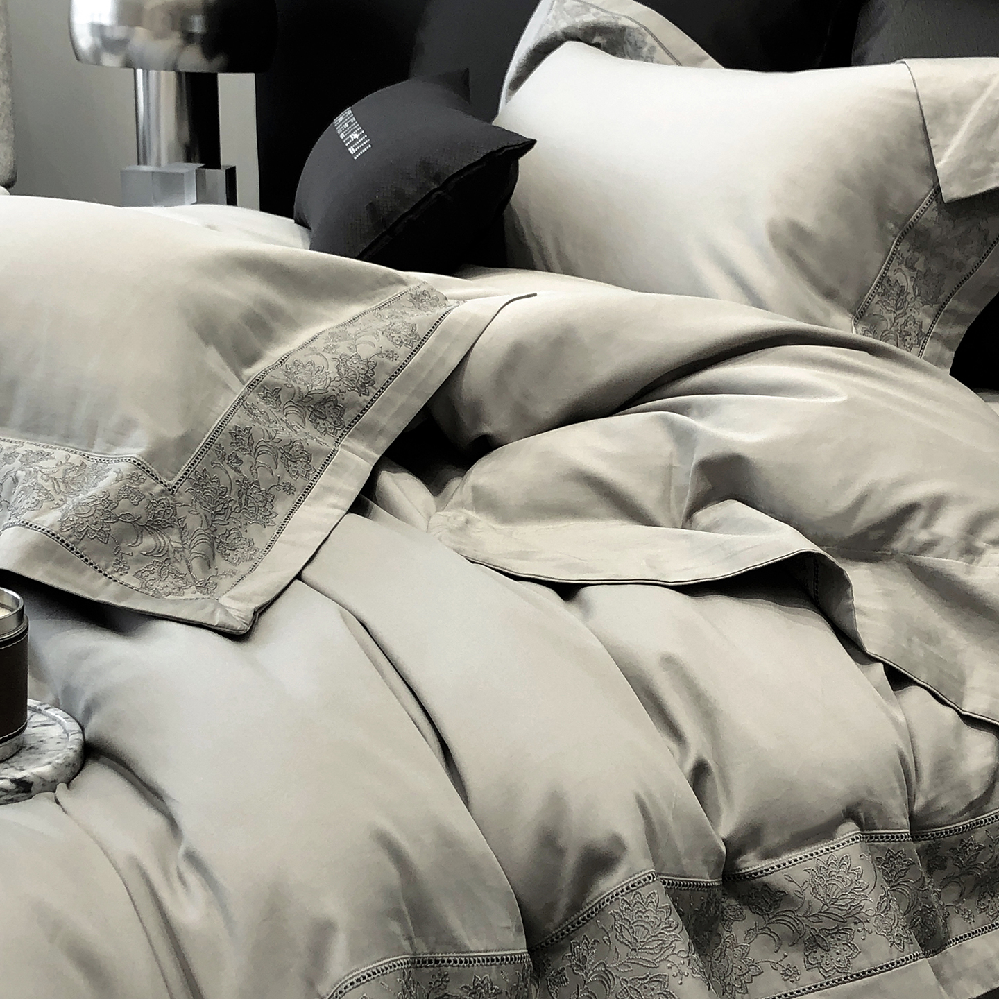 太古汇家居 2025新款全棉“磨毛芙蕾特”镂空系列四件套 磨毛芙蕾特-雅灰粉