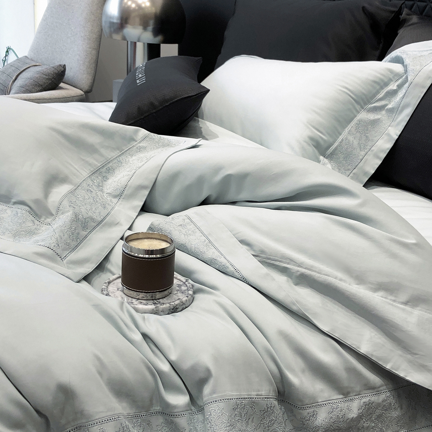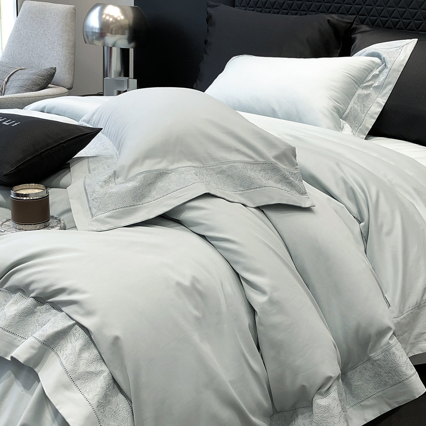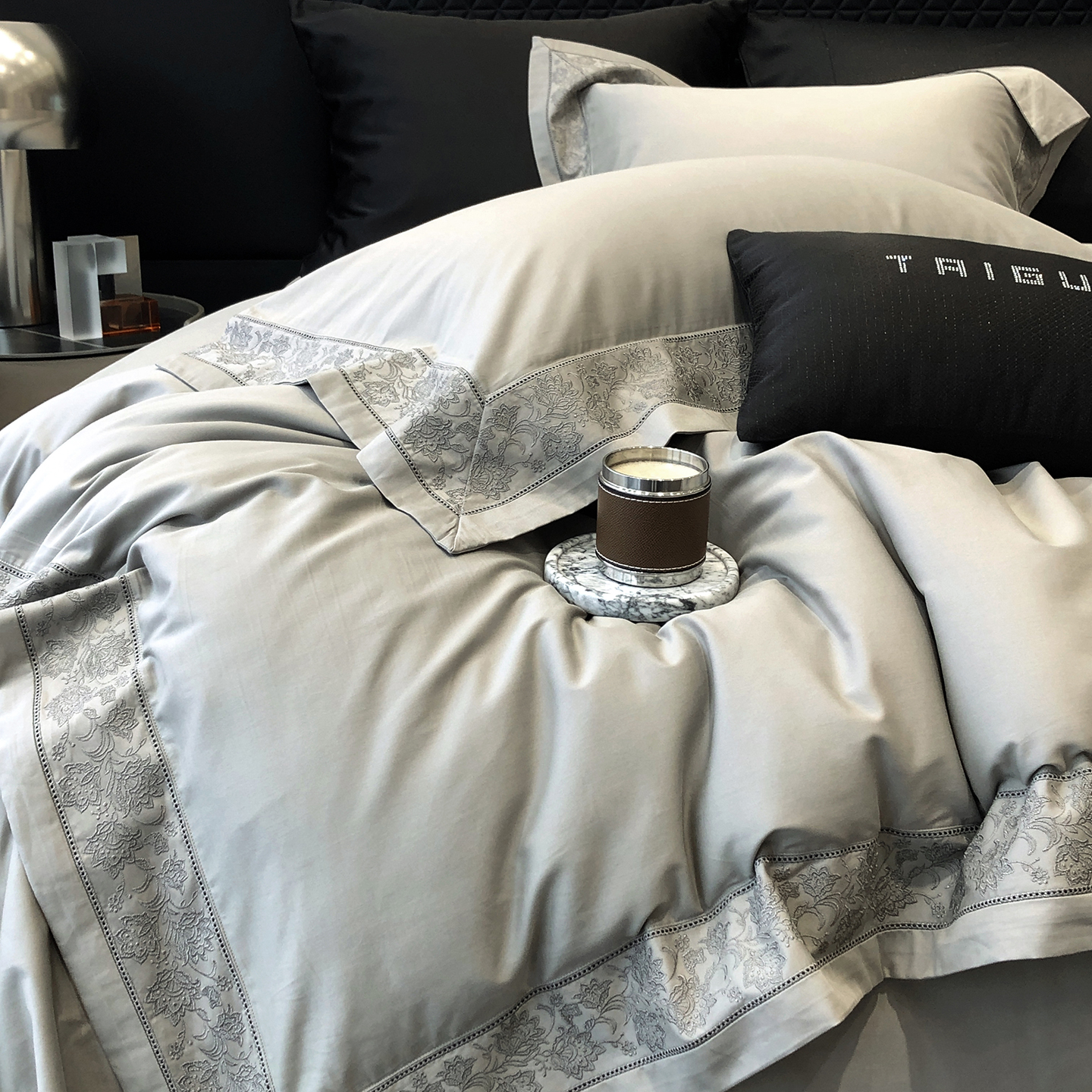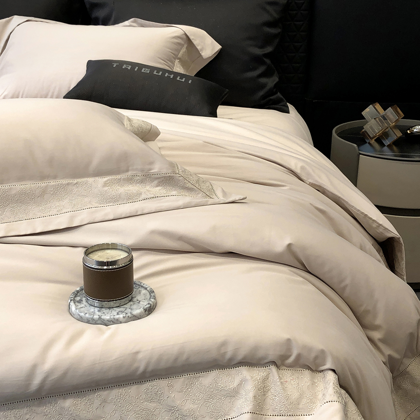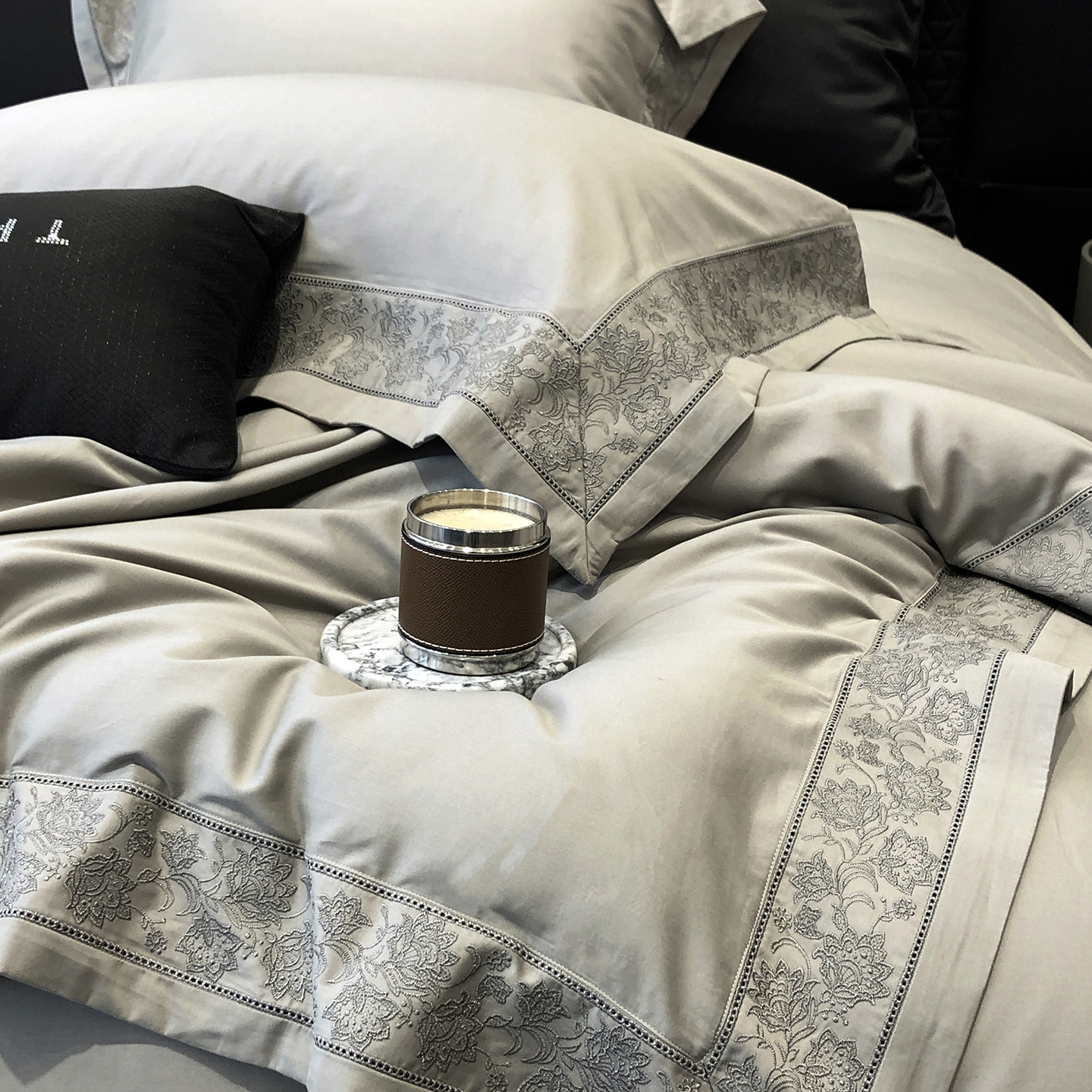太古汇家居 2025新款全棉“磨毛芙蕾特”镂空系列四件套 磨毛芙蕾特-雅灰粉
