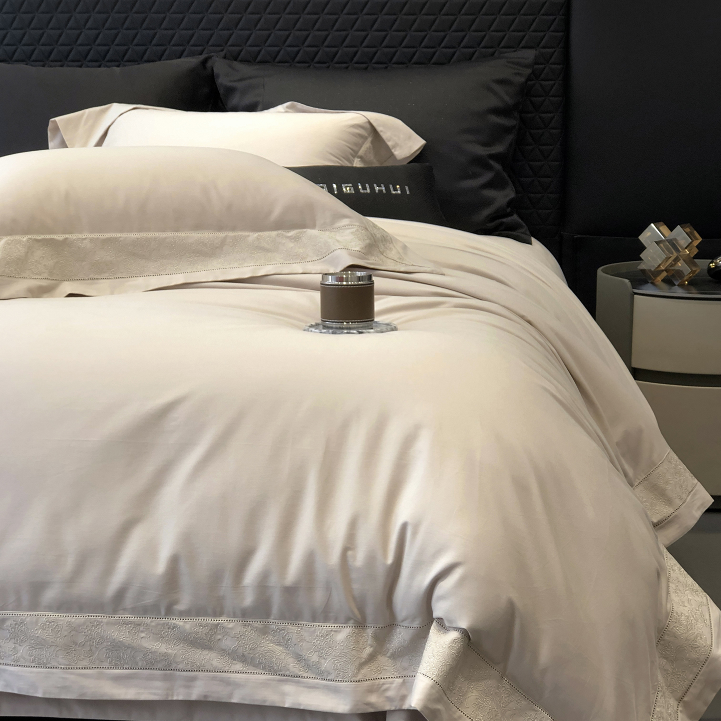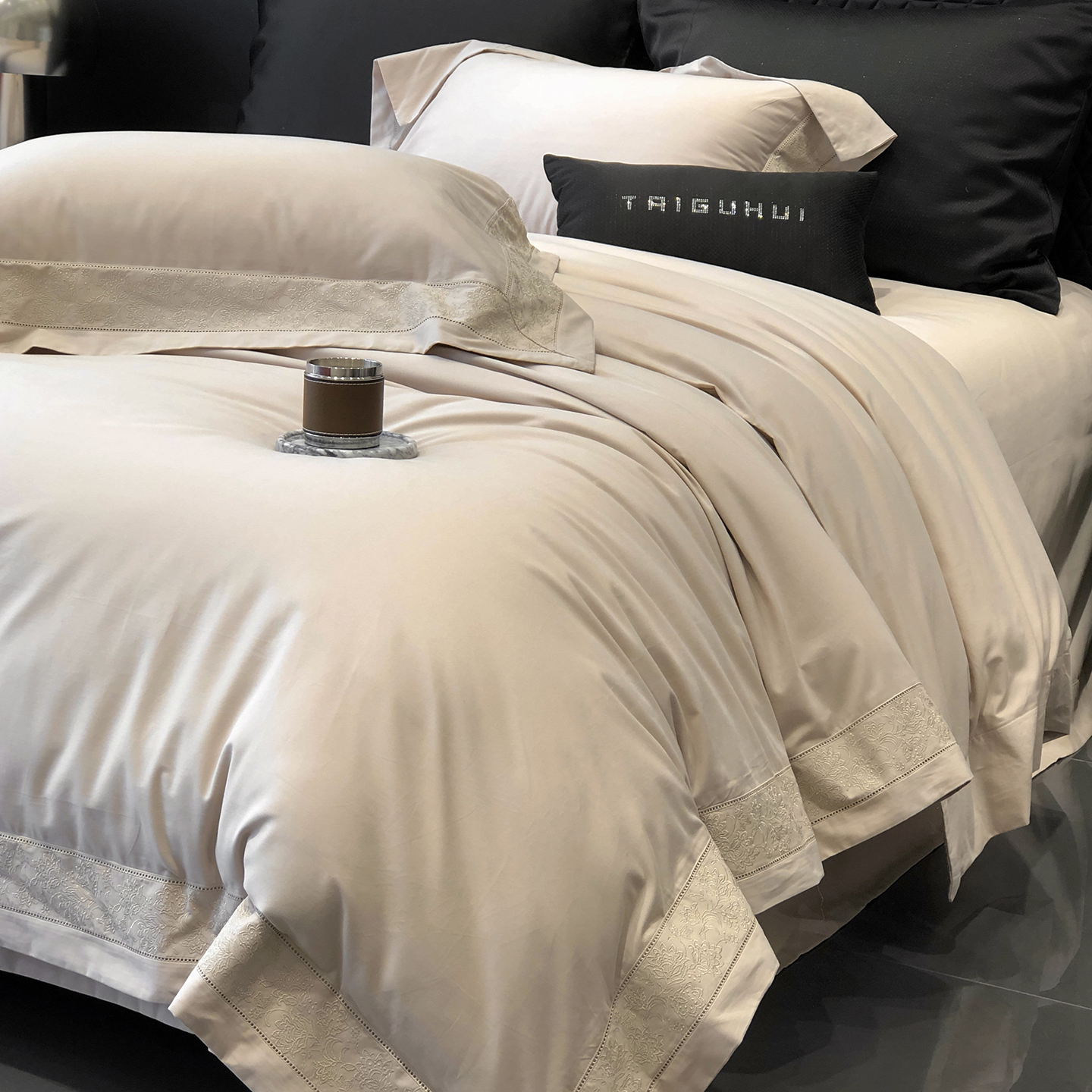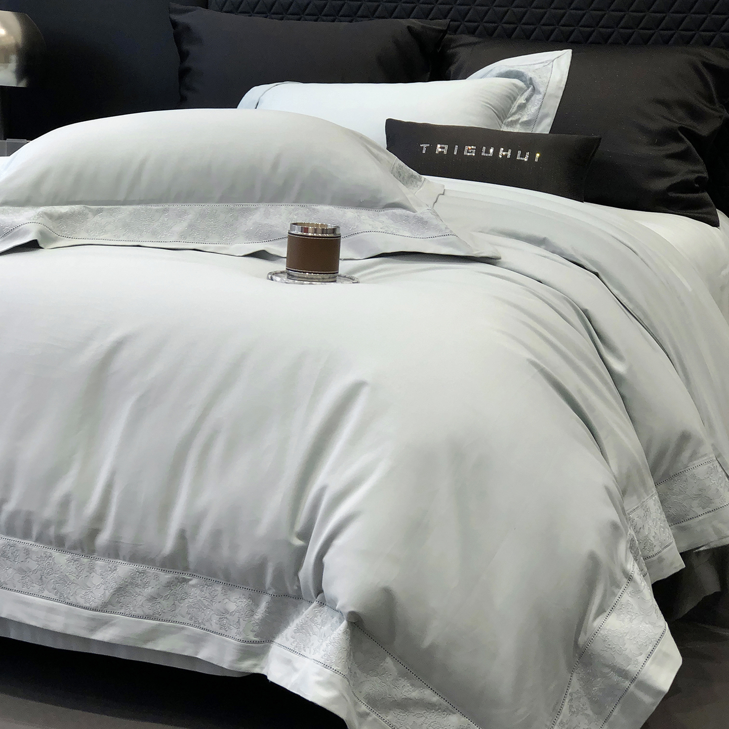 (总)太古汇家居 2025新款打孔镂空宽边格拉夫系列四件套,格拉夫-粉,格拉夫-红,格拉夫-蓝,格拉夫-米白