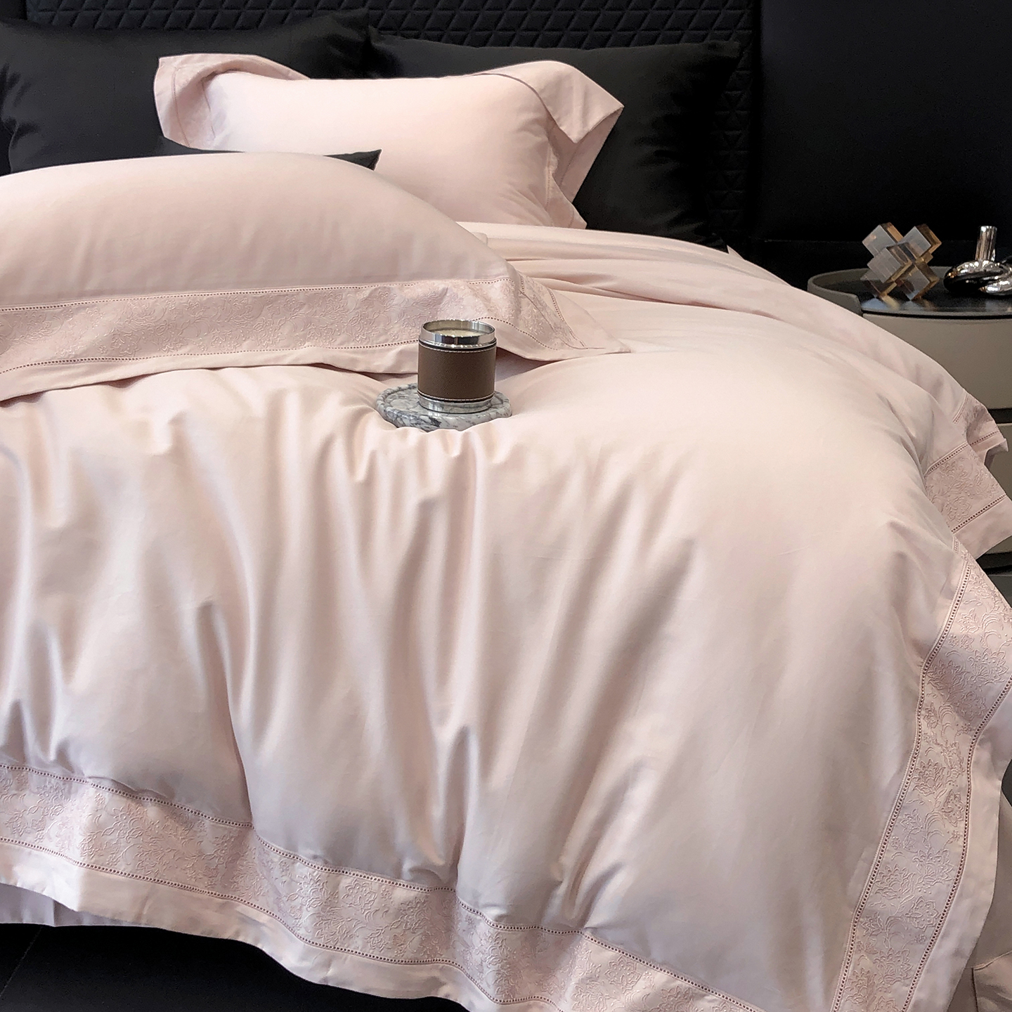 商品名称:太古汇家居 2025新款全棉“磨毛芙蕾特”镂空系列四件套 磨毛芙蕾特-雅灰粉