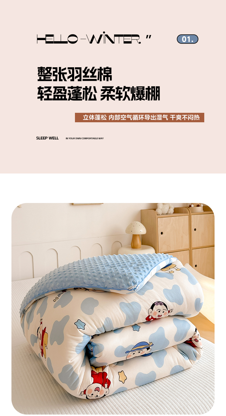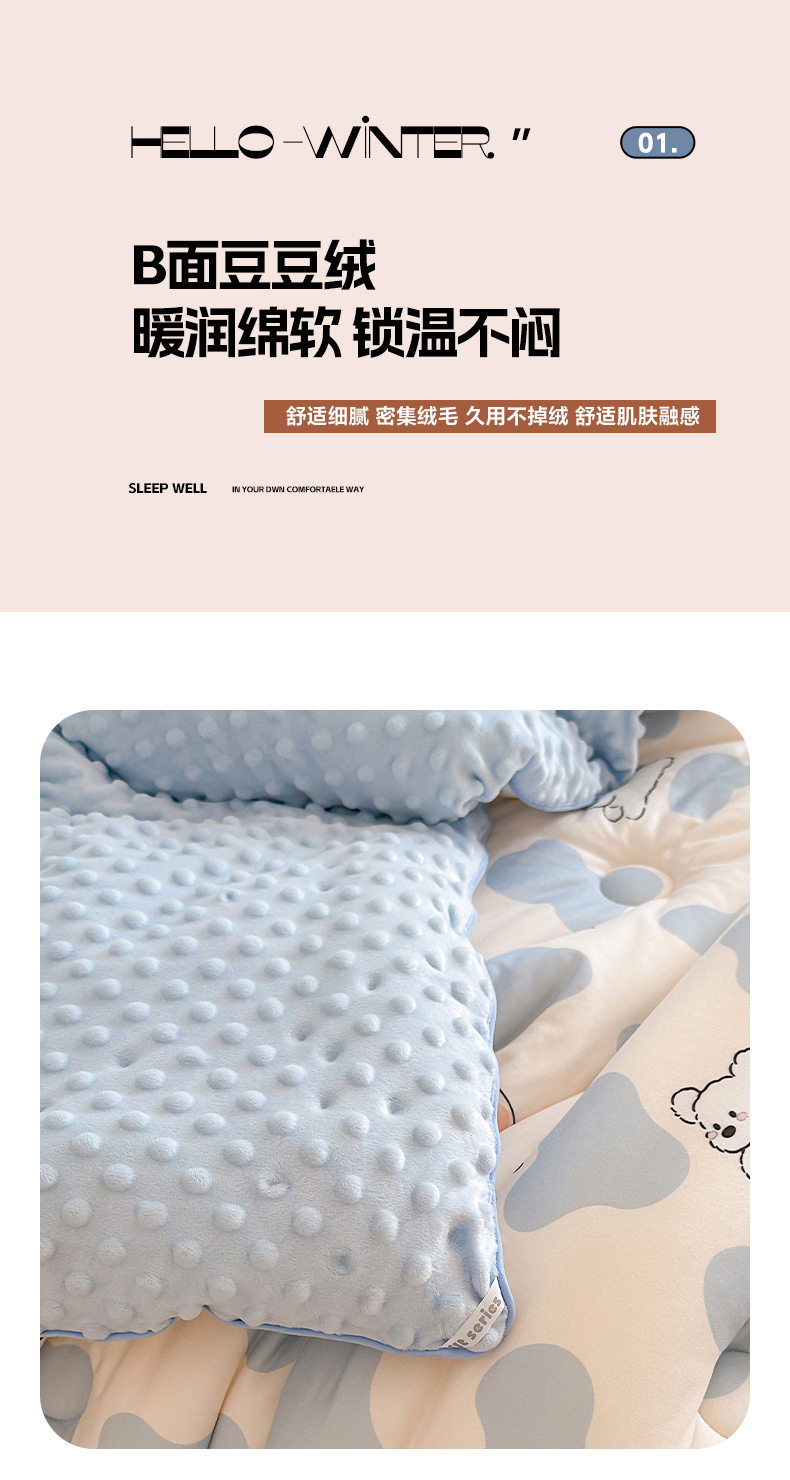 商品名称:RYB红黄兰 2025新款设计师原创针织棉暖暖豆豆绒秋冬被芯被子 顽皮兄弟