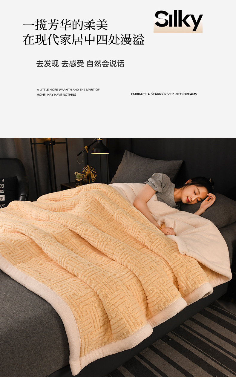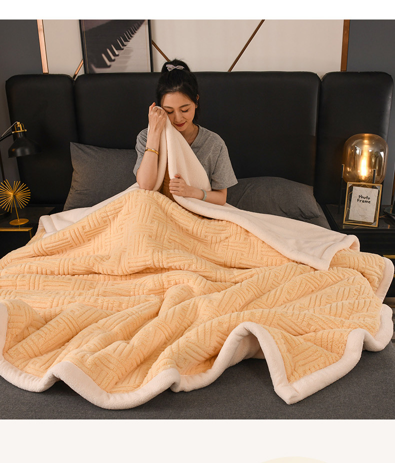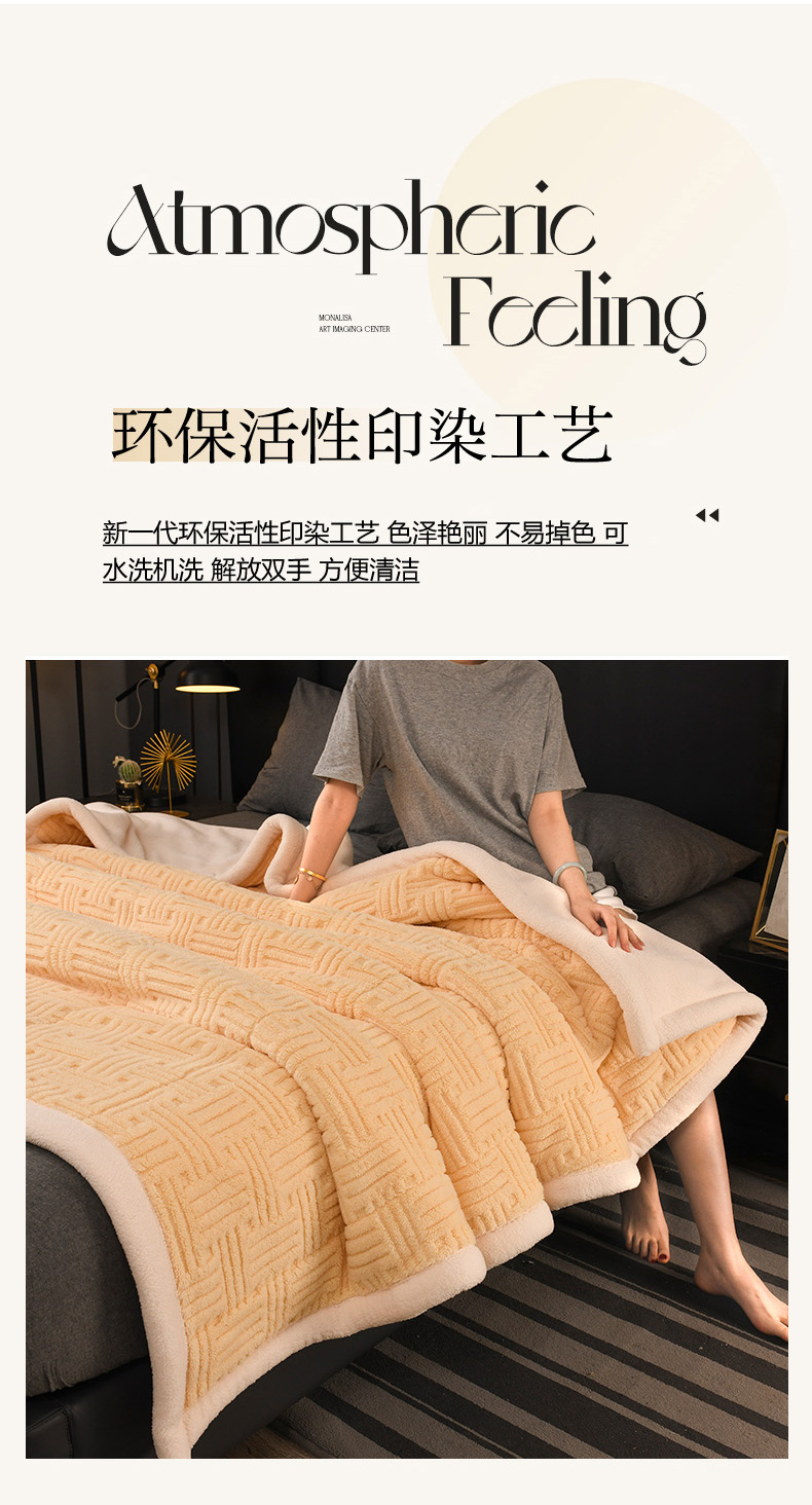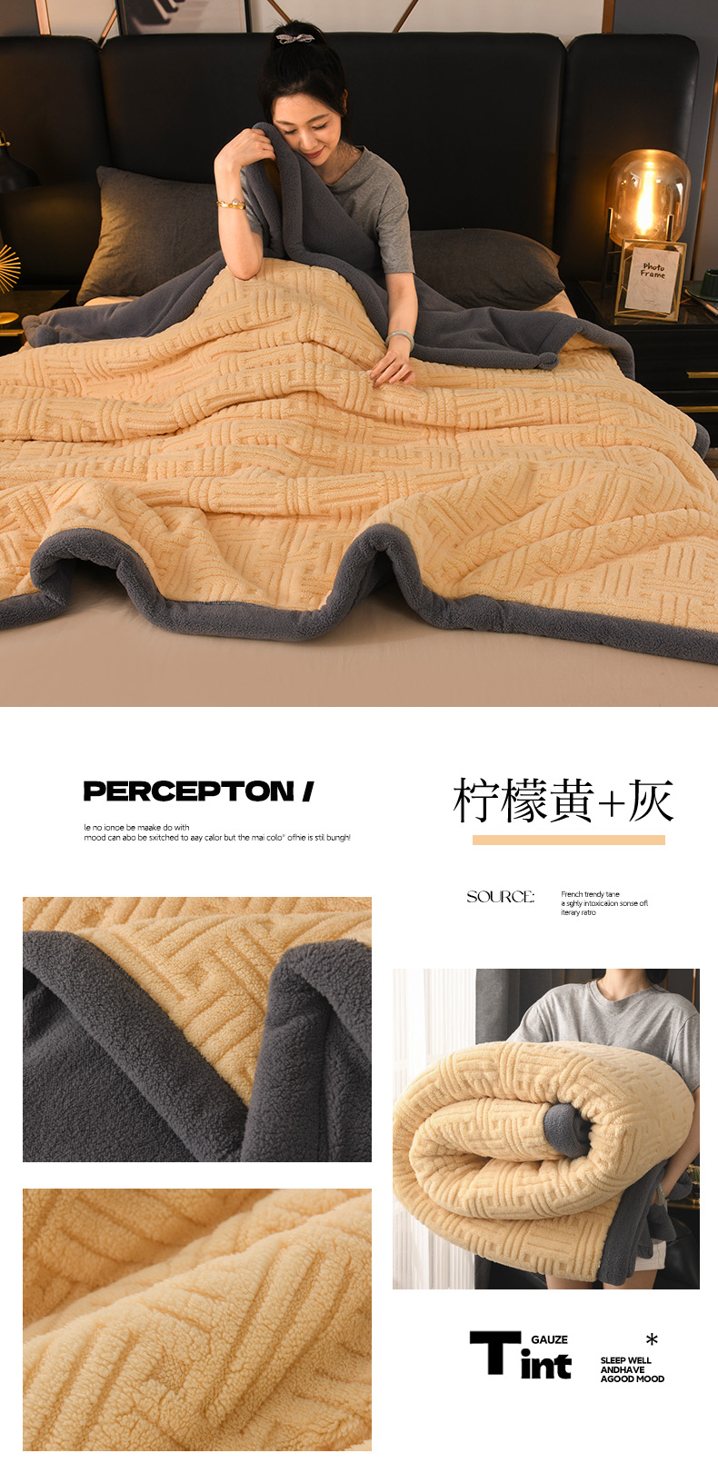 印季家纺 2025秋冬新款三层夹棉立体舒棉绒毛毯毯子多功能盖毯 柠檬黄